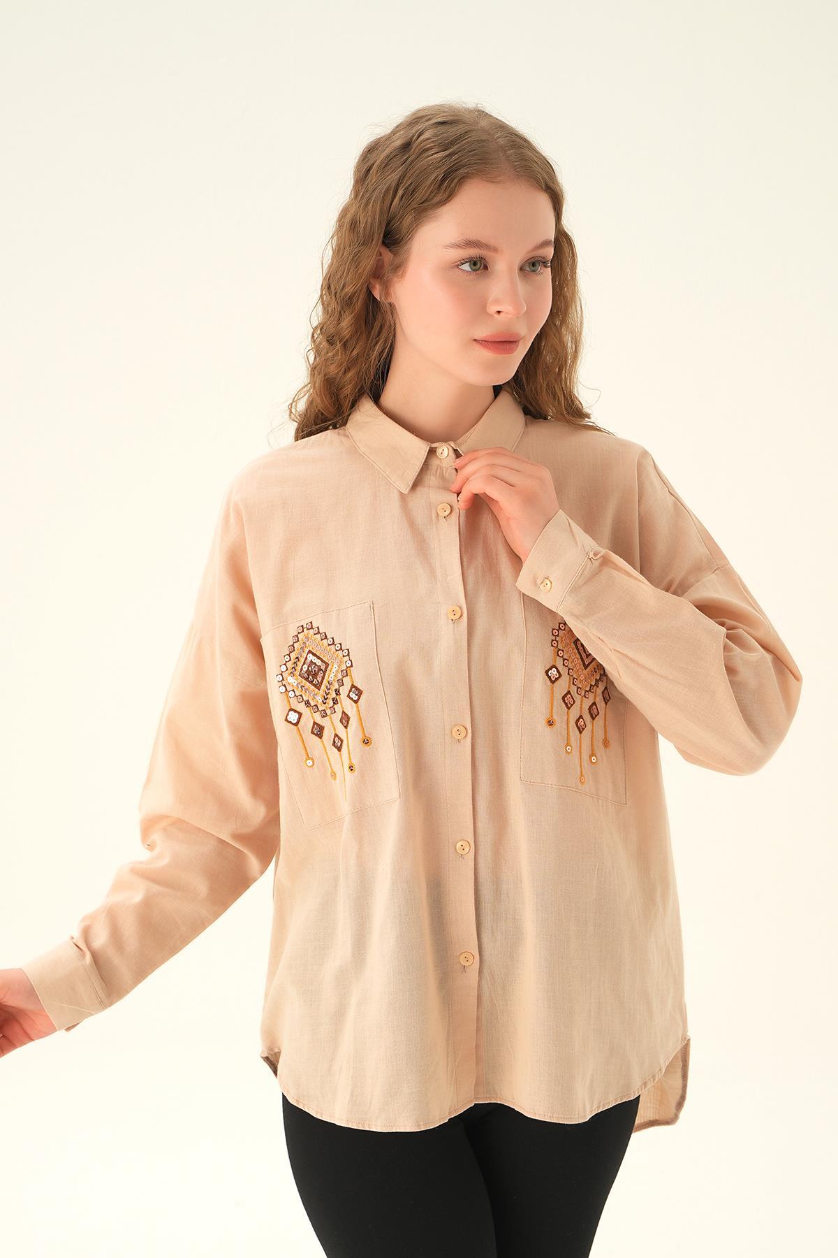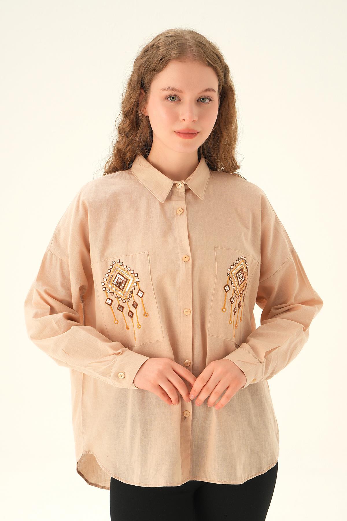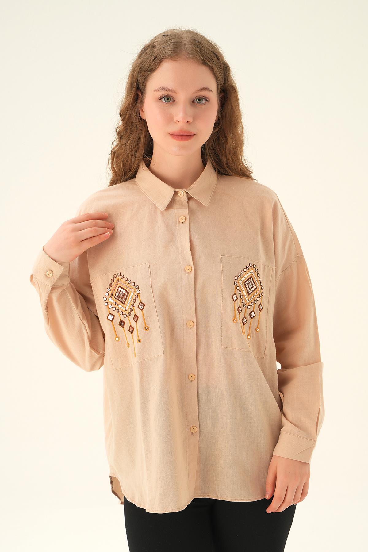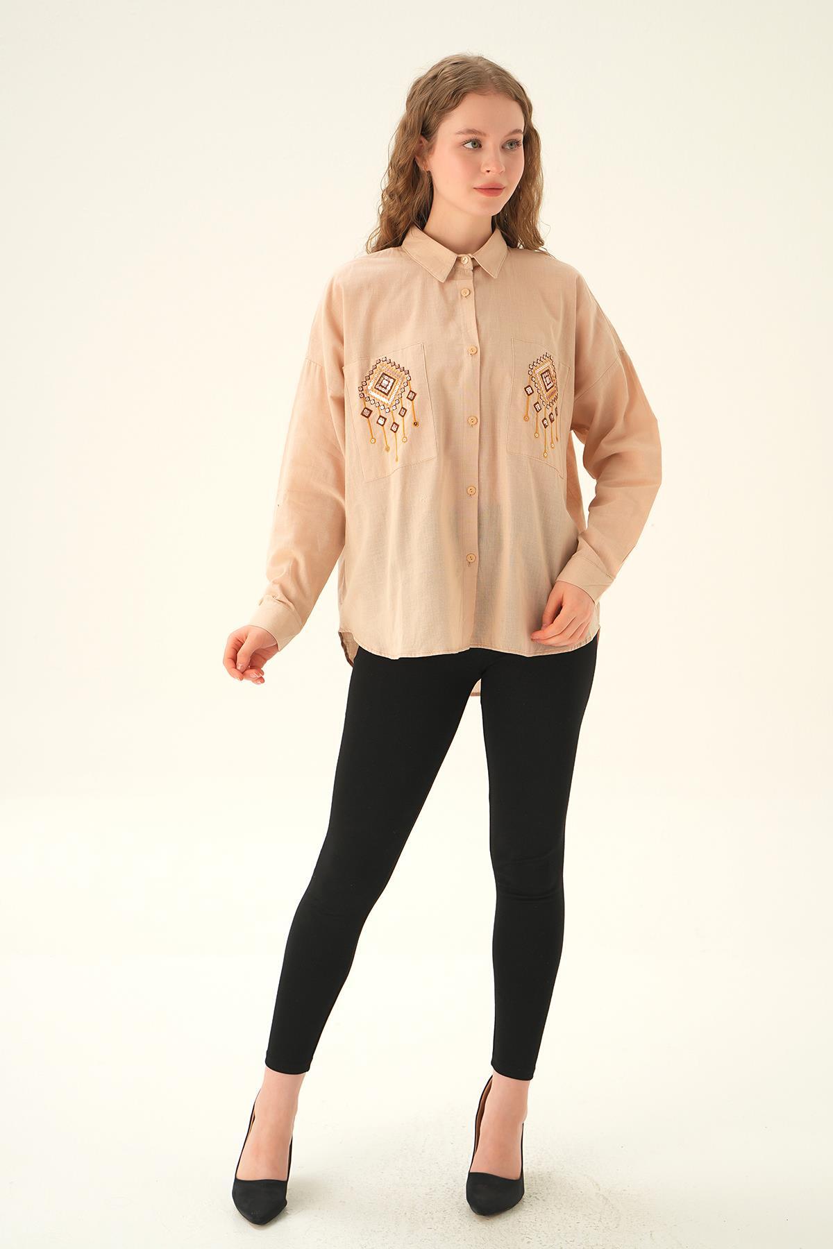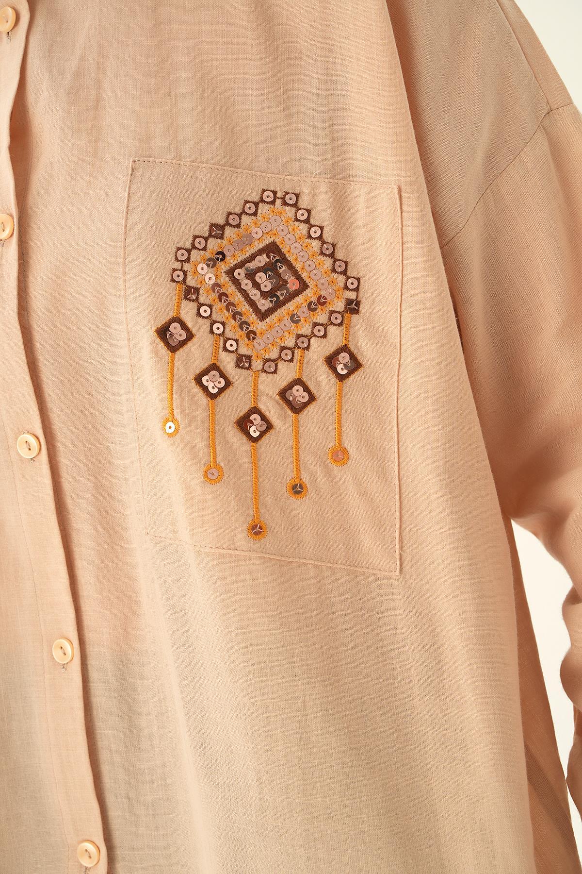 Bej Cep İşleme Detay Gömlek 71422