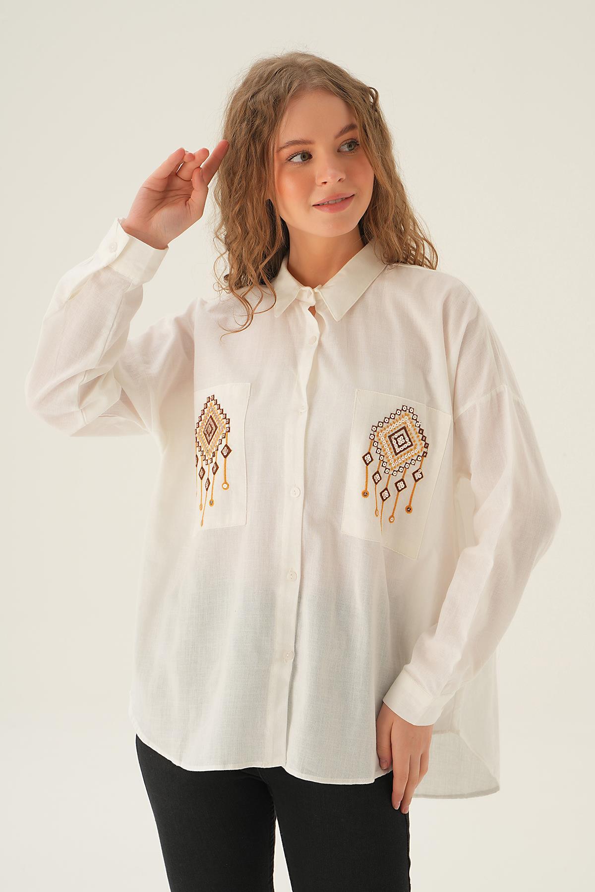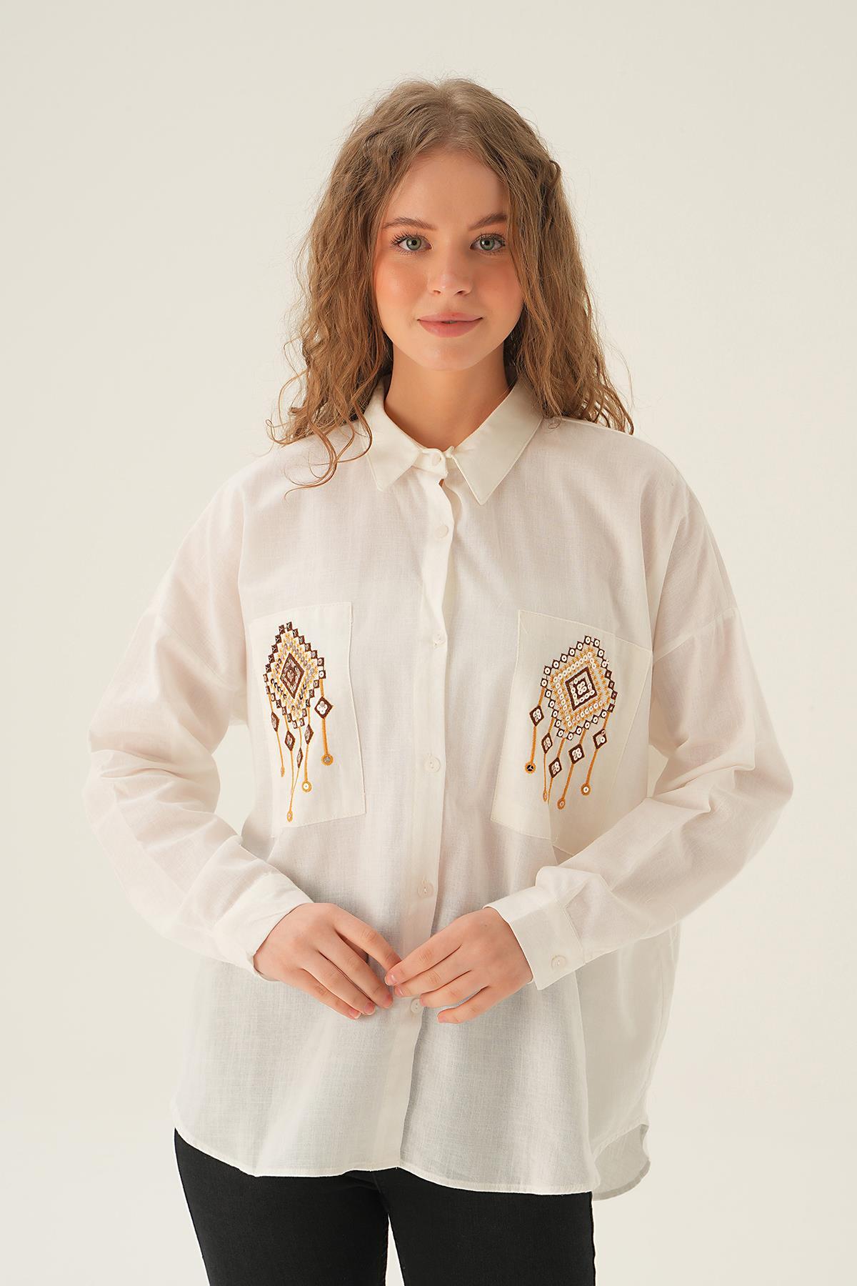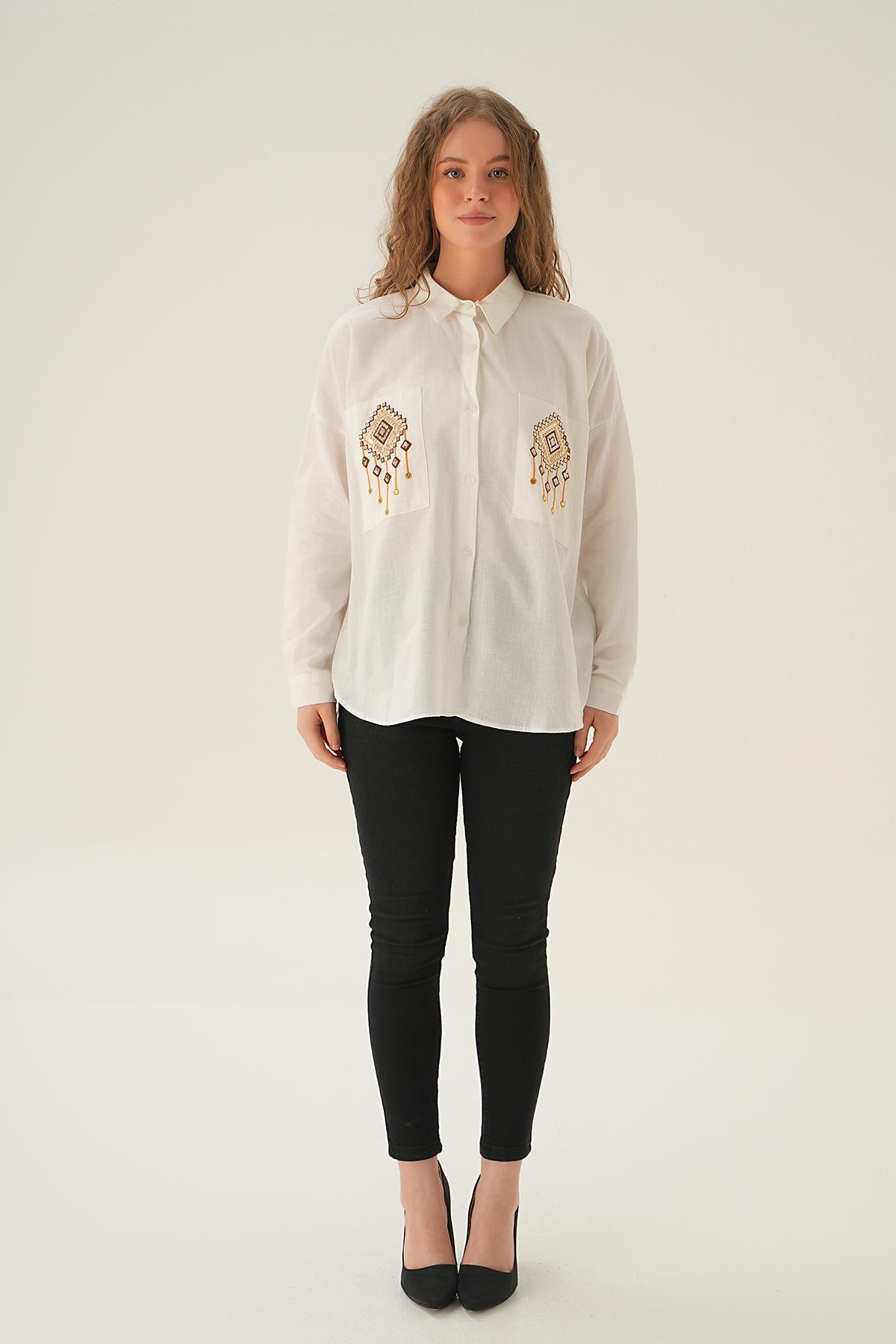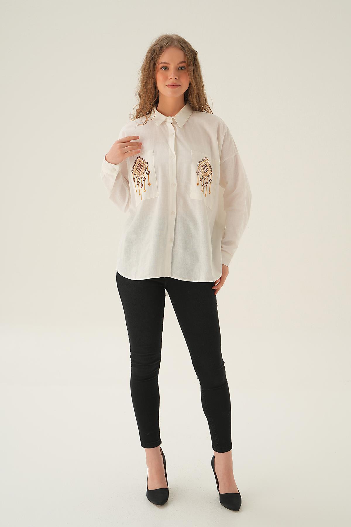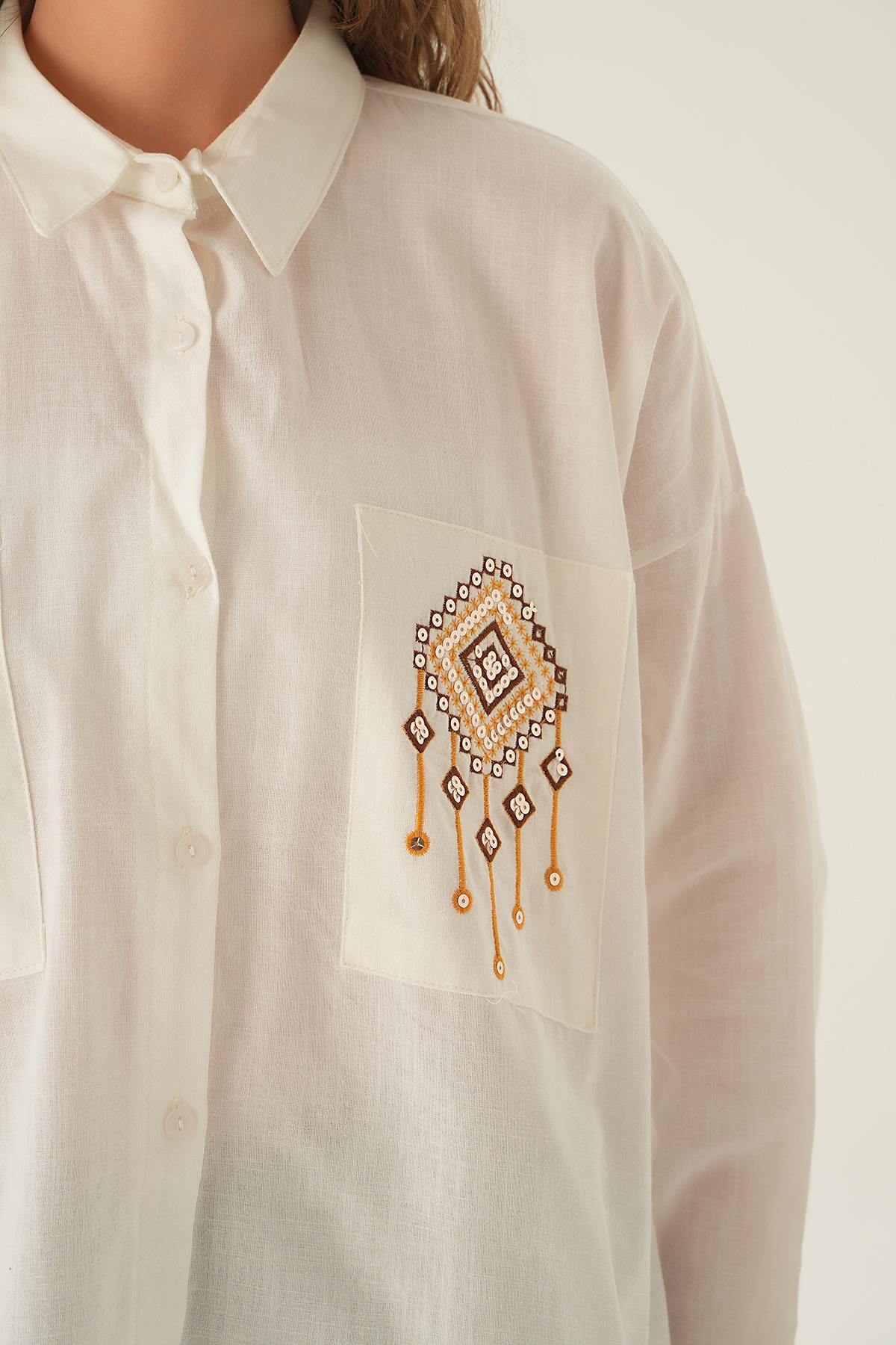 Ekru Cep İşleme Detay Gömlek 71422