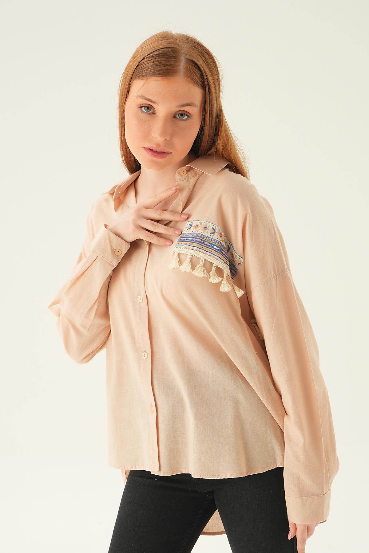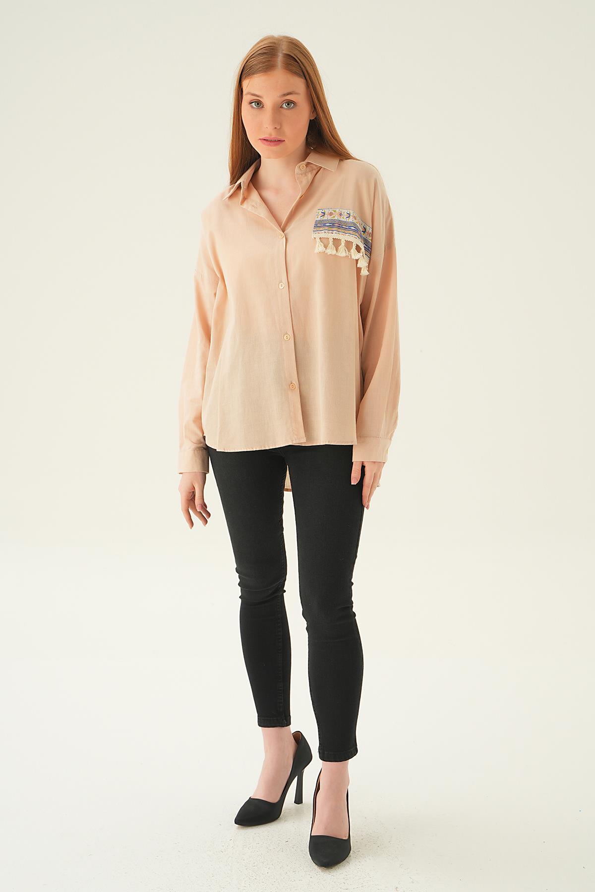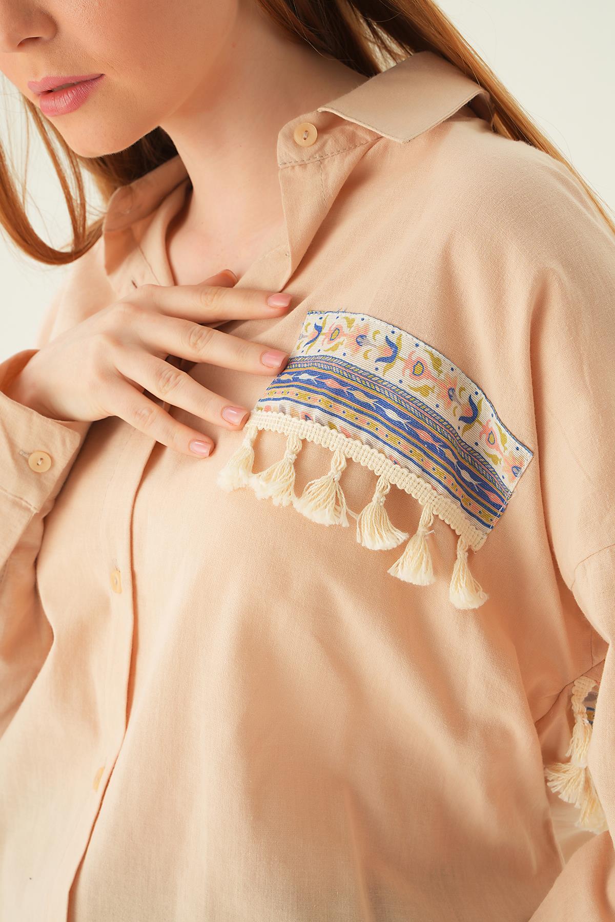 Bej Göğüs Cep Püskül Detay Gömlek 71425