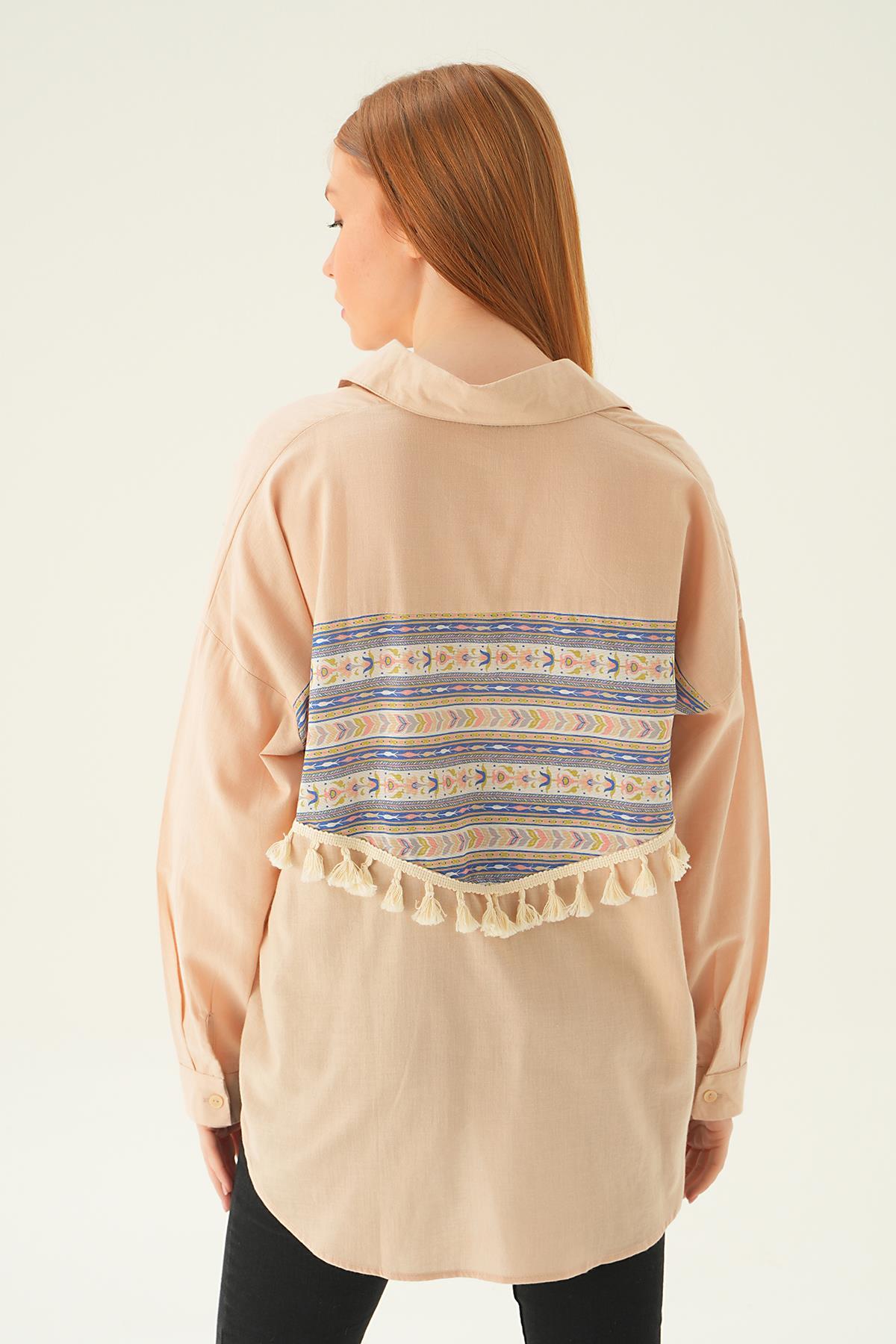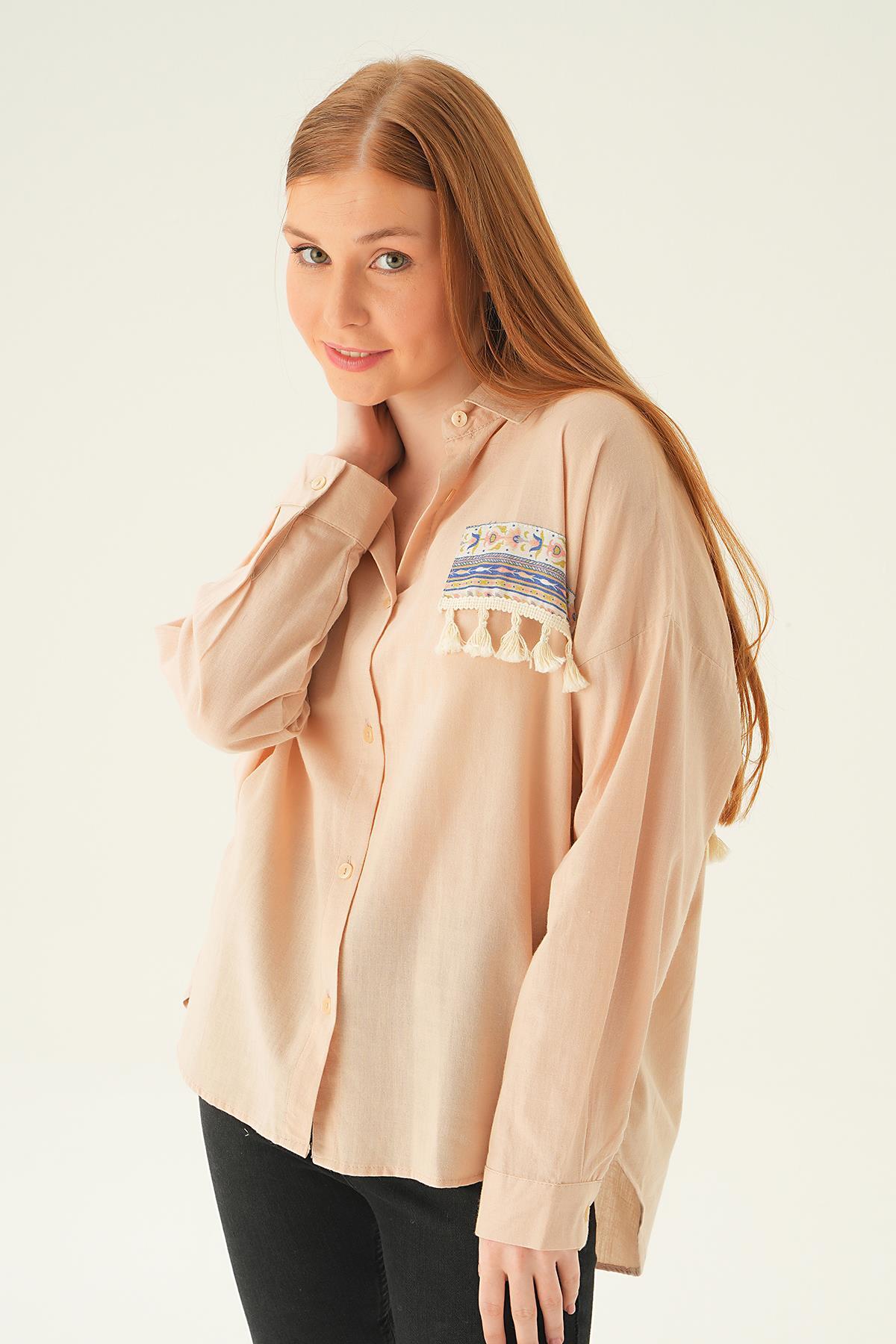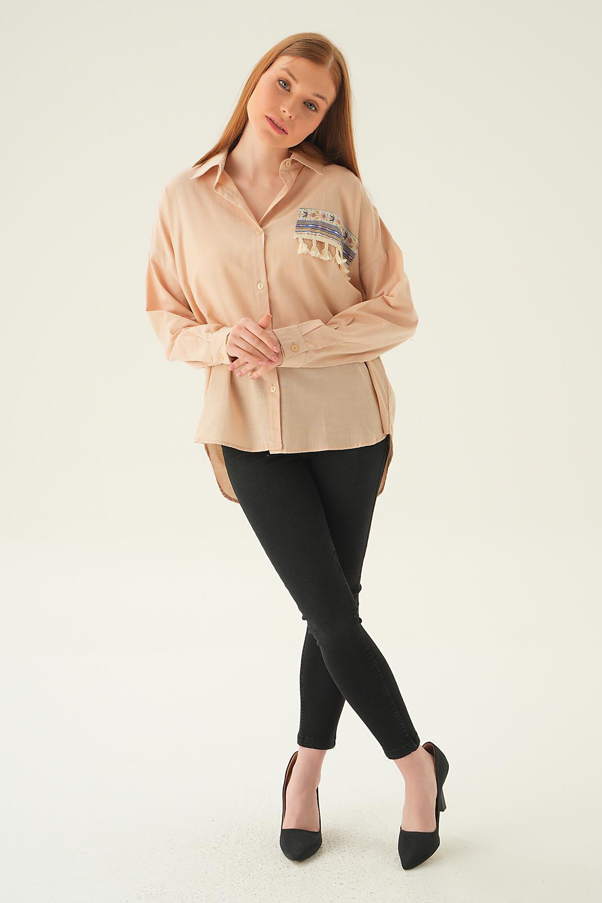 Bej Göğüs Cep Püskül Detay Gömlek 71425