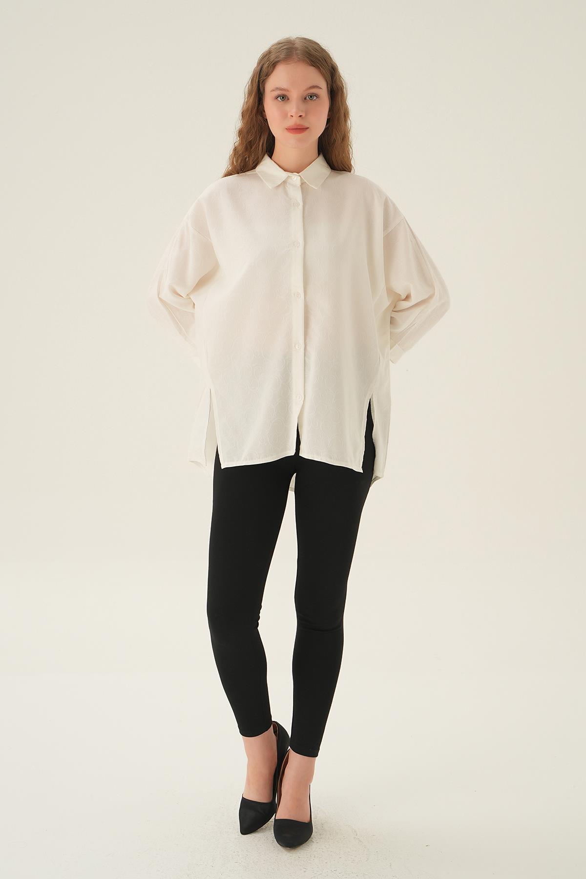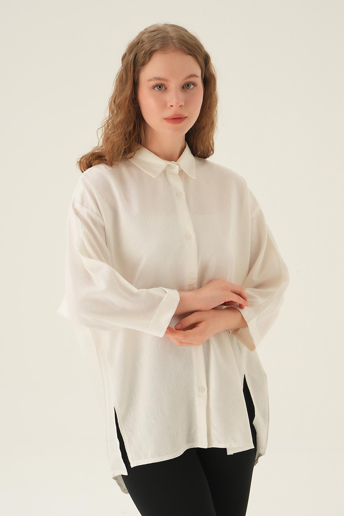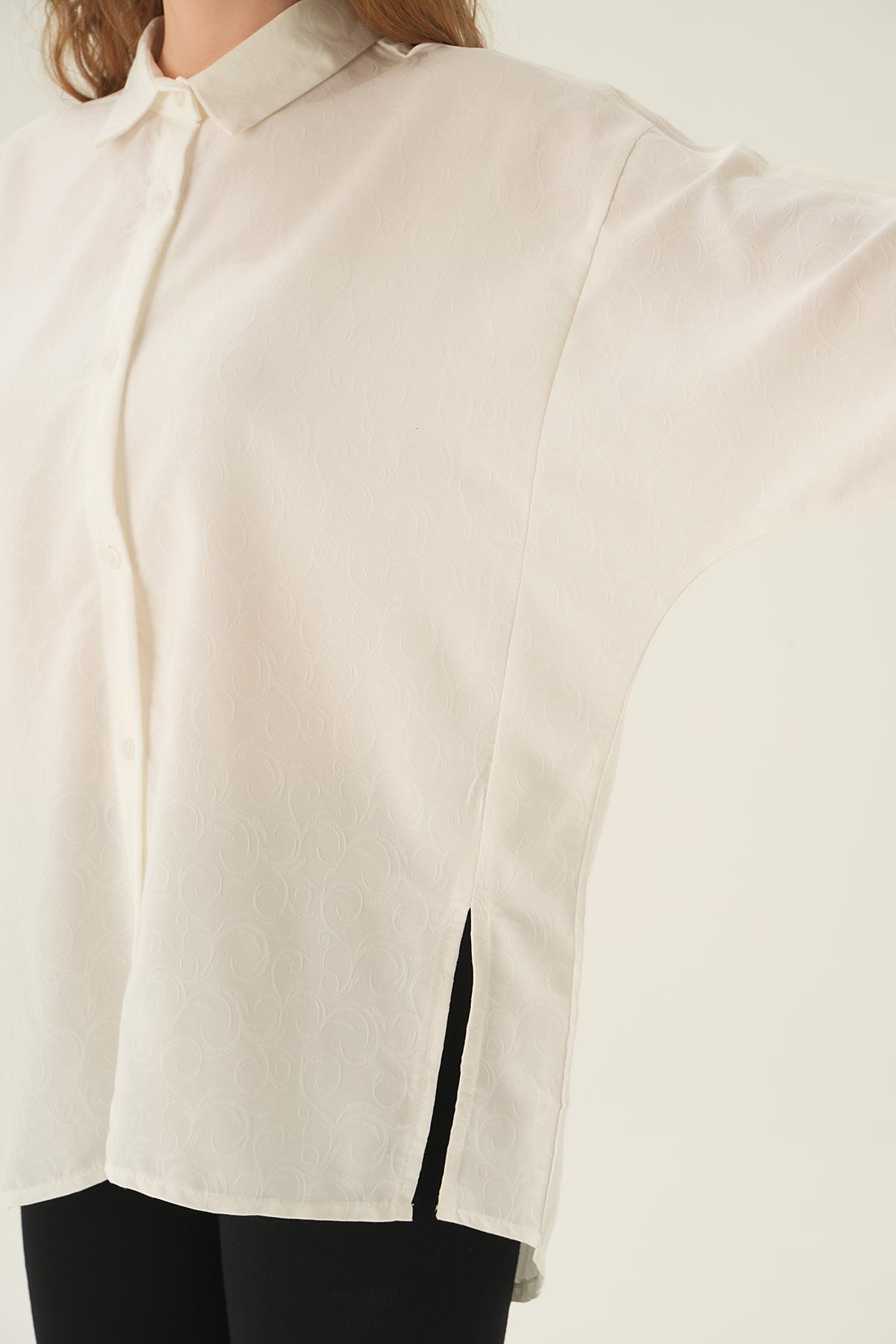 Beyaz Yırtmaç Detay Gömlek 71426