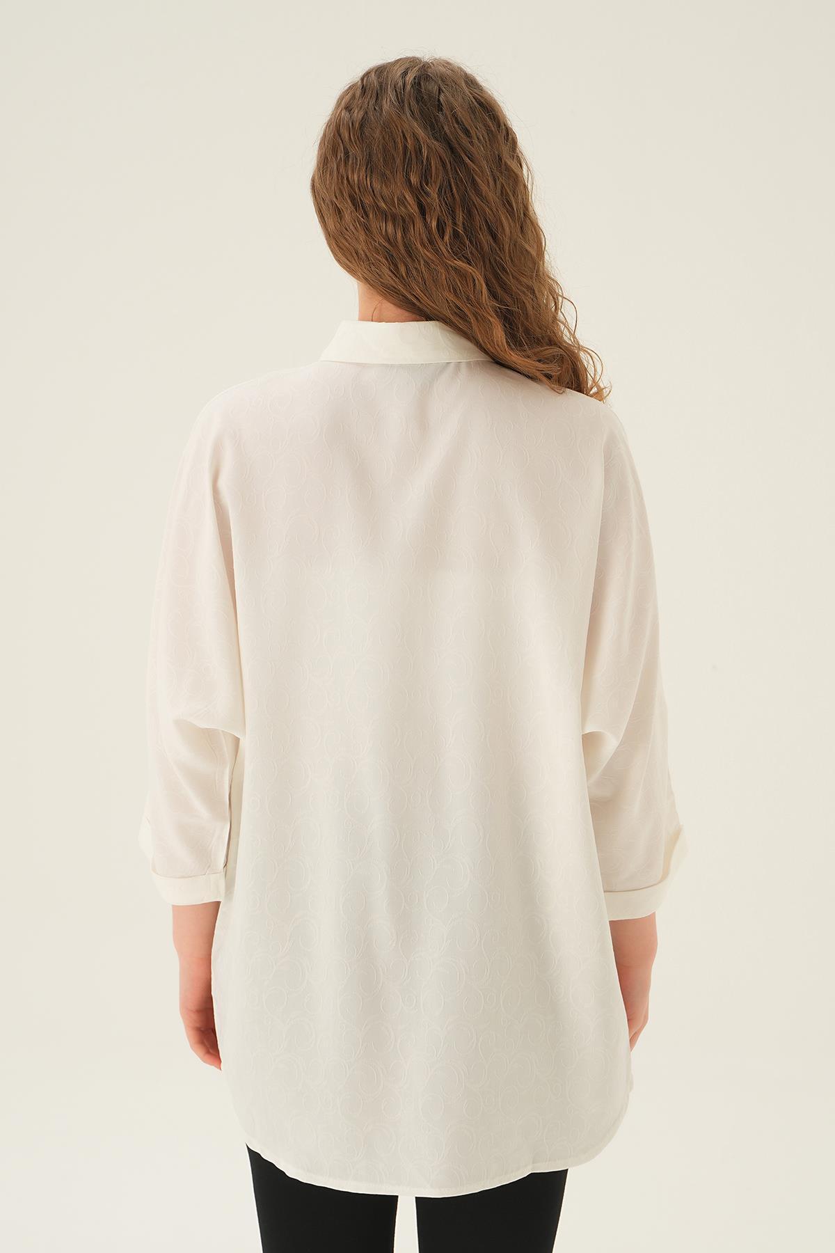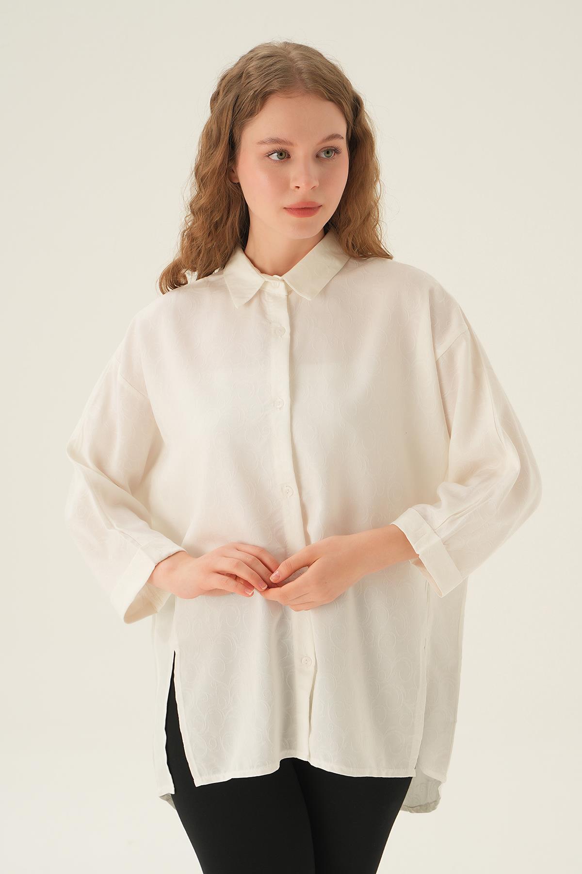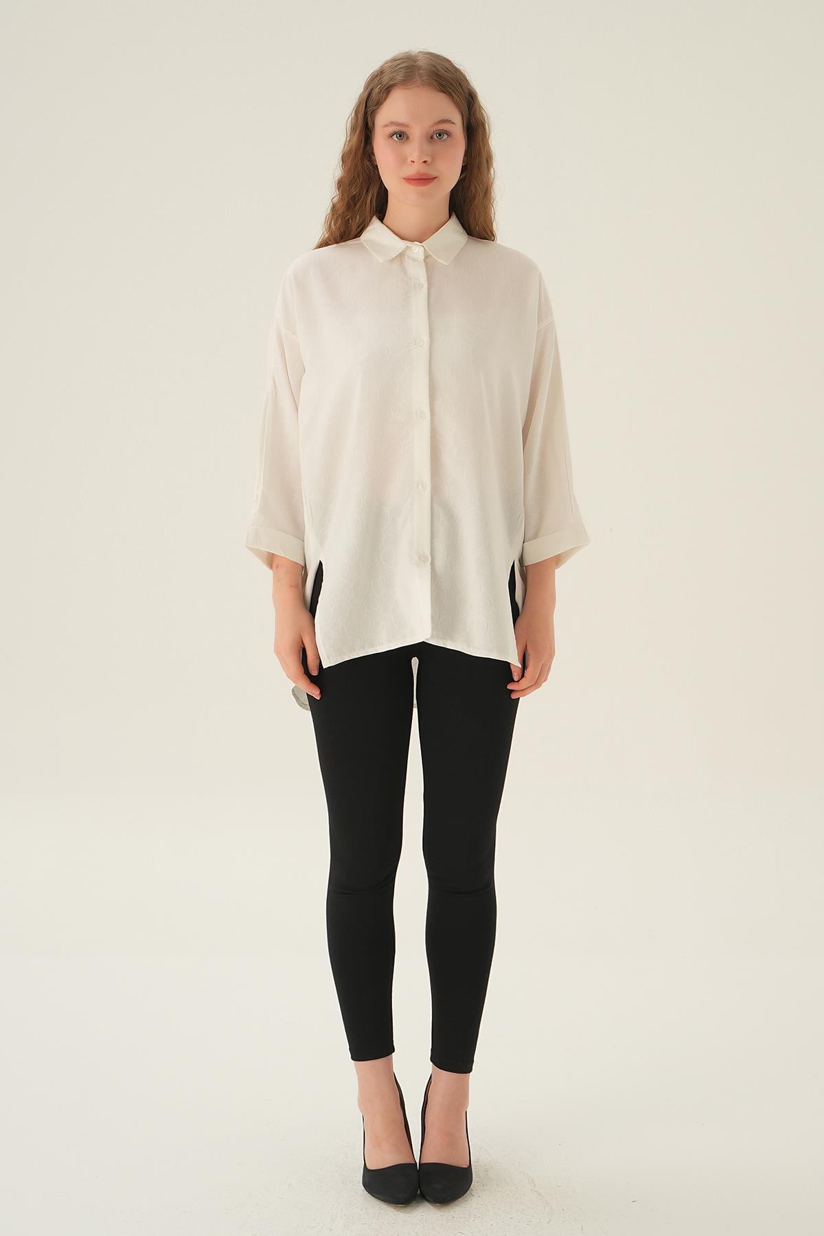 Beyaz Yırtmaç Detay Gömlek 71426