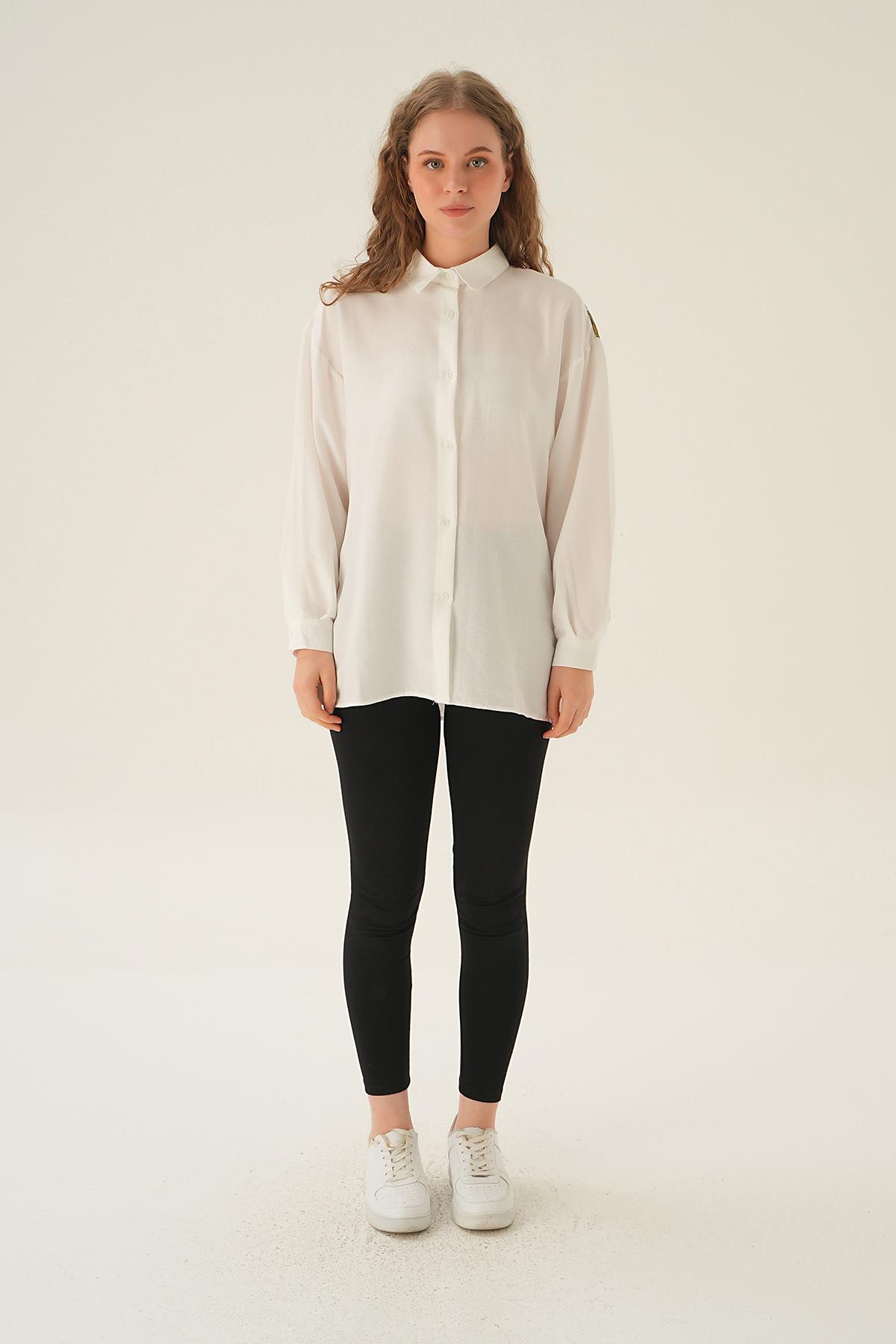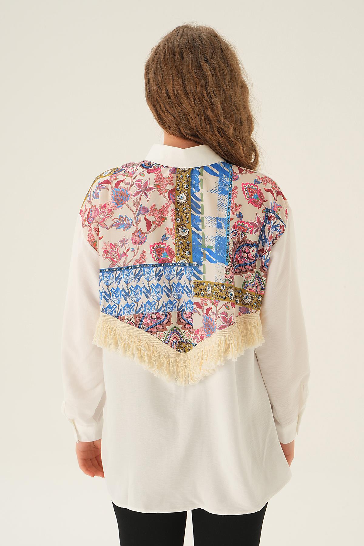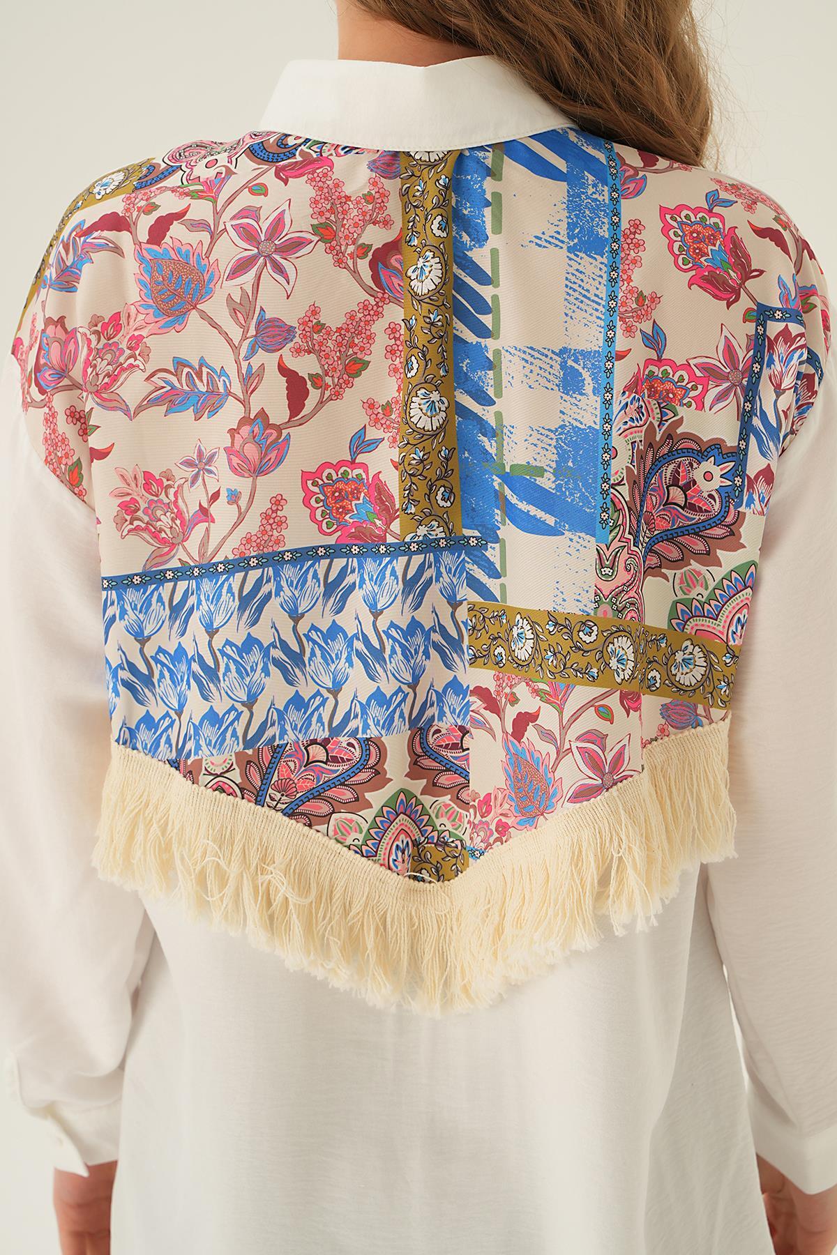 Bej Üçgen Fularlı Oversize Ekose Gömlek 5484