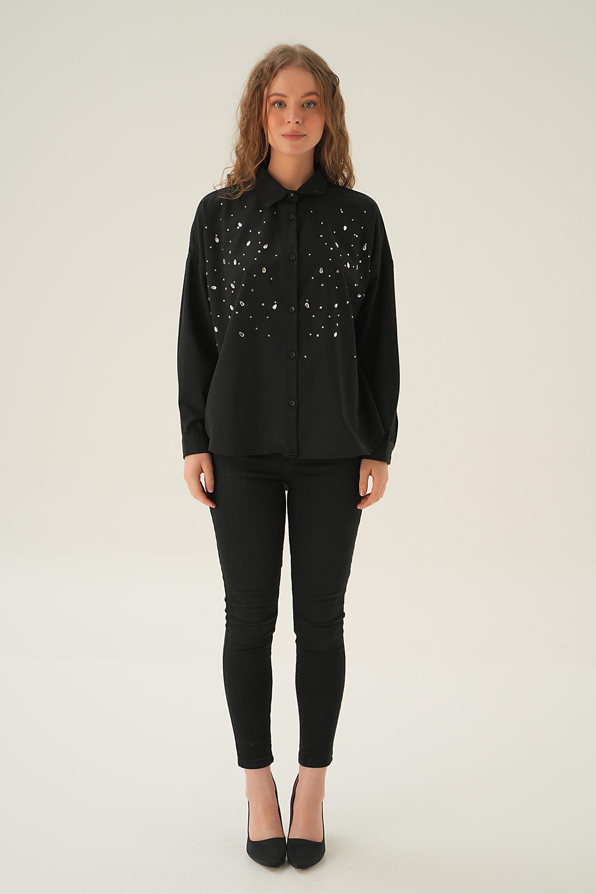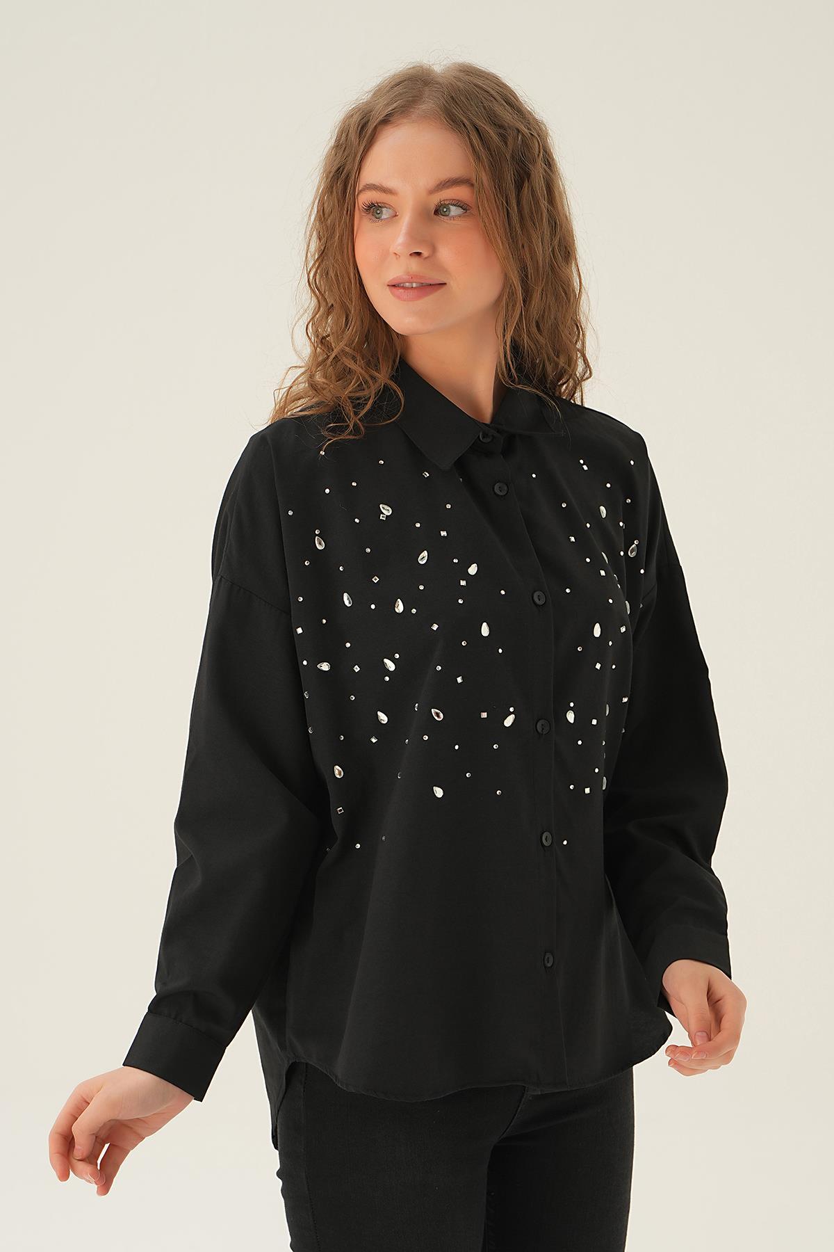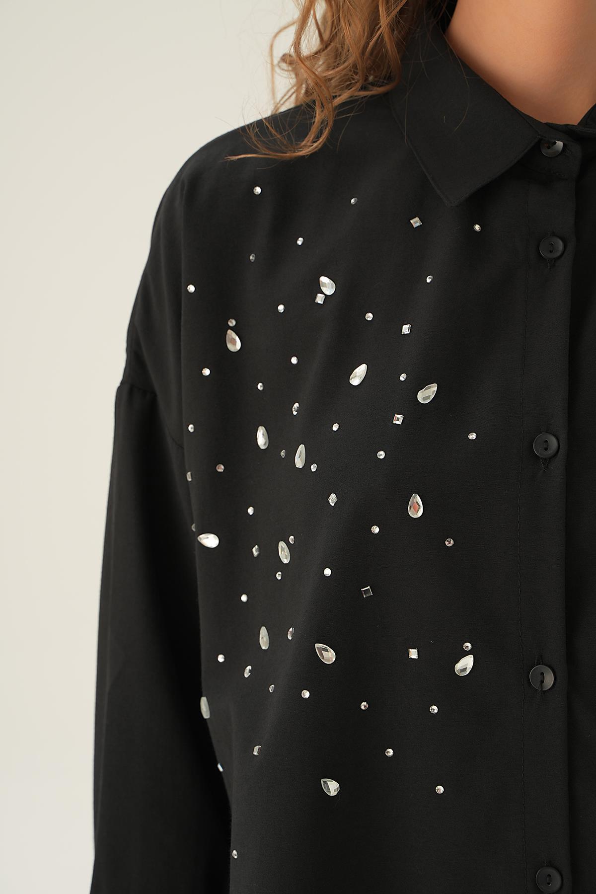 Siyah Taş Detay Gömlek 71445