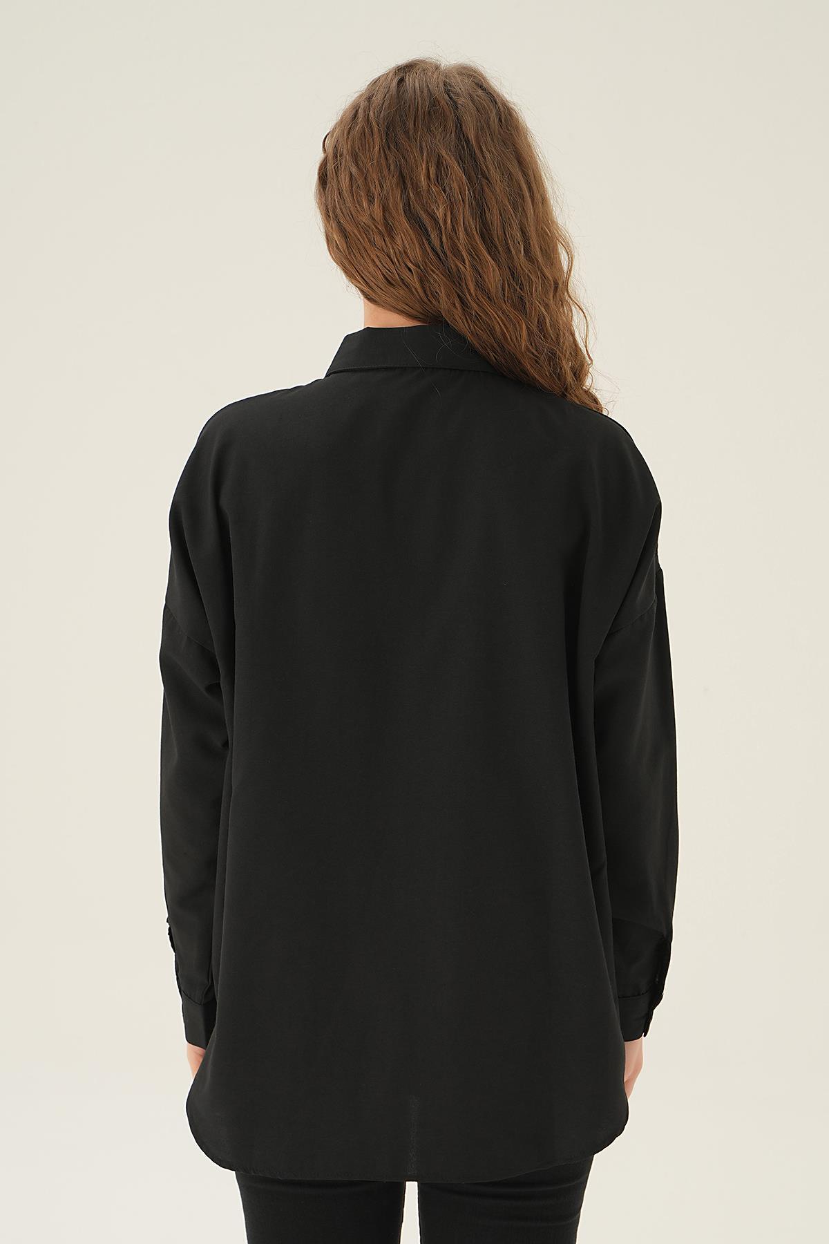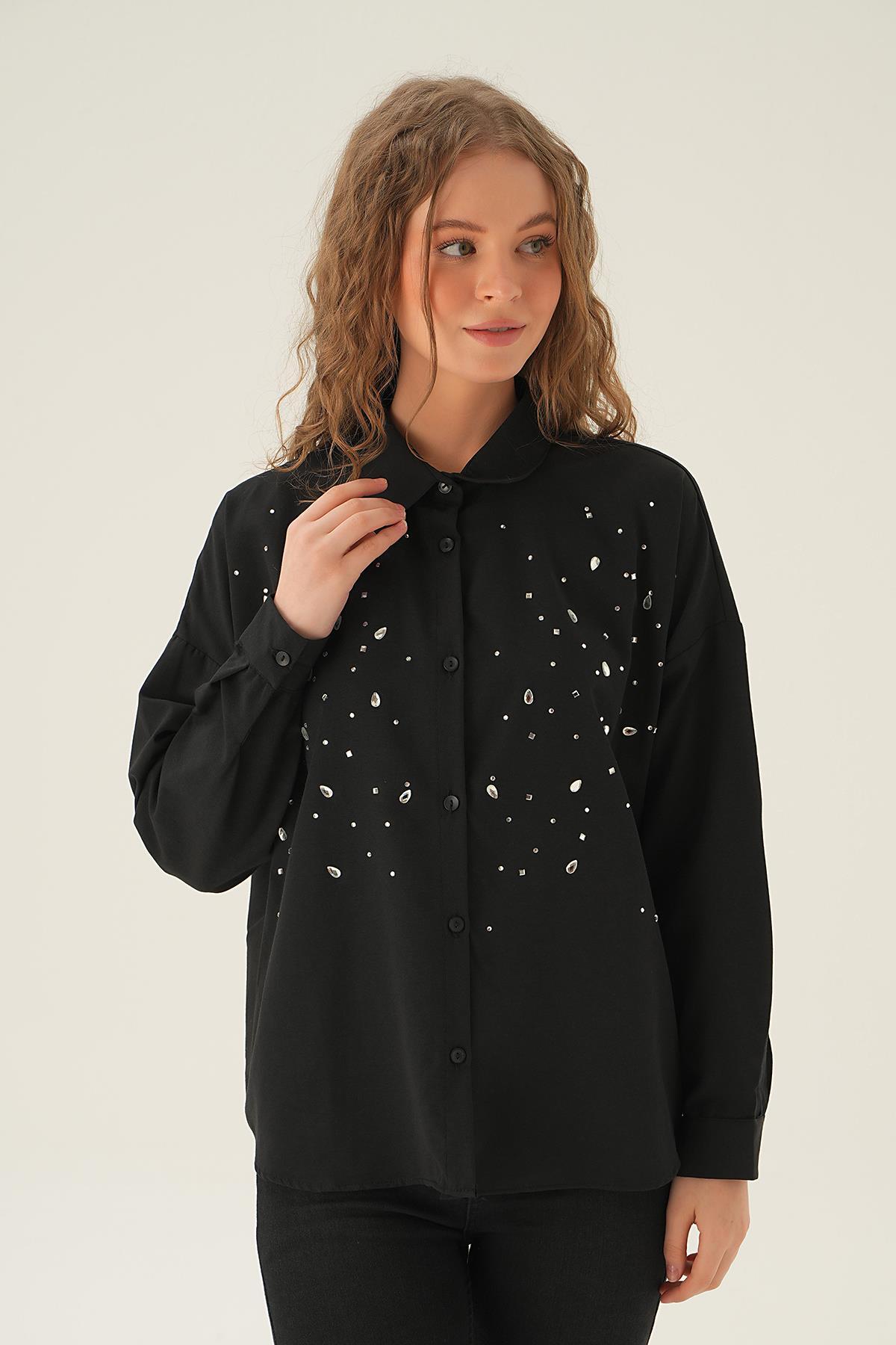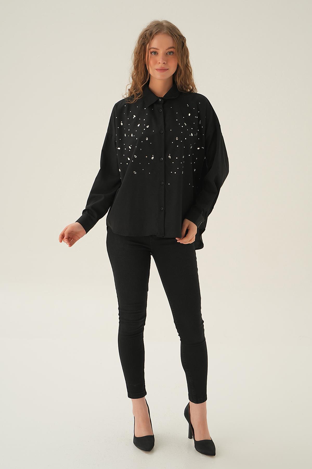Siyah Taş Detay Gömlek 71445