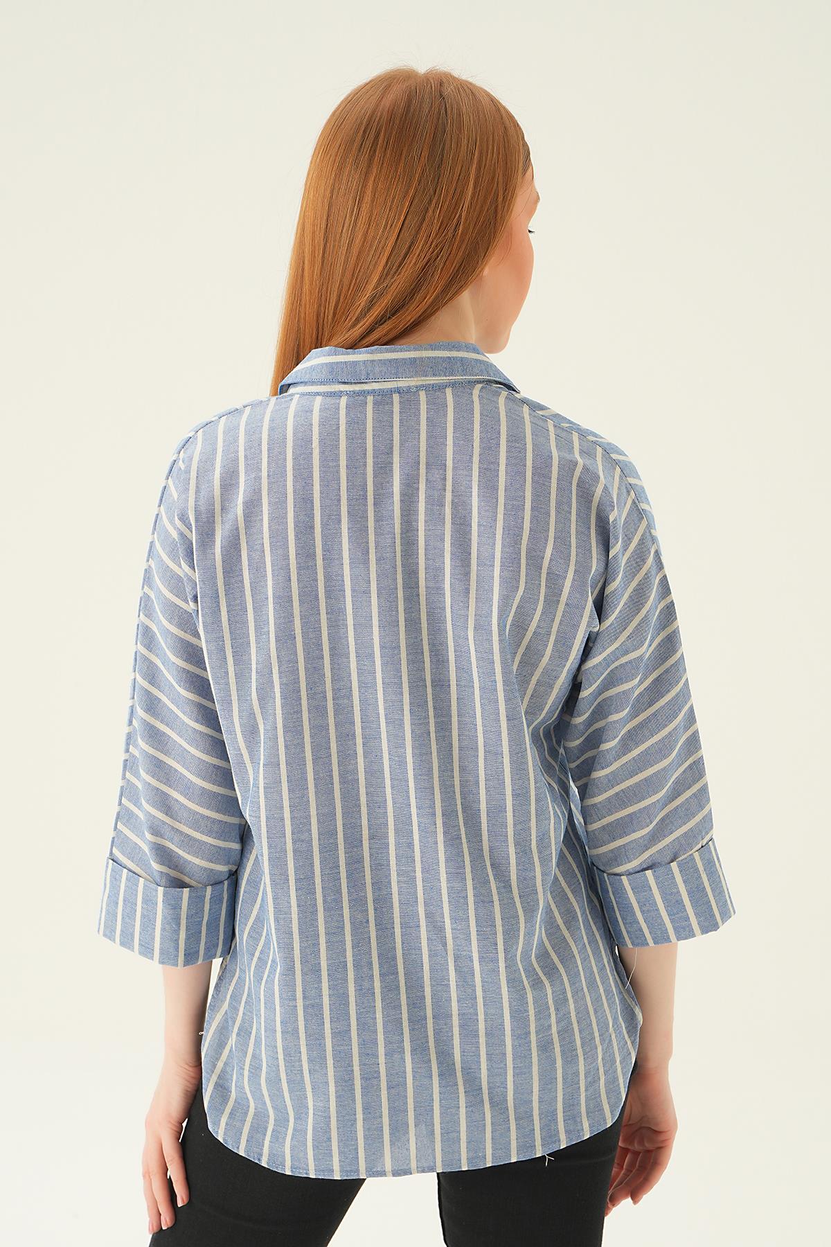 Mavi Çizgili Oversize Gömlek 5460