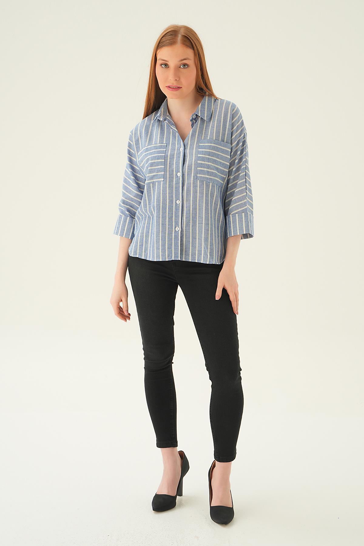 Laci Çift Cep Çizgili Gömlek 71468