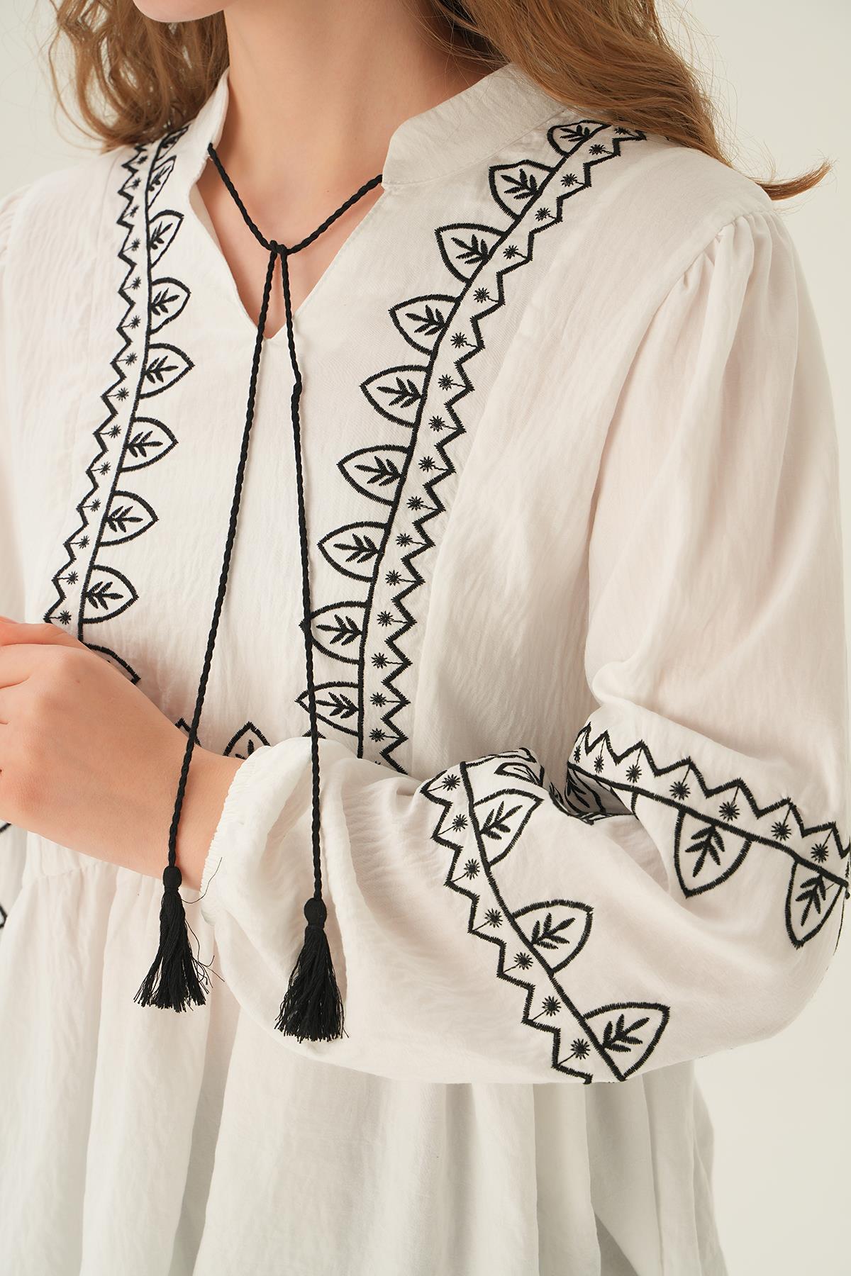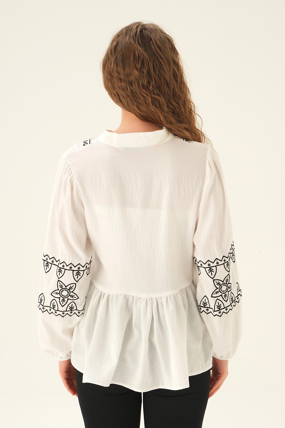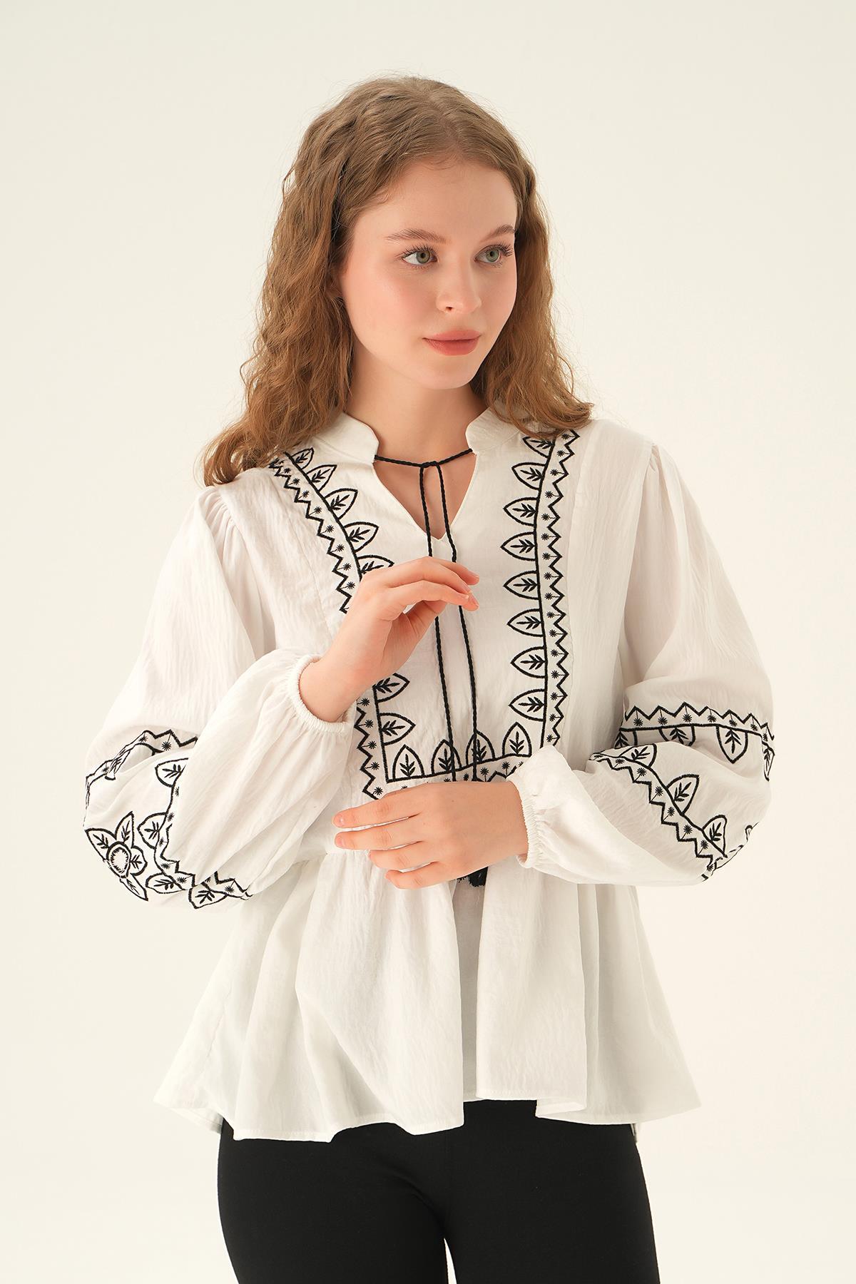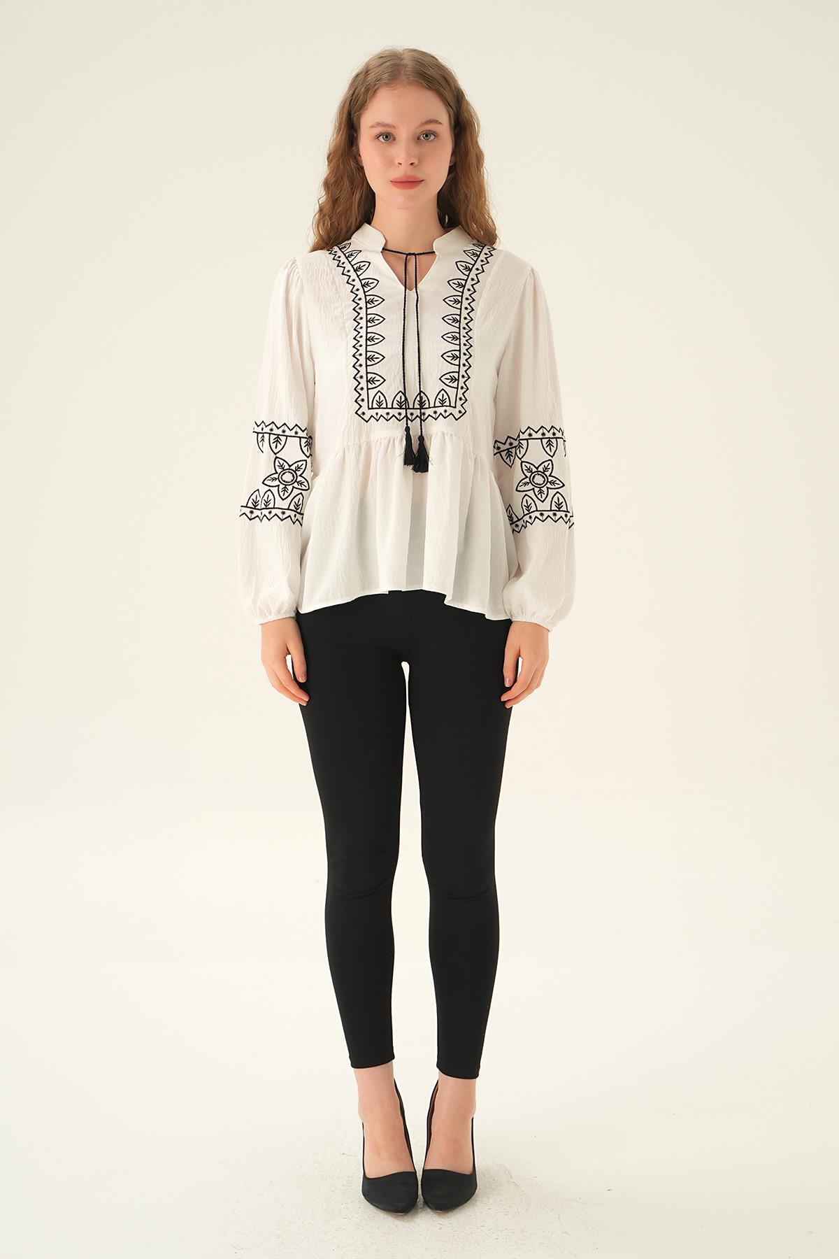 Beyaz Nakış Detay Bluz 71484