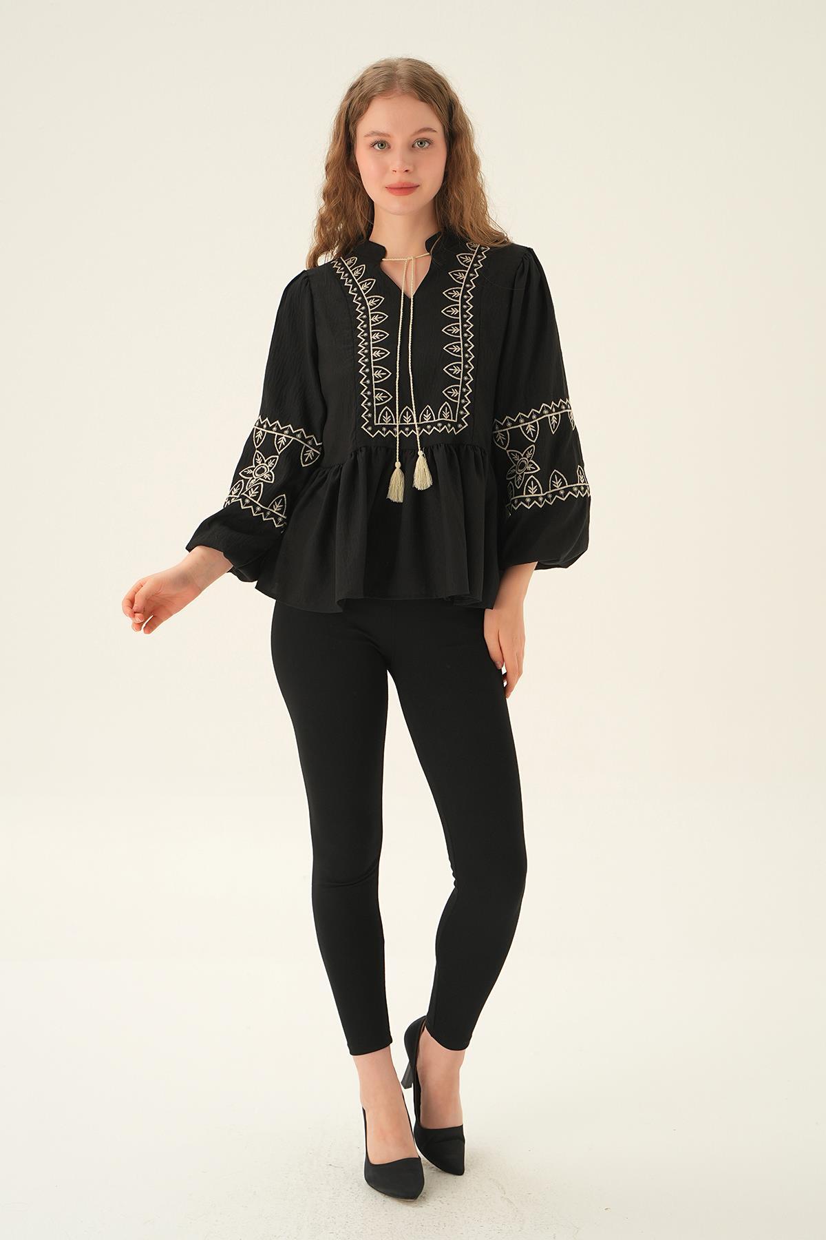 71484 Nakış Detay Bluz Siyah