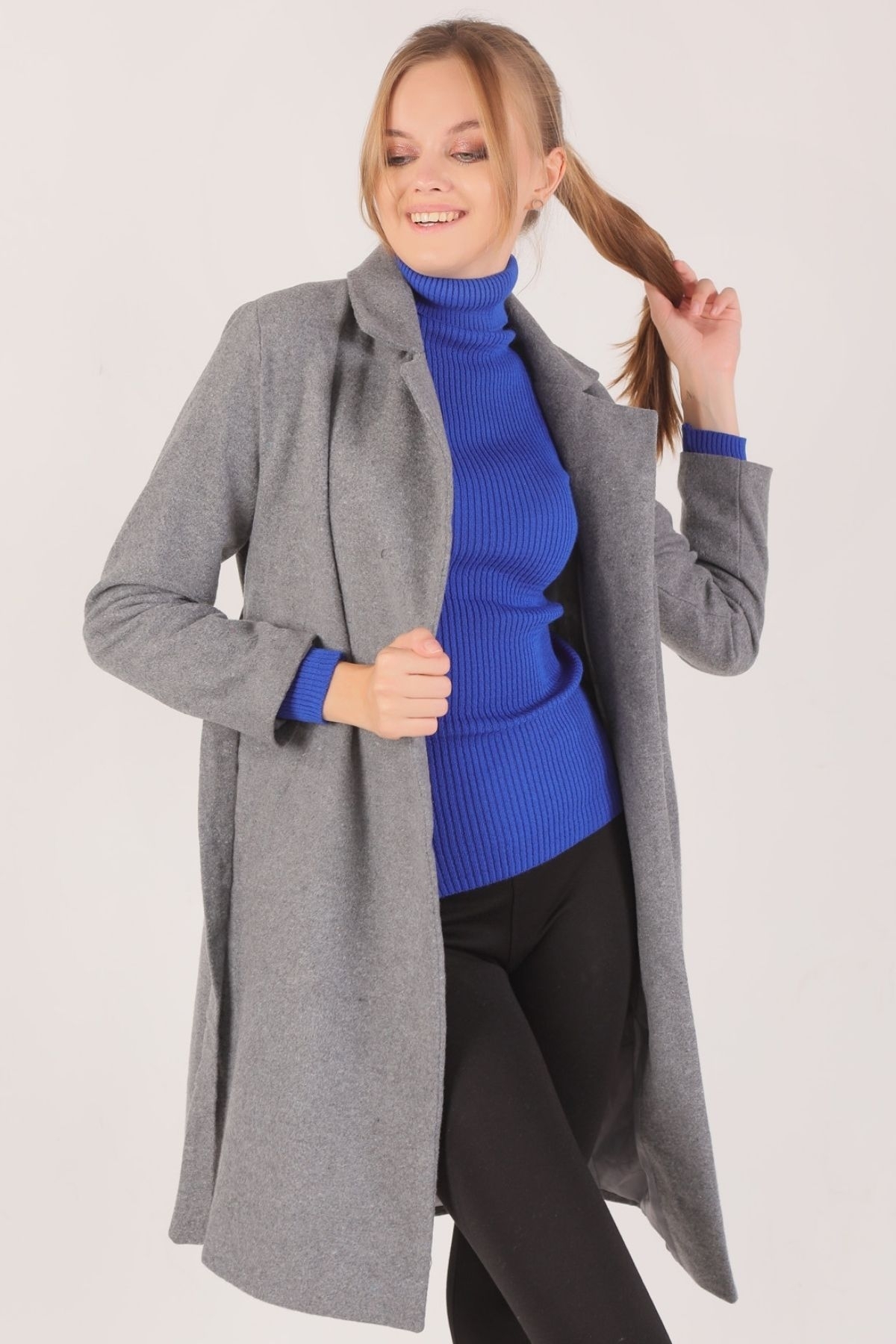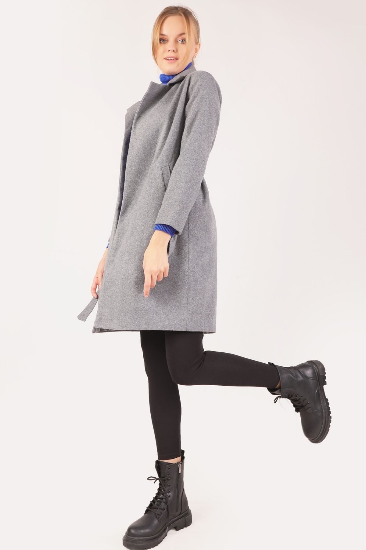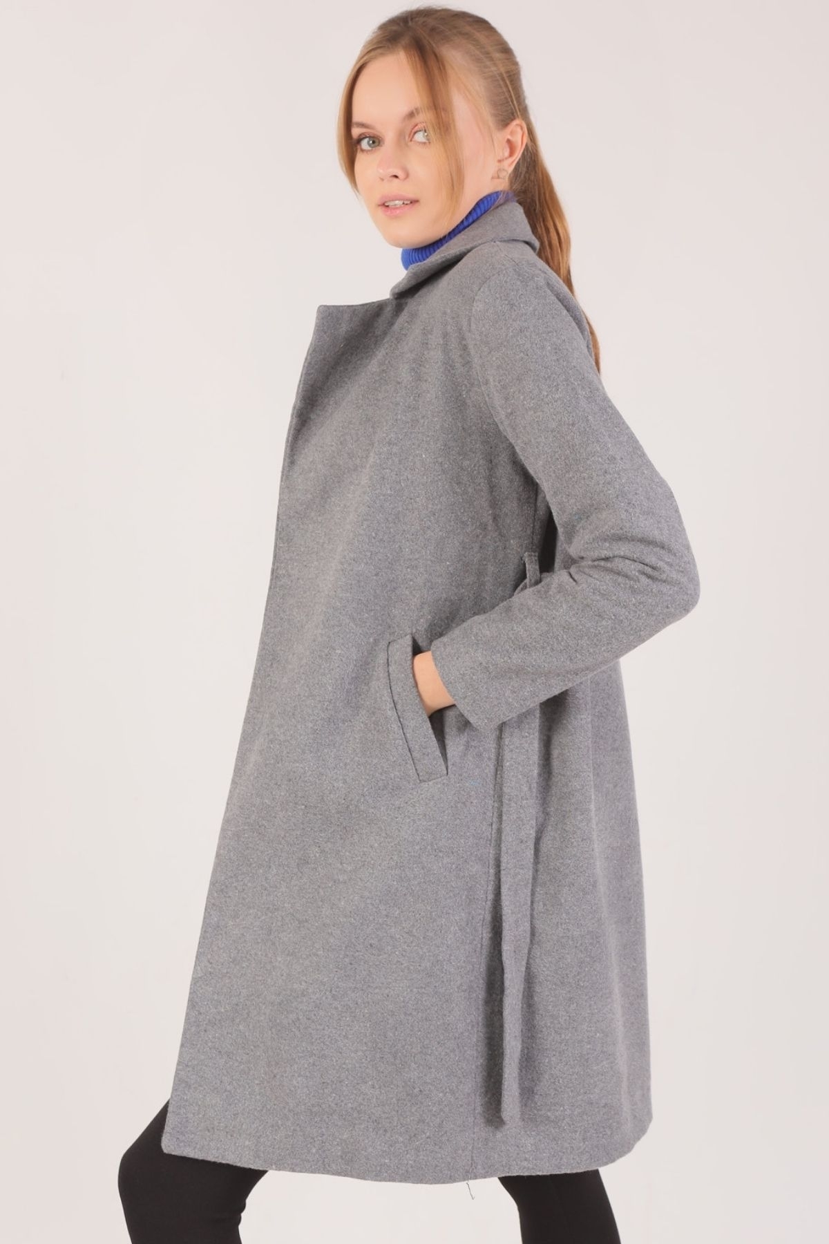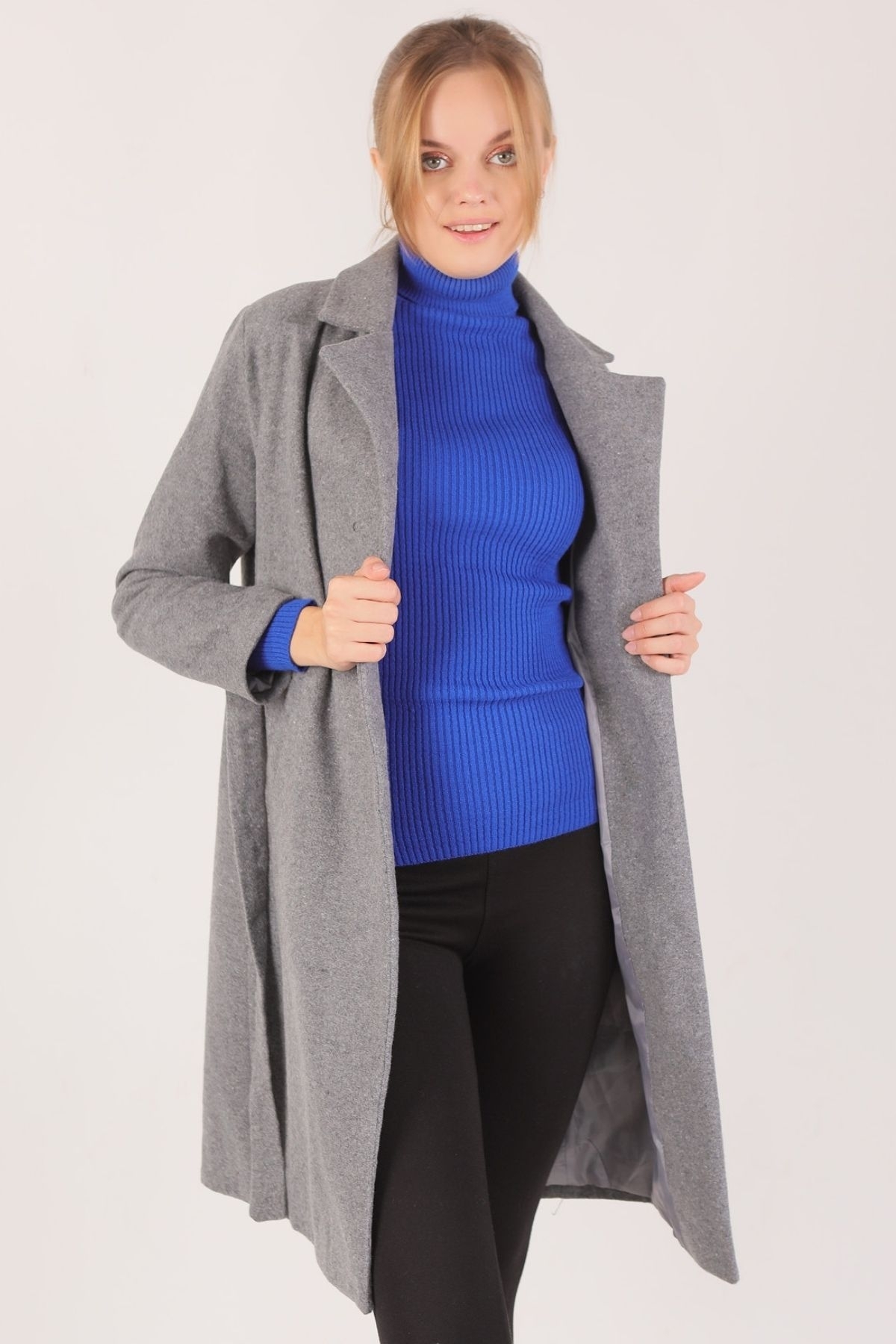 Antrasit Kemerli İçi Astarlı Uzun Kaşe Kaban TCR-7149A