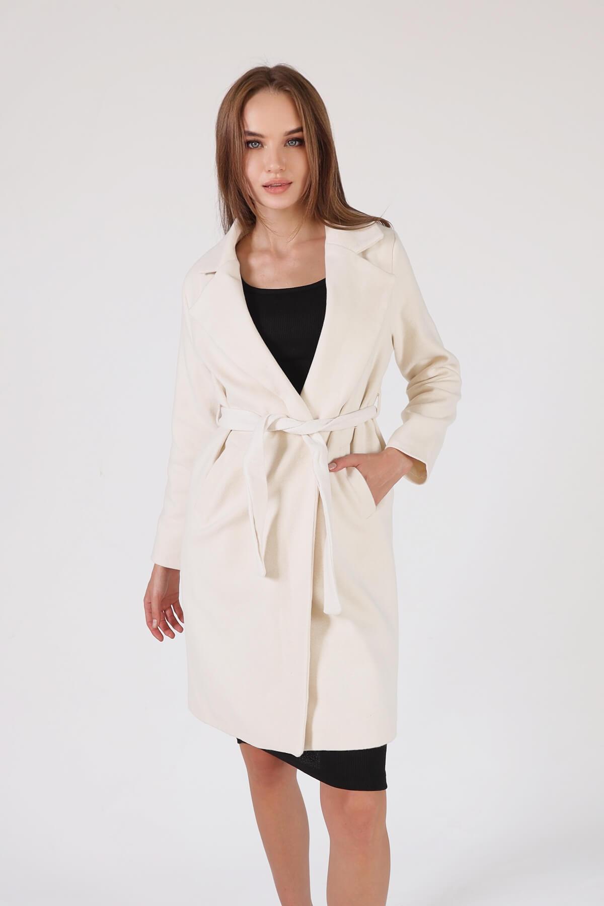 7149A Belden Bağlamalı Uzun Kaban Bej