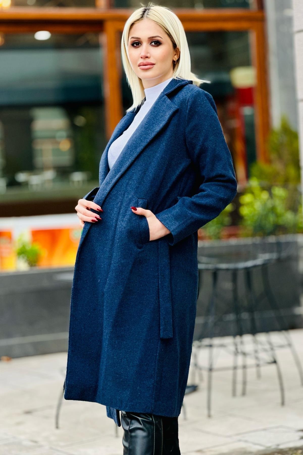 7149A Belden Bağlamalı Uzun Kaban İndigo