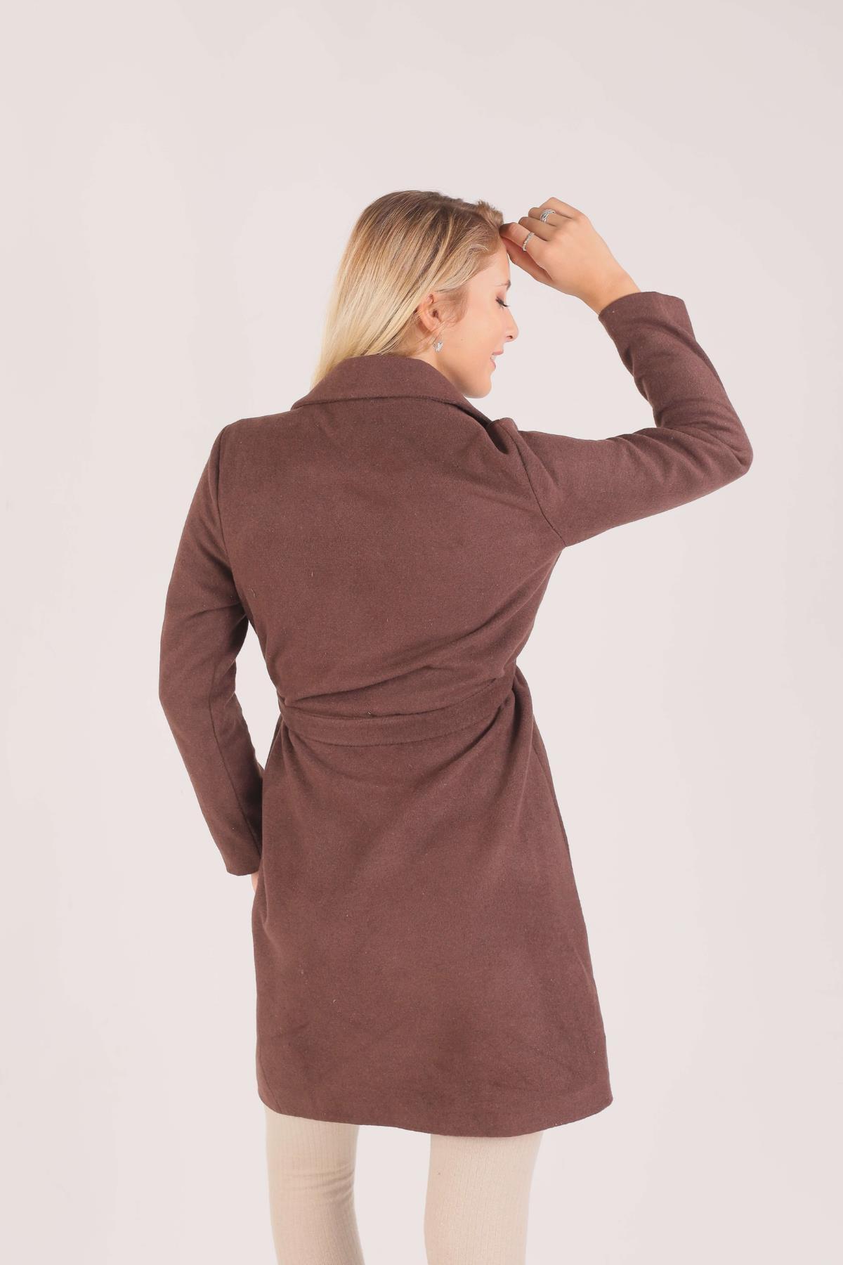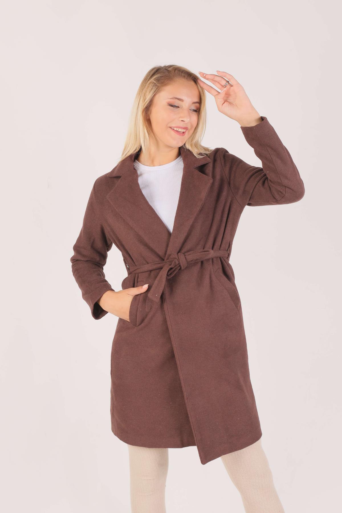 Kahve Kemerli İçi Astarlı Uzun Kaşe Kaban TCR-7149A