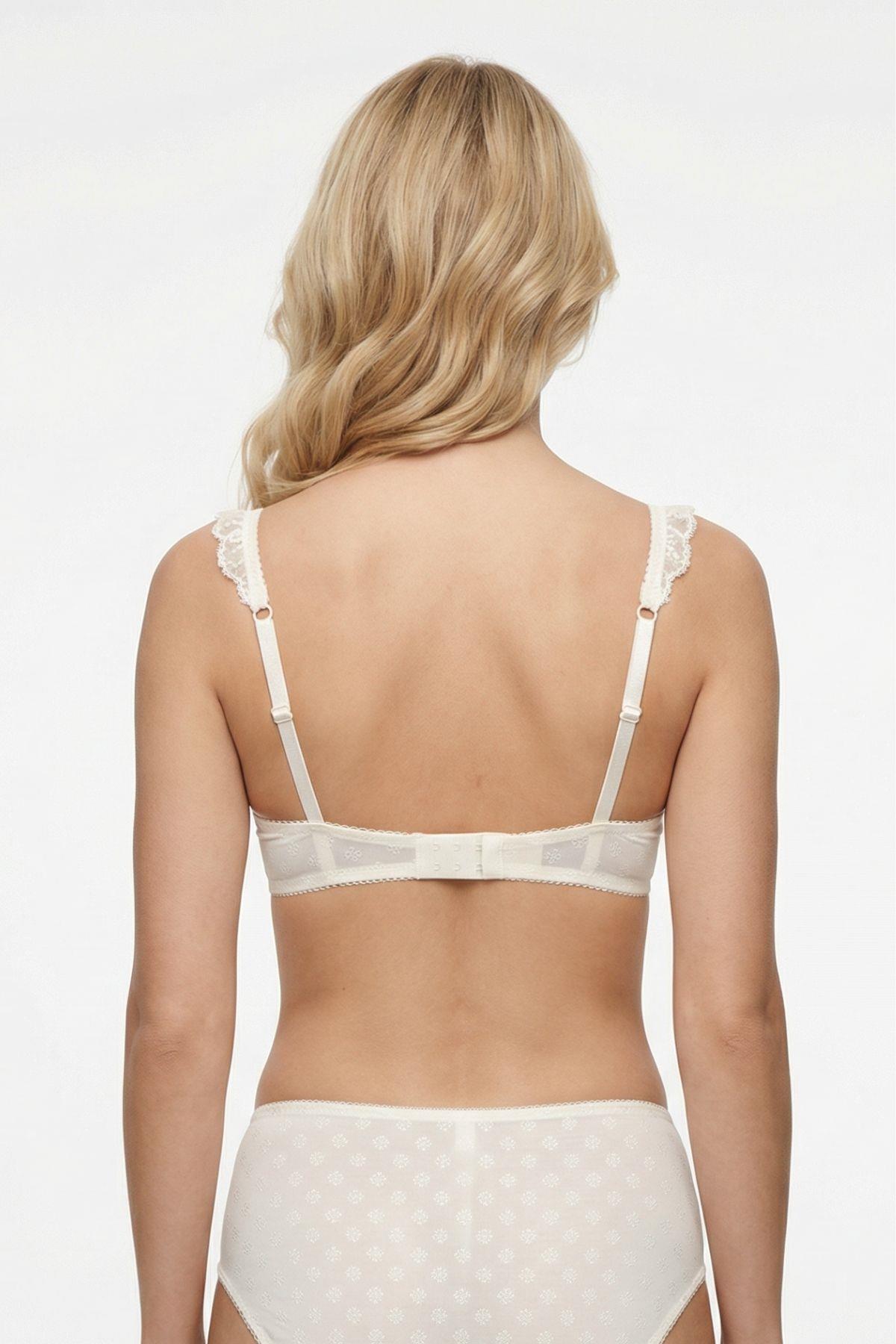 717 Desenli Askı Fırfır Detay Sütyen Takım Ekru
