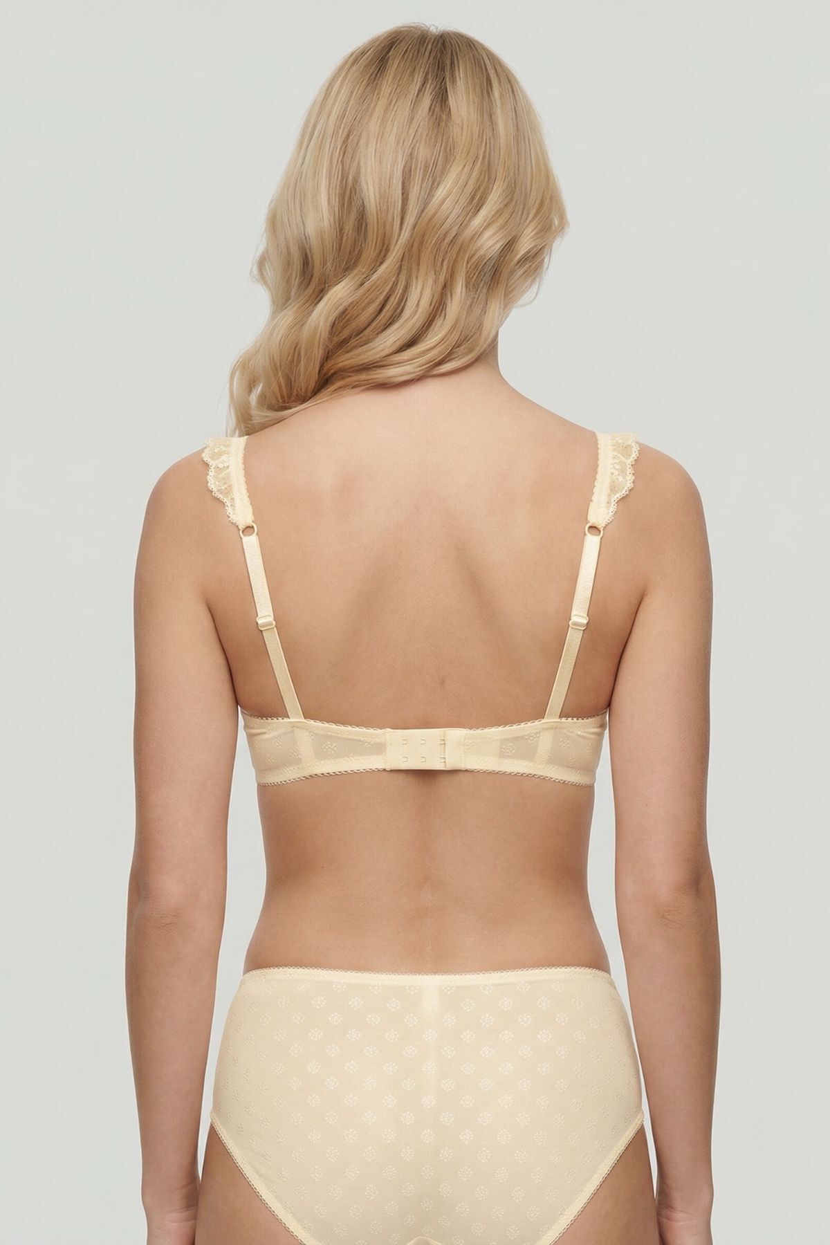 Ekru Desenli Askı Fırfır Detay Sütyen Takım 717