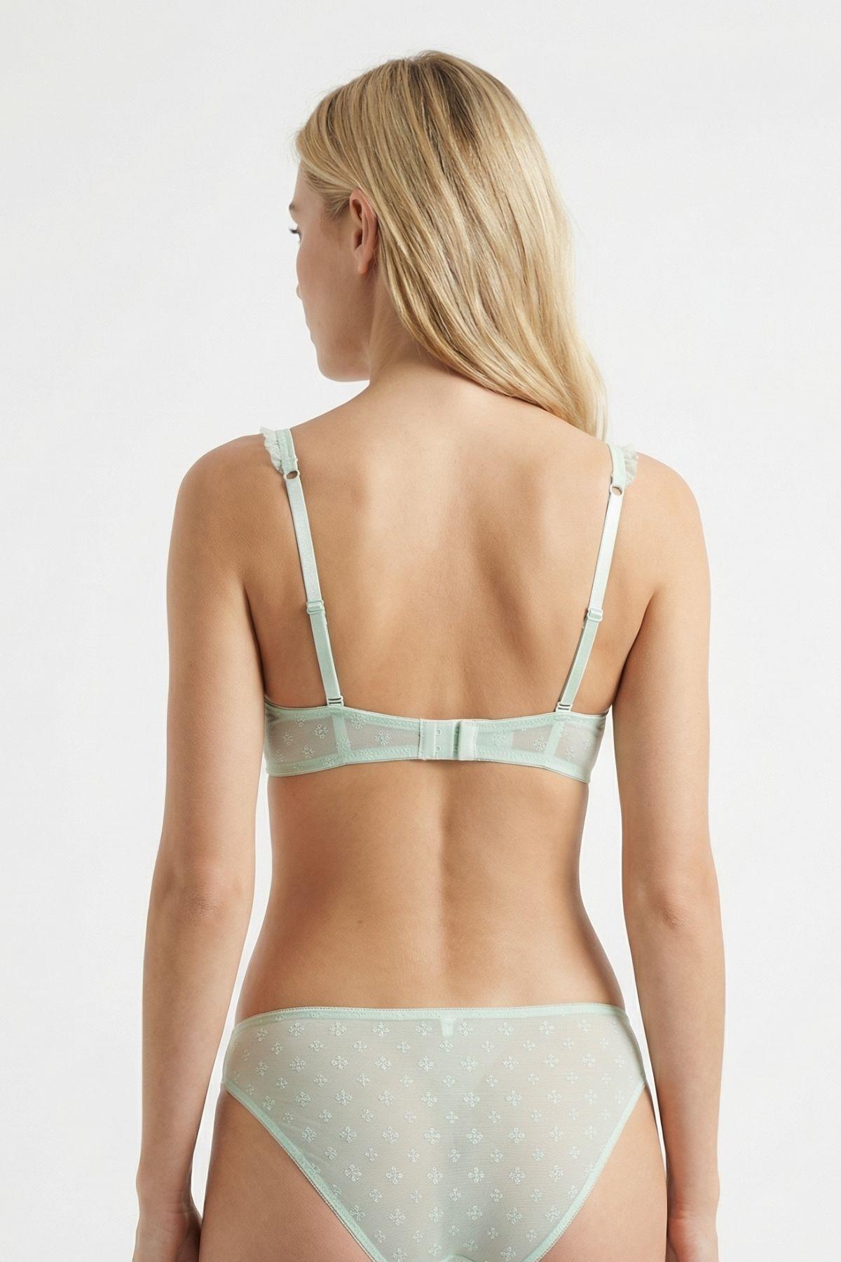 717 Desenli Askı Fırfır Detay Sütyen Takım Mint