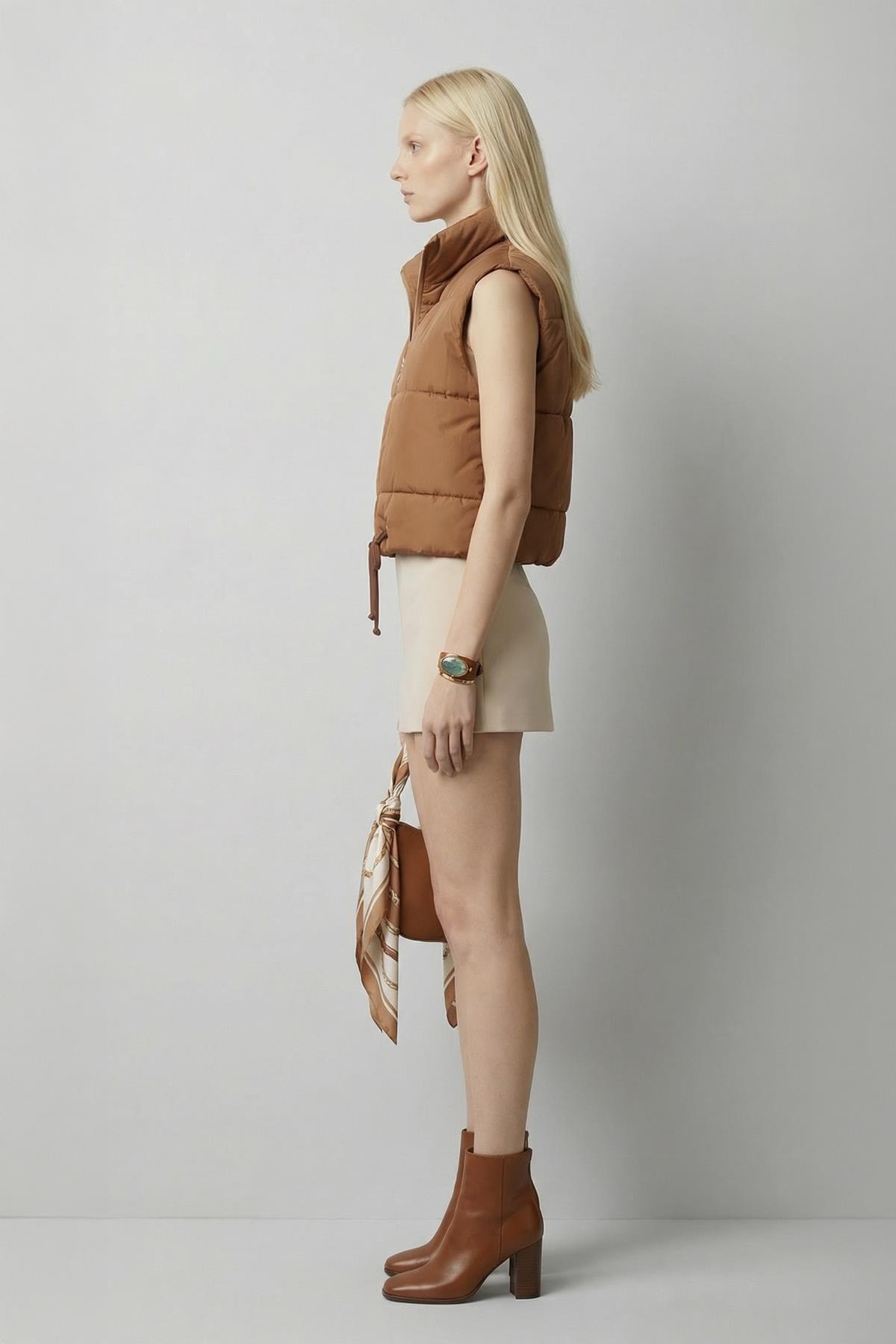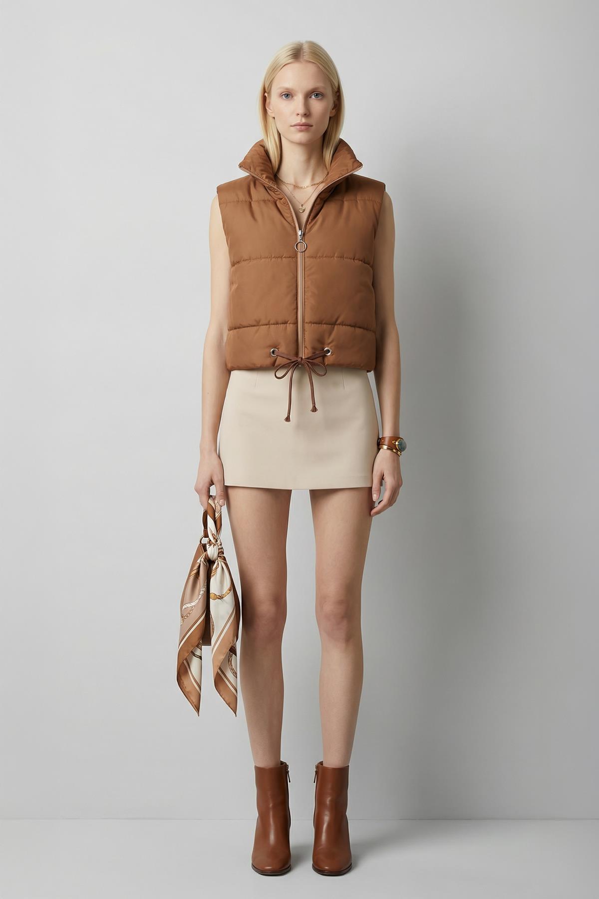 Taba Sıfır Kol Fermuarlı Yelek 7200