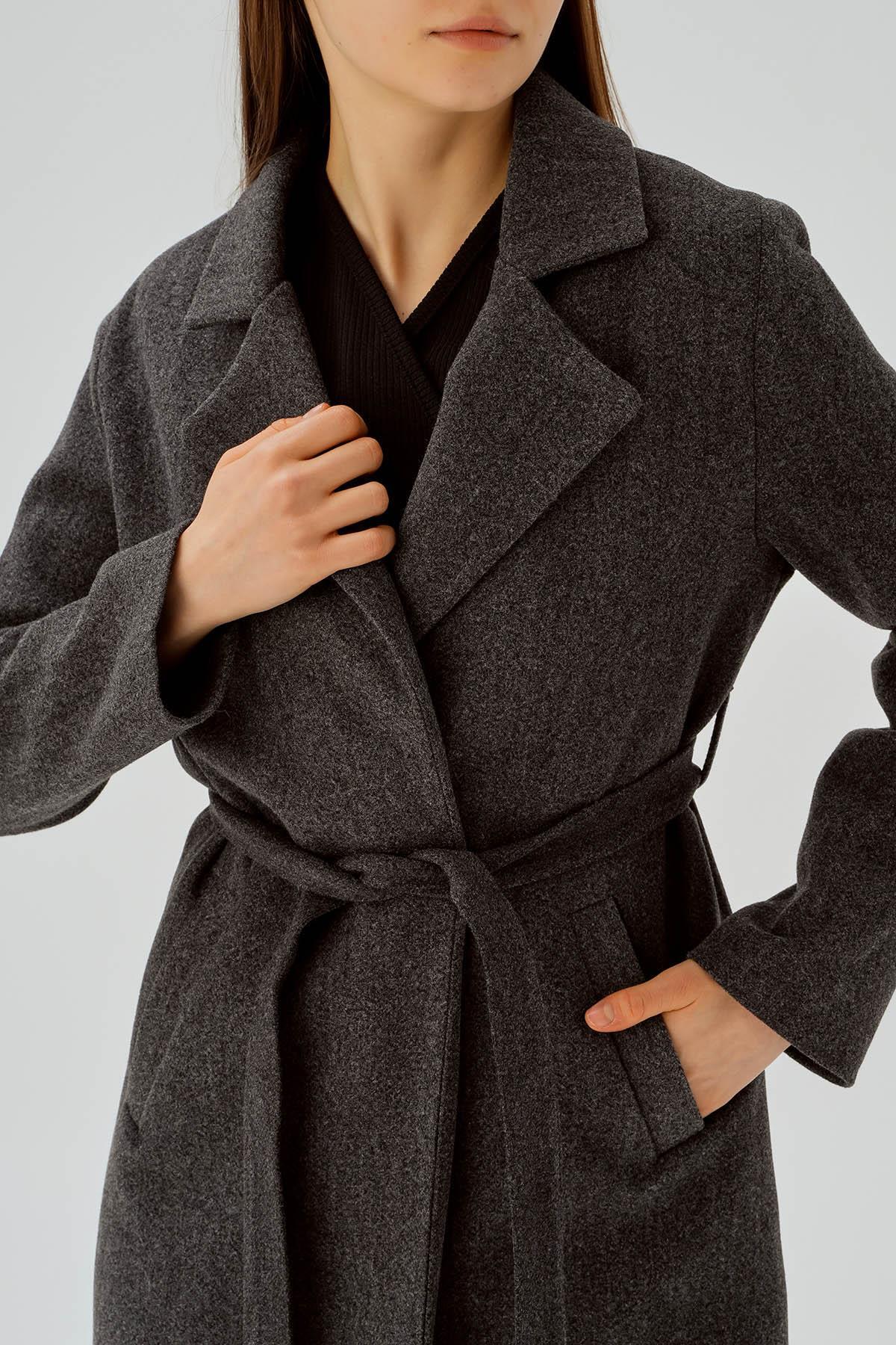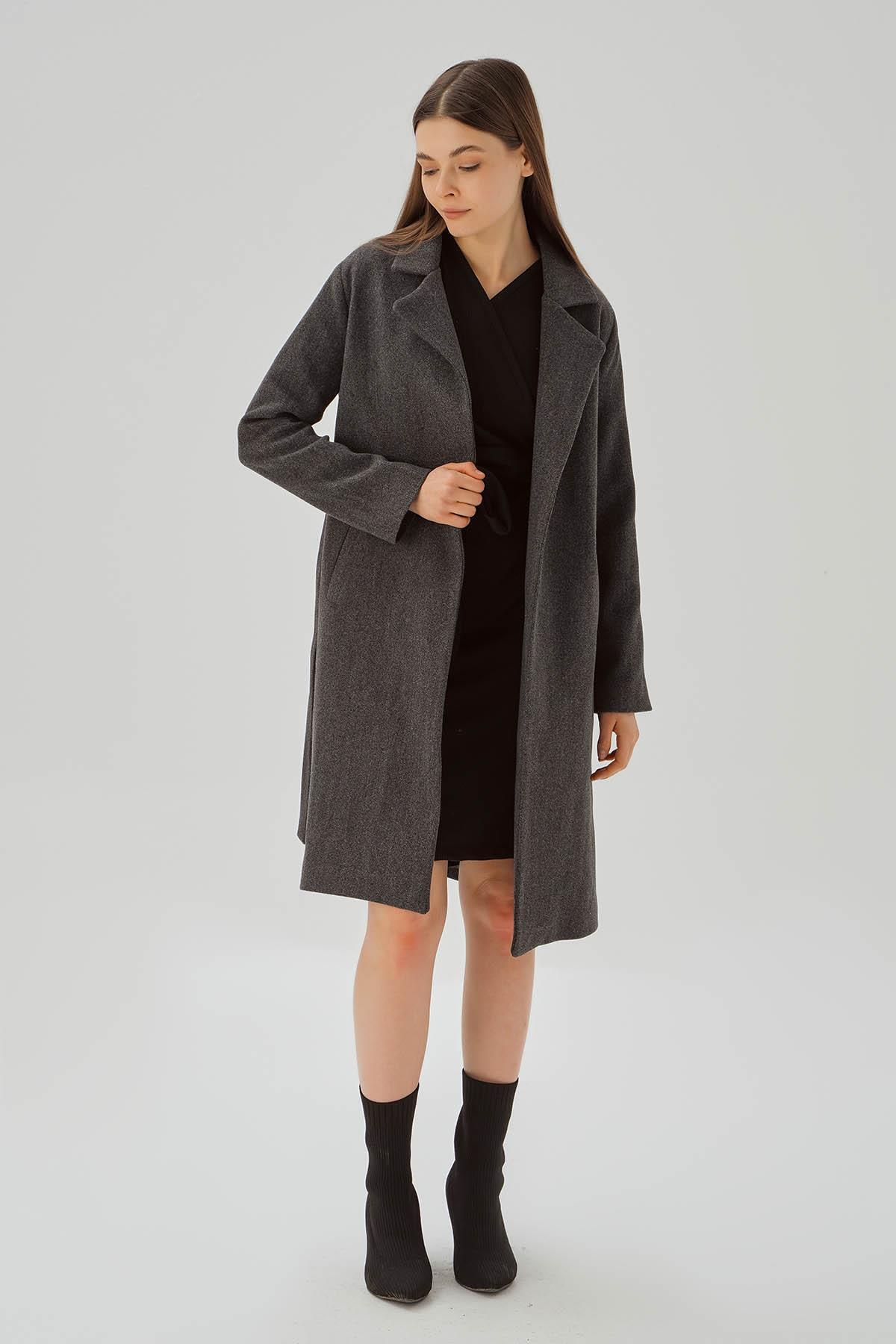 7218A Belden Bağlamalı Kaşe Kaban Füme