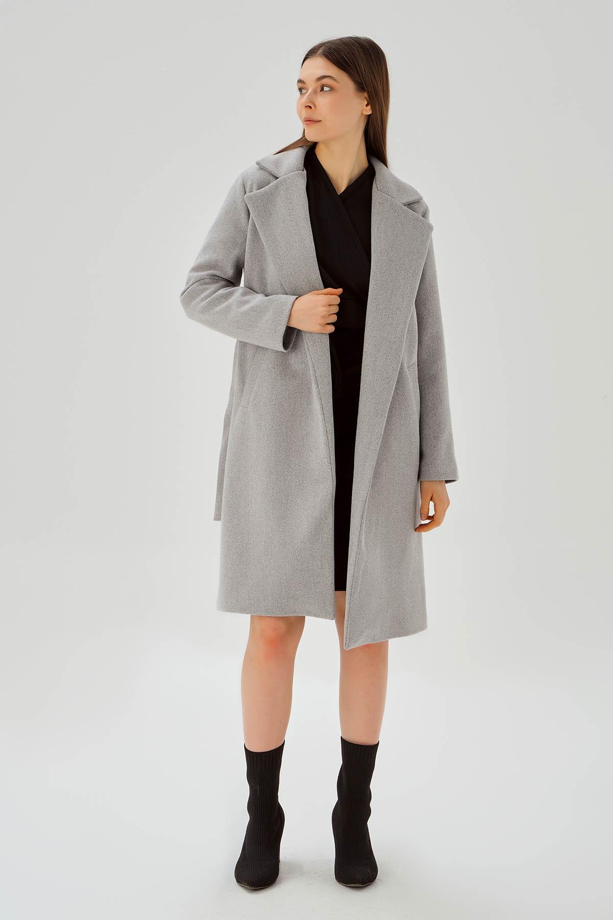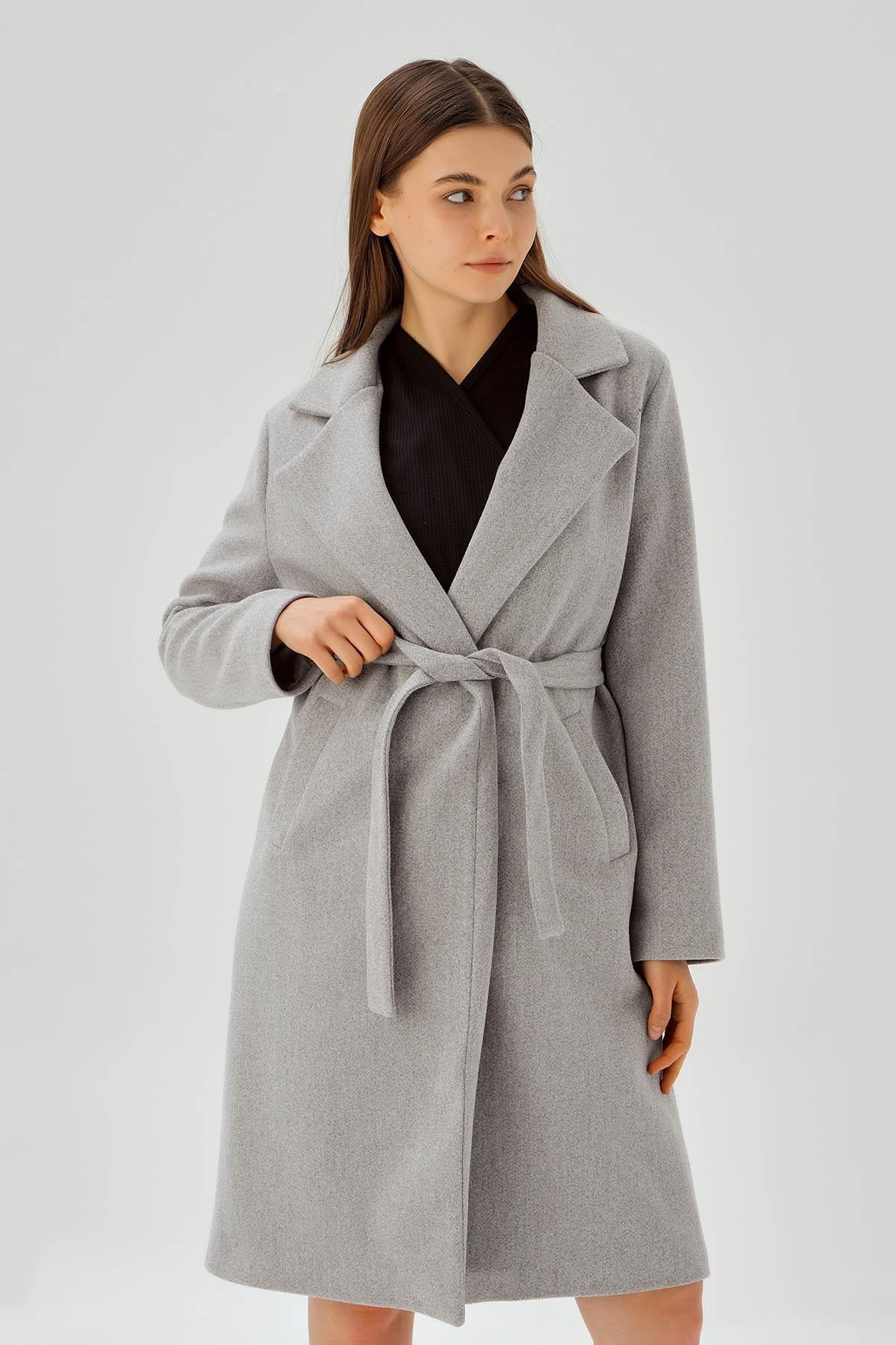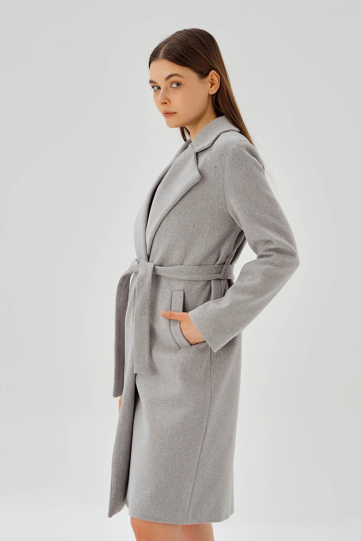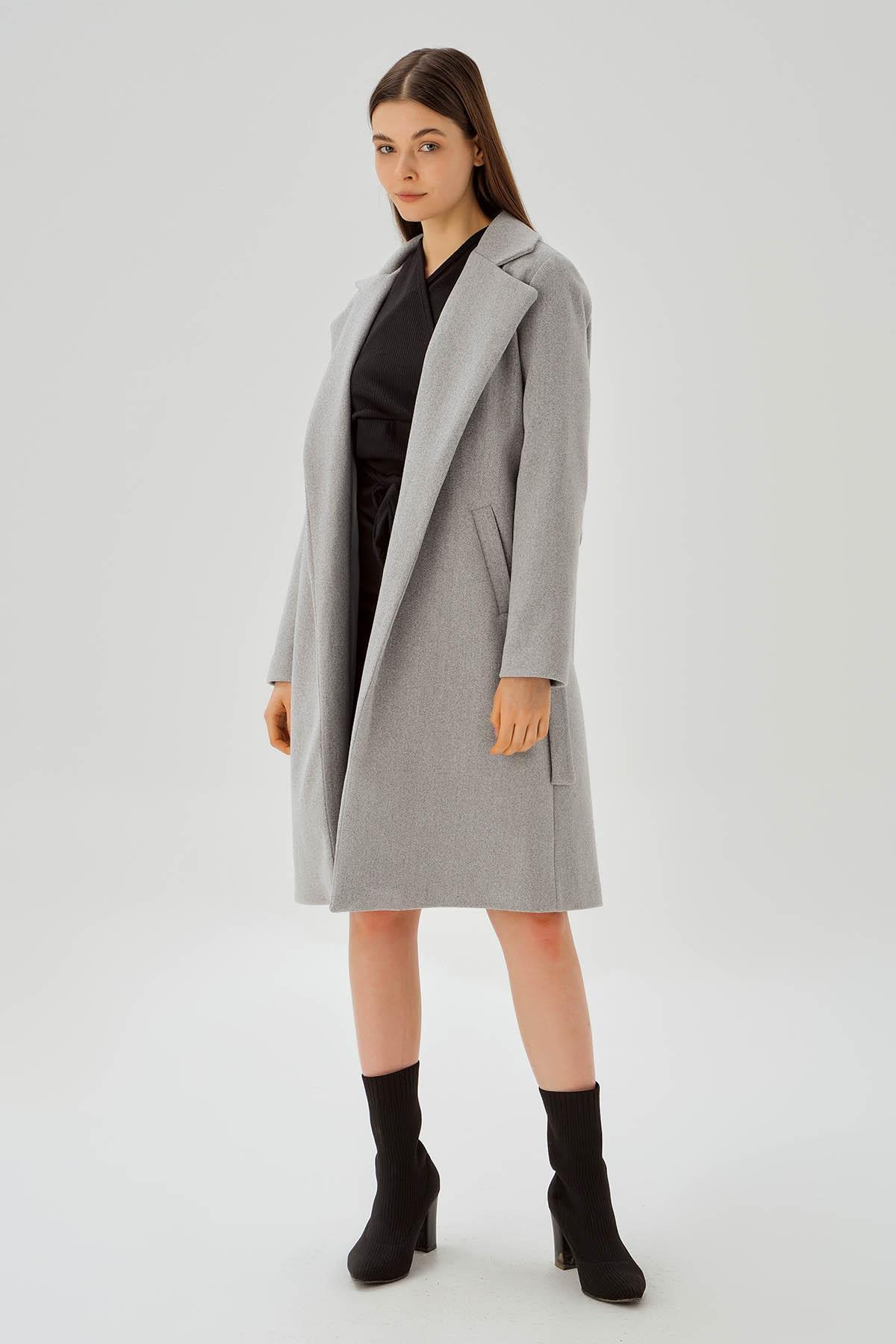 Gri Belden Bağlamalı Kaşe Kaban 7218A