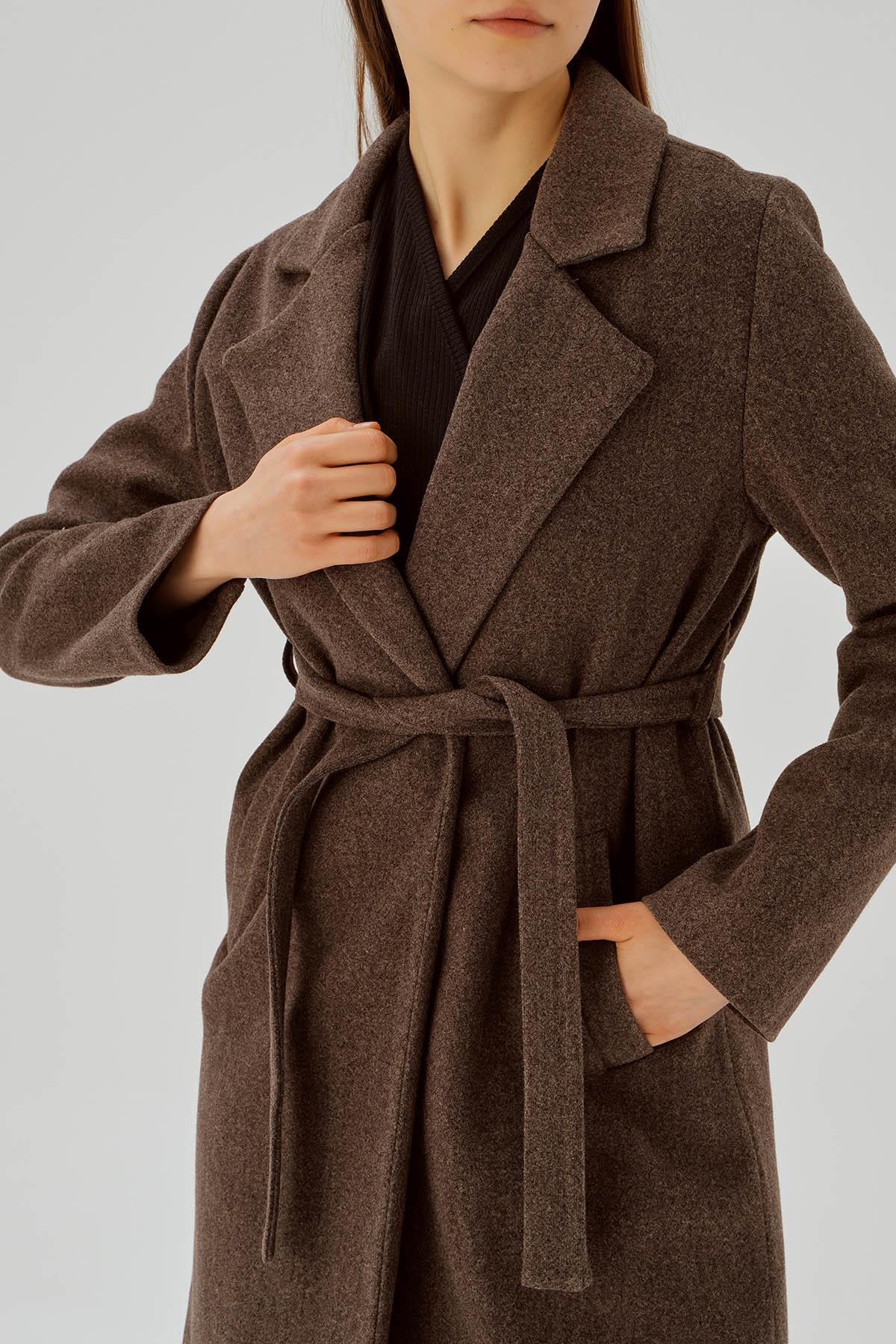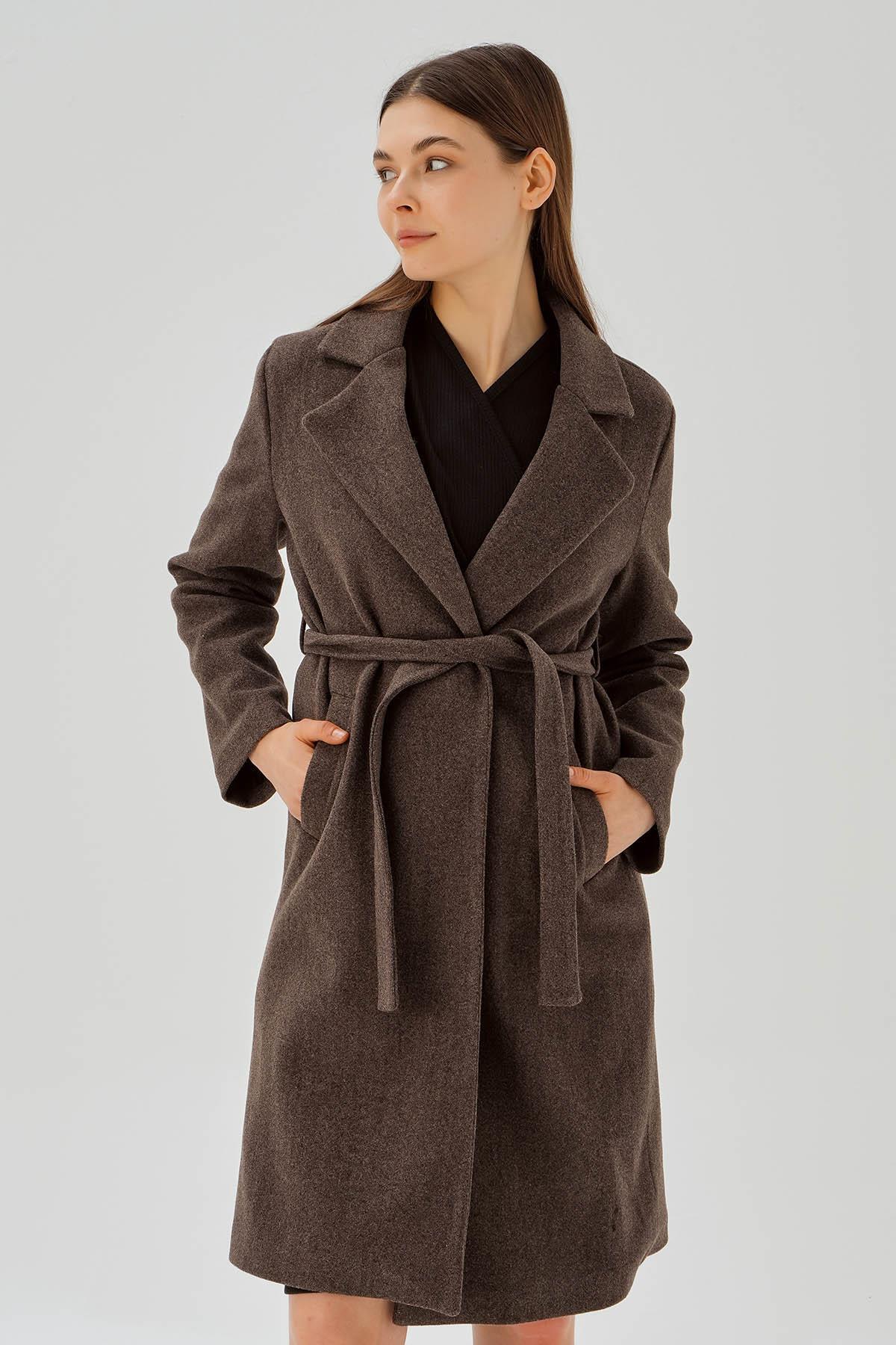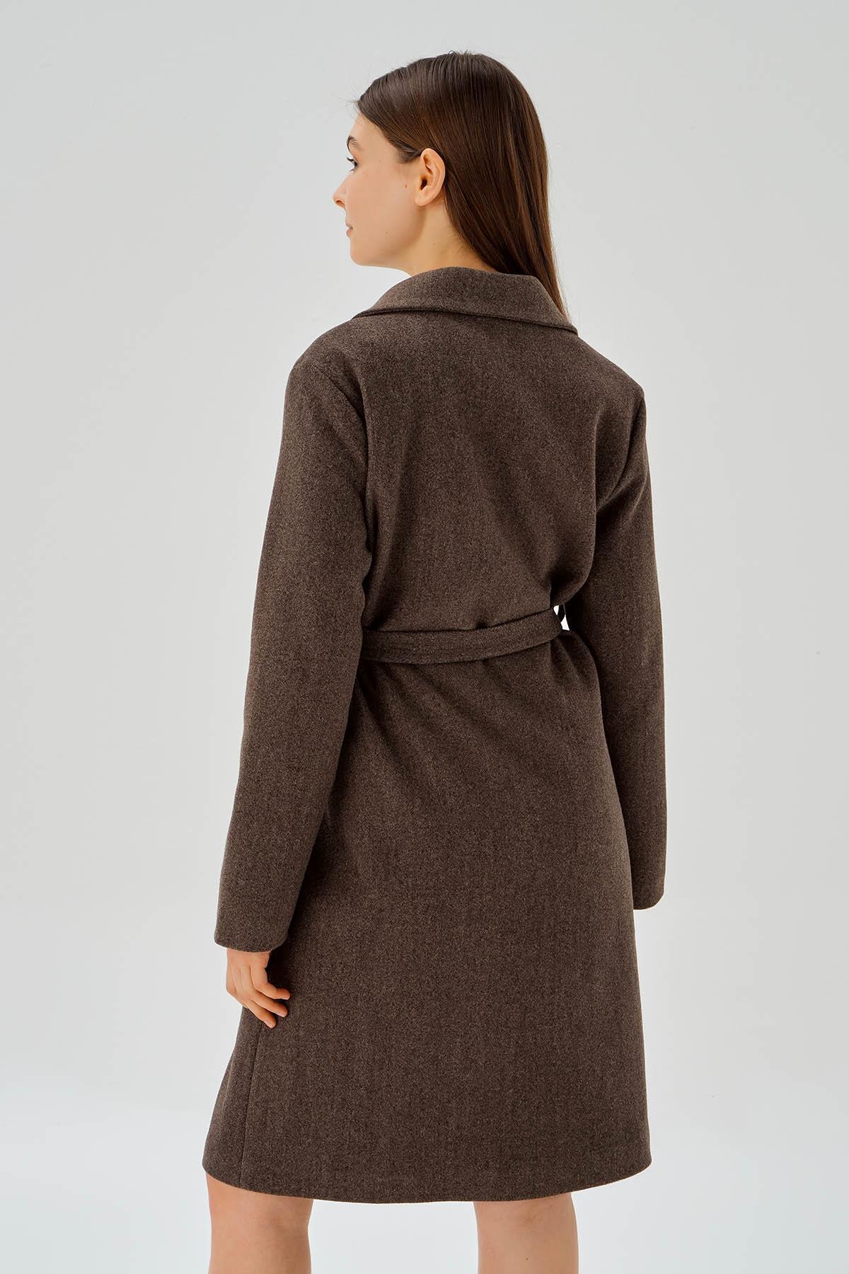 Kahve Belden Bağlamalı Kaşe Kaban 7218A