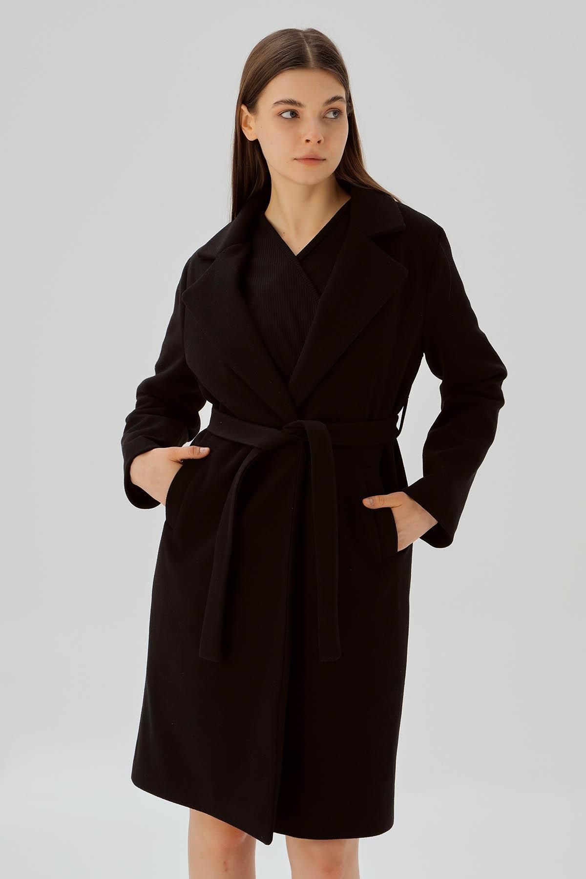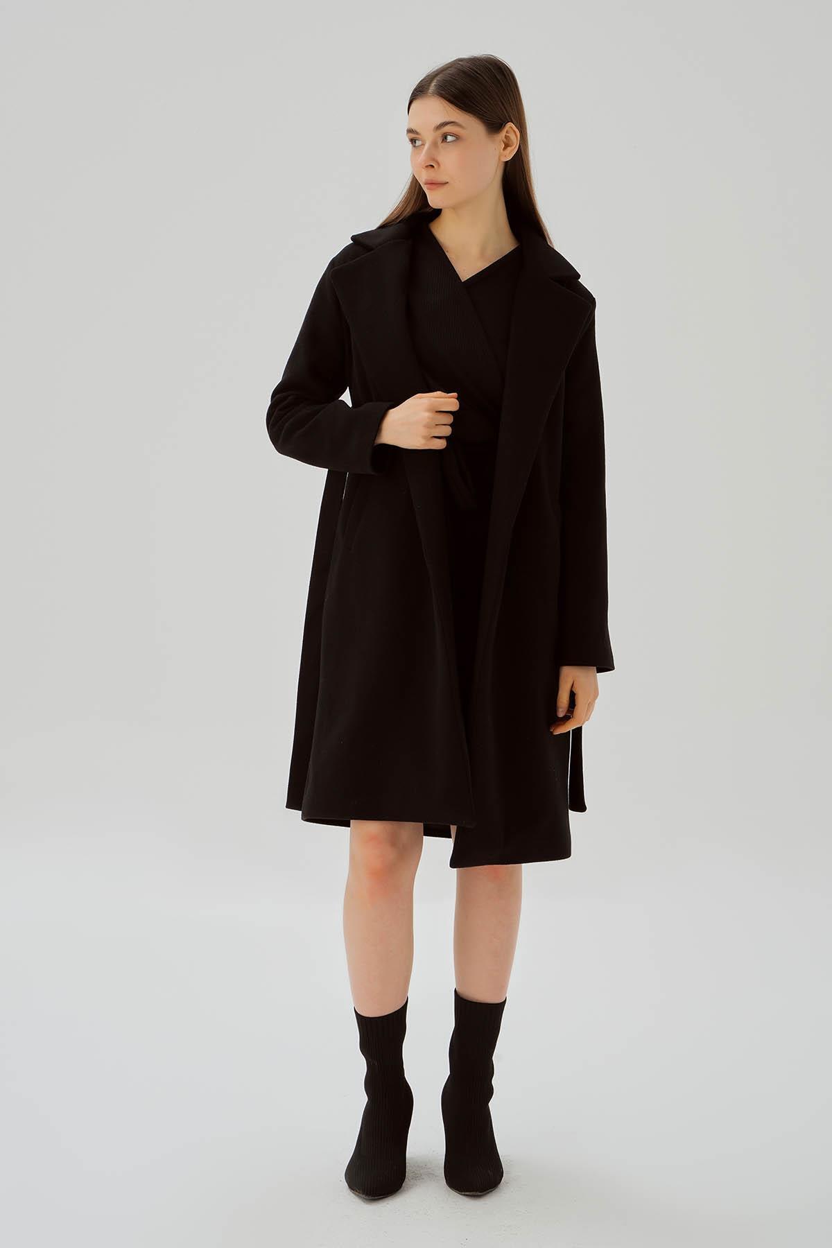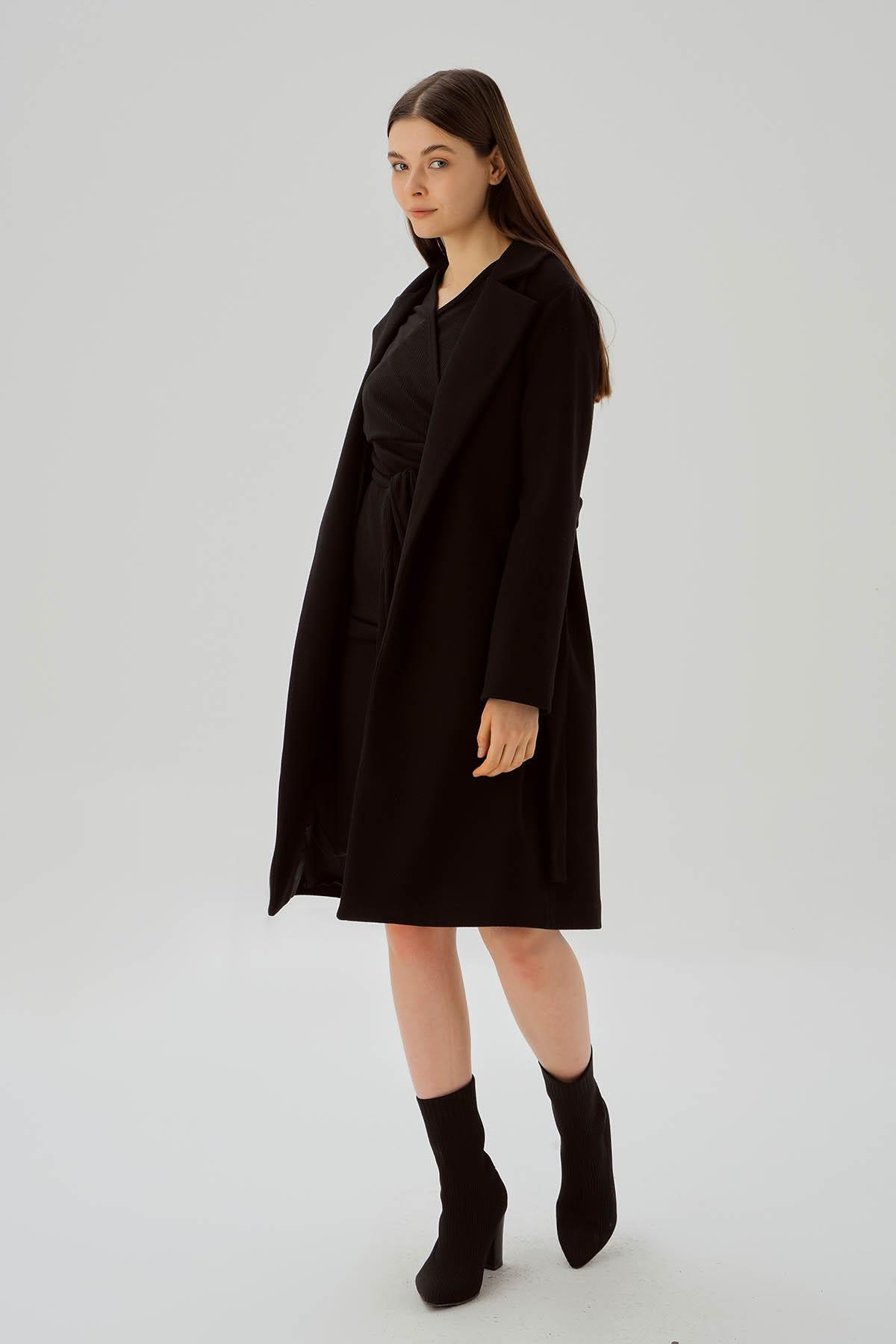 Siyah Belden Bağlamalı Kaşe Kaban 7218A