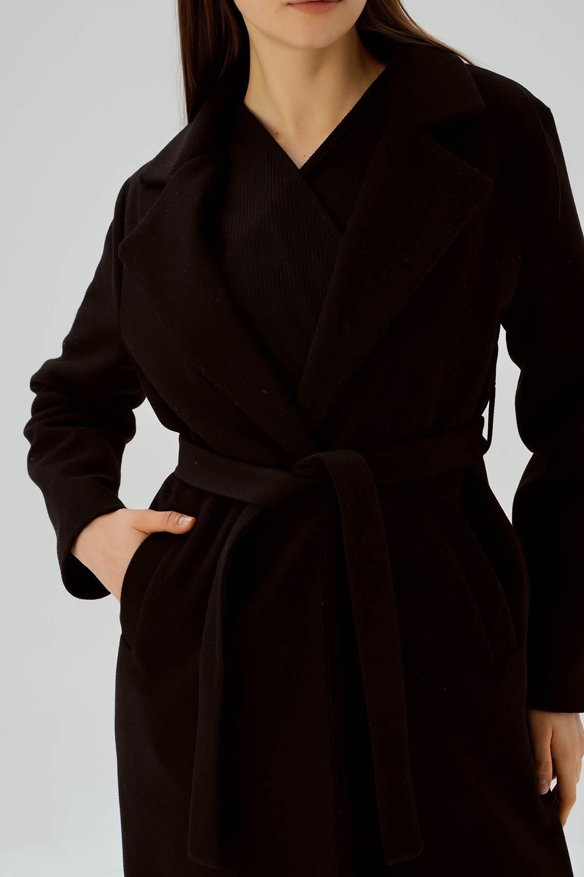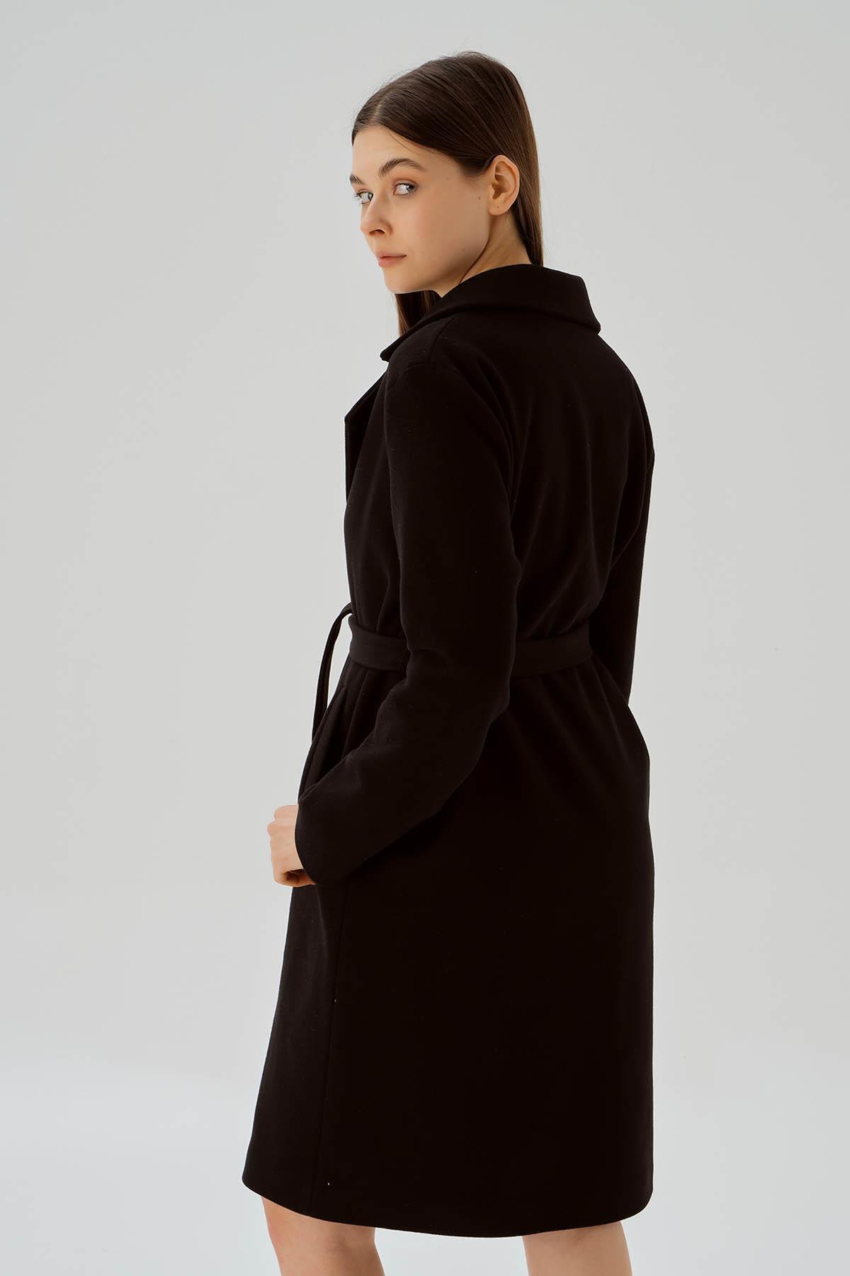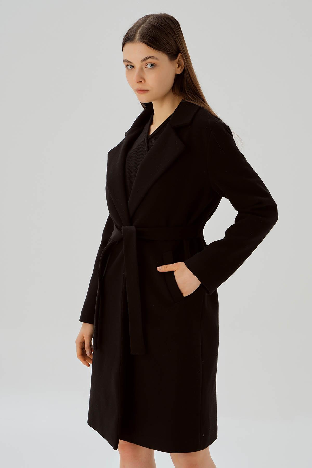 Siyah Belden Bağlamalı Kaşe Kaban 7218A