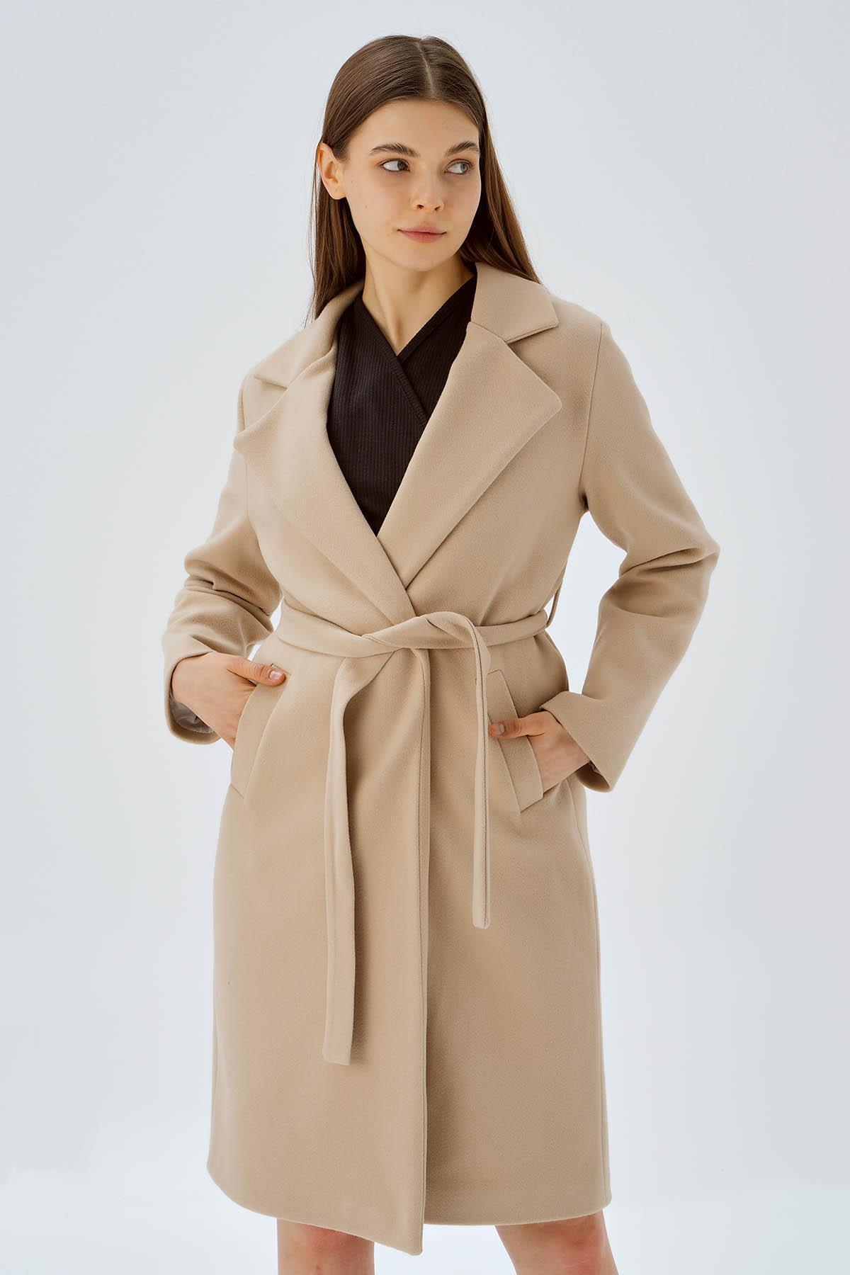 7218A Belden Bağlamalı Kaşe Kaban Vizon