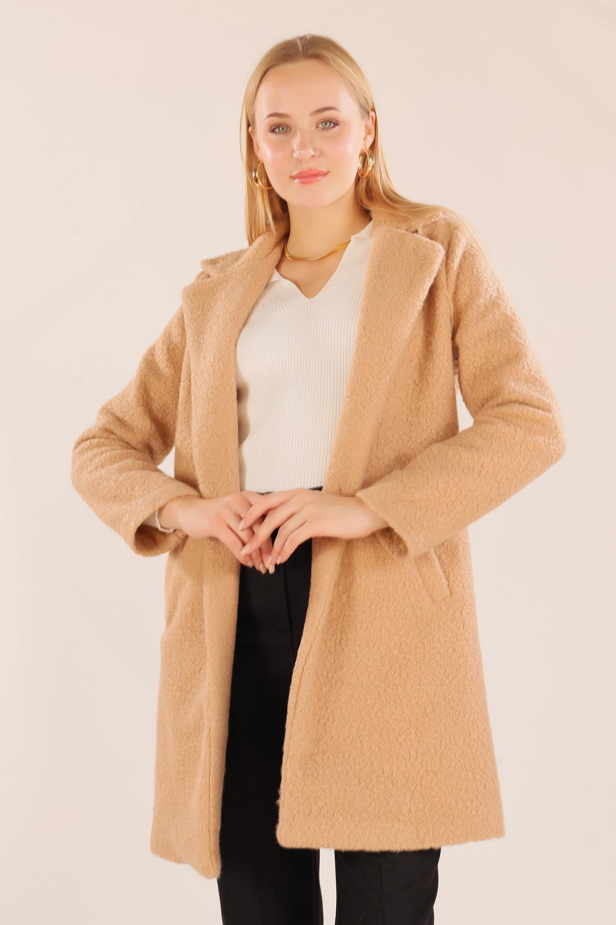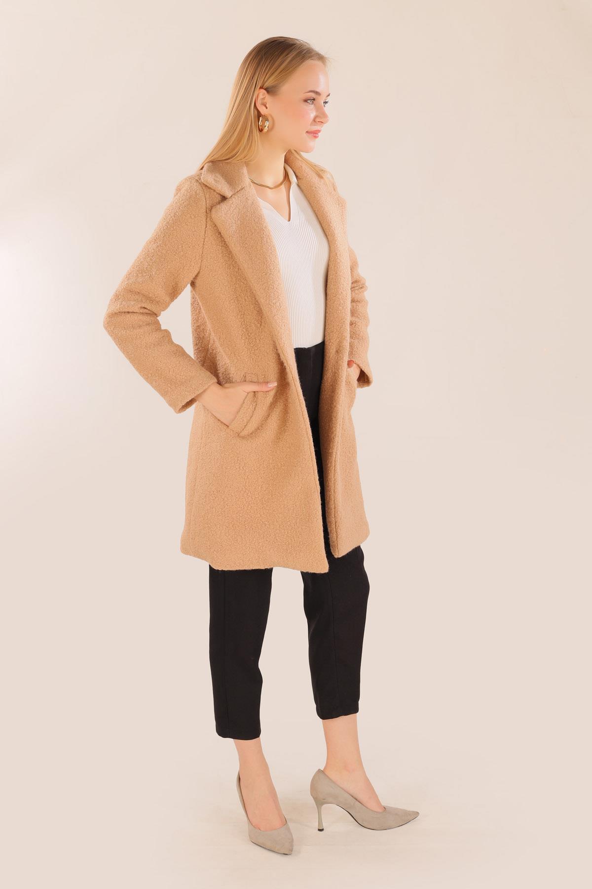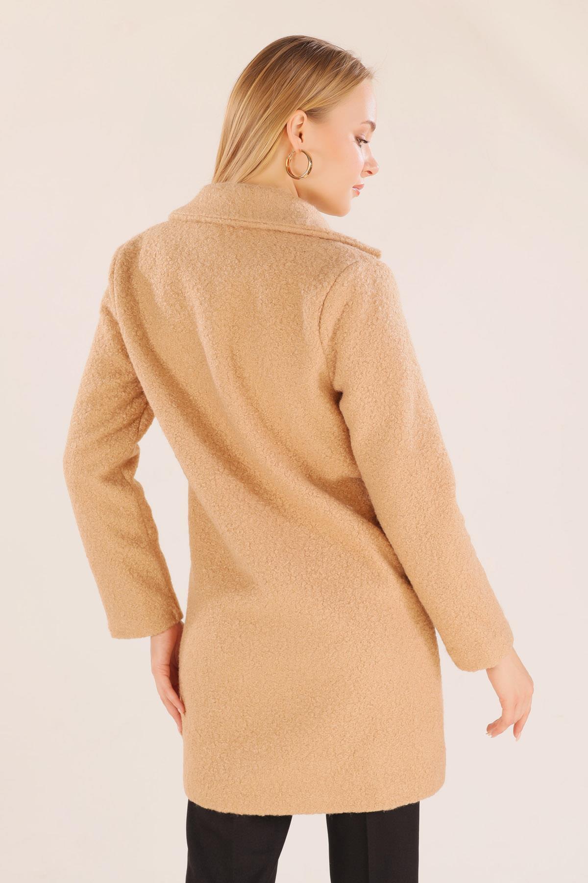 Camel Büyük Cepli Geniş Yakalı Kadın Kaban 3102A