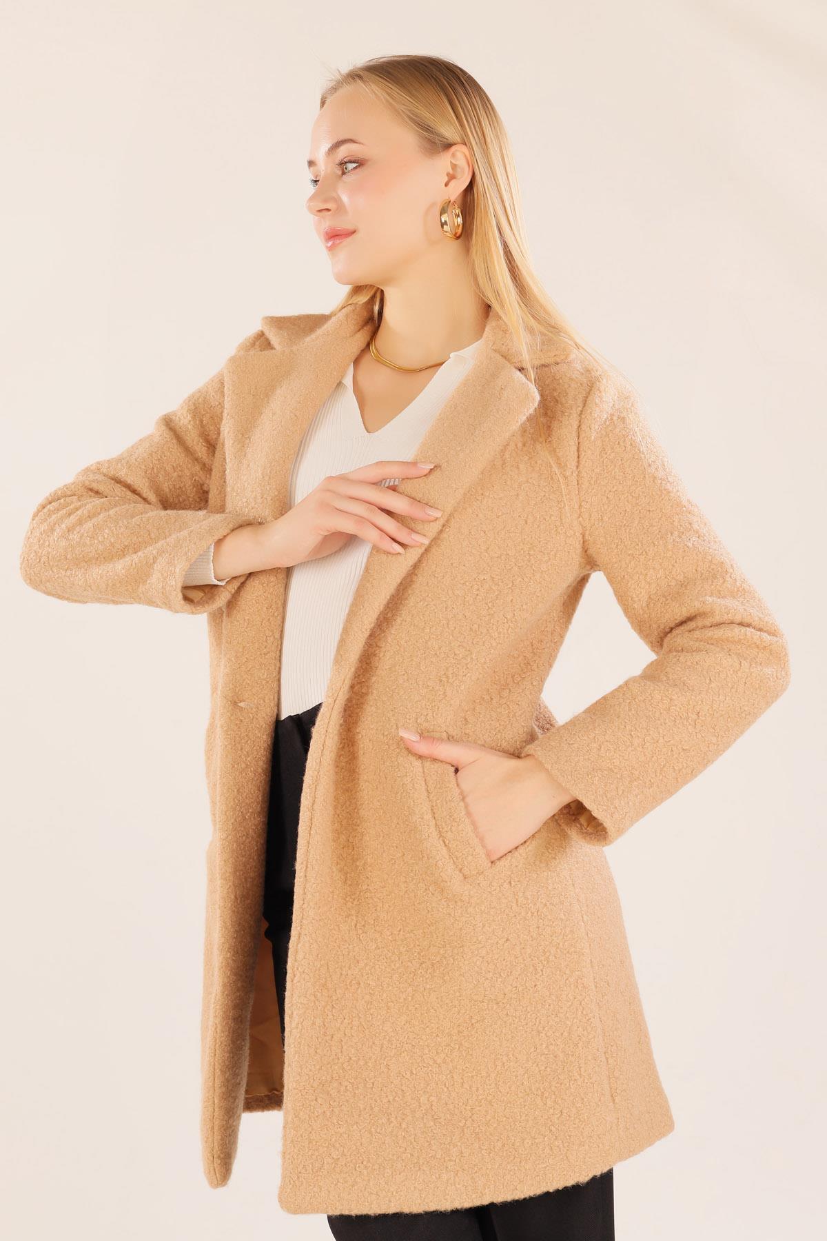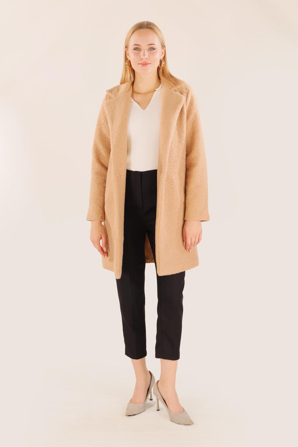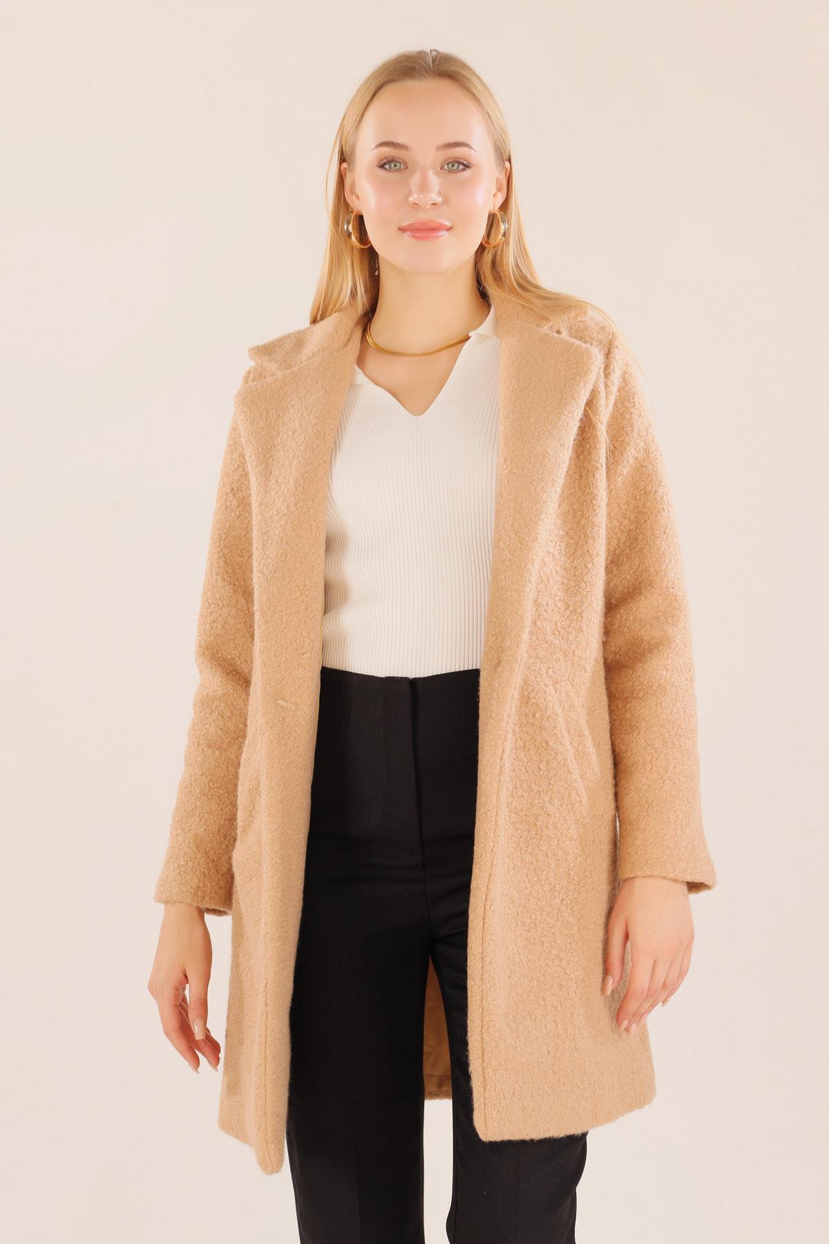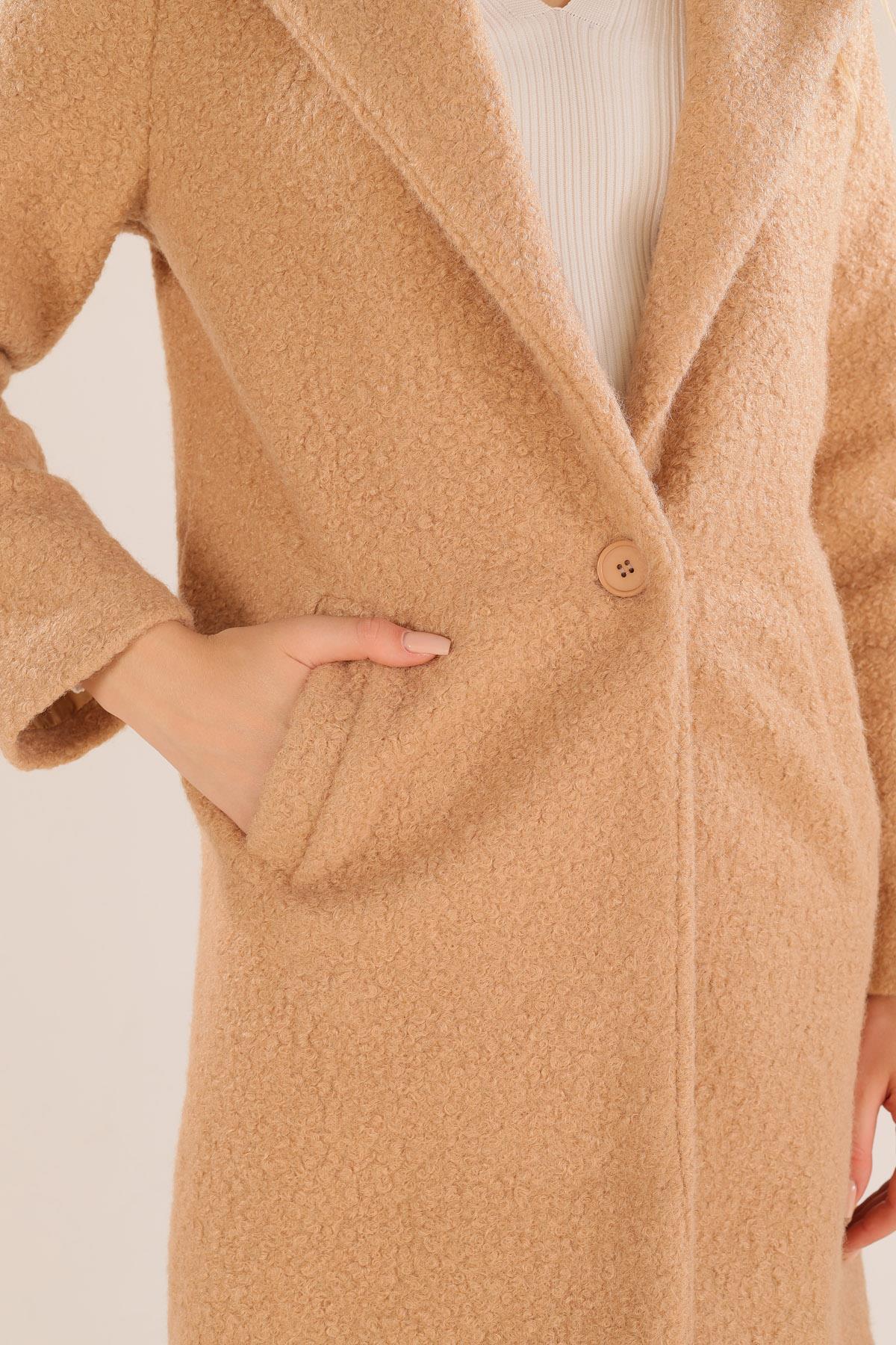 Camel Büyük Cepli Geniş Yakalı Kadın Kaban 3102A
