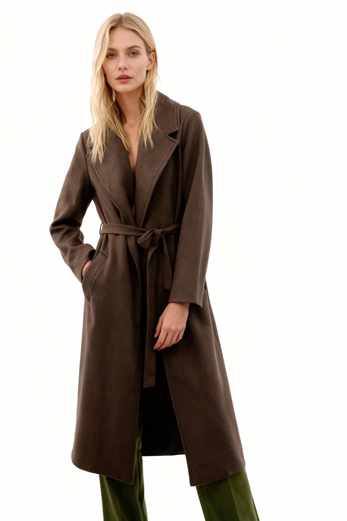 7242A Bel Bağlamalı Uzun Astarlı Kaban Acı Kahve
