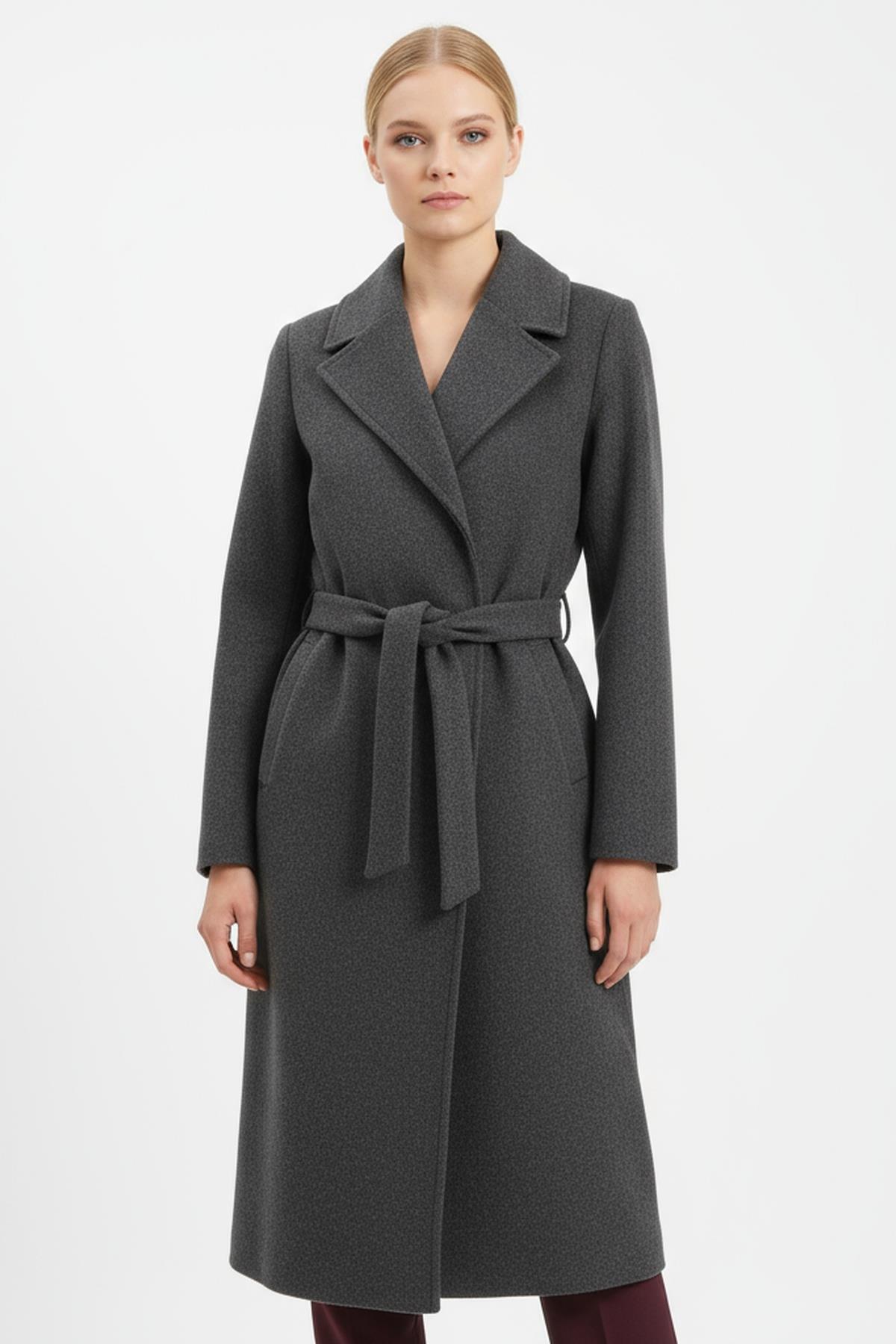 7242A Bel Bağlamalı Uzun Astarlı Kaban Gri