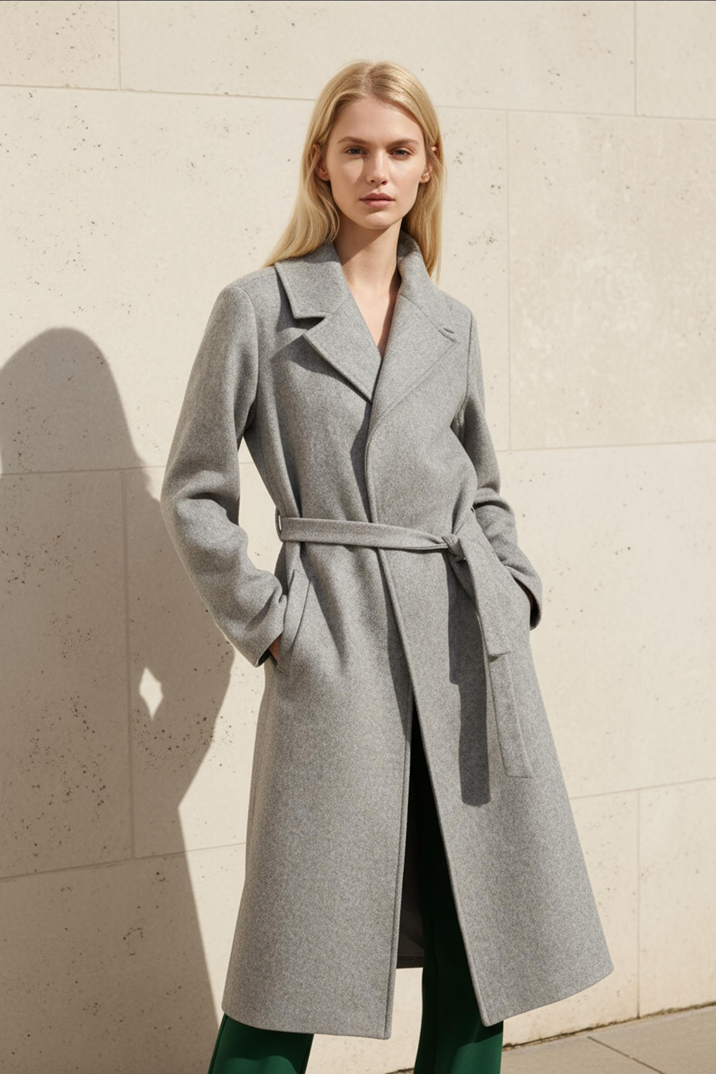 7242A Bel Bağlamalı Uzun Astarlı Kaban Gri