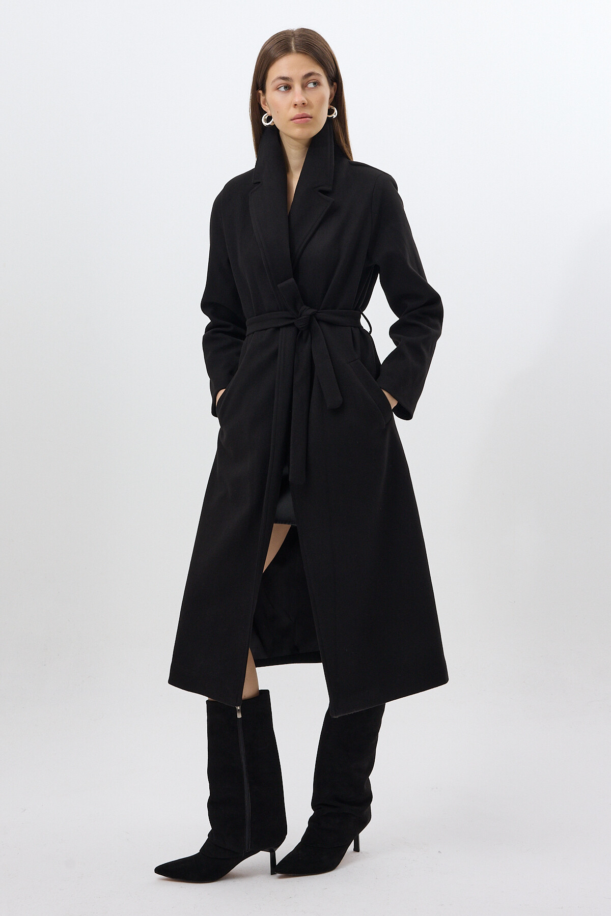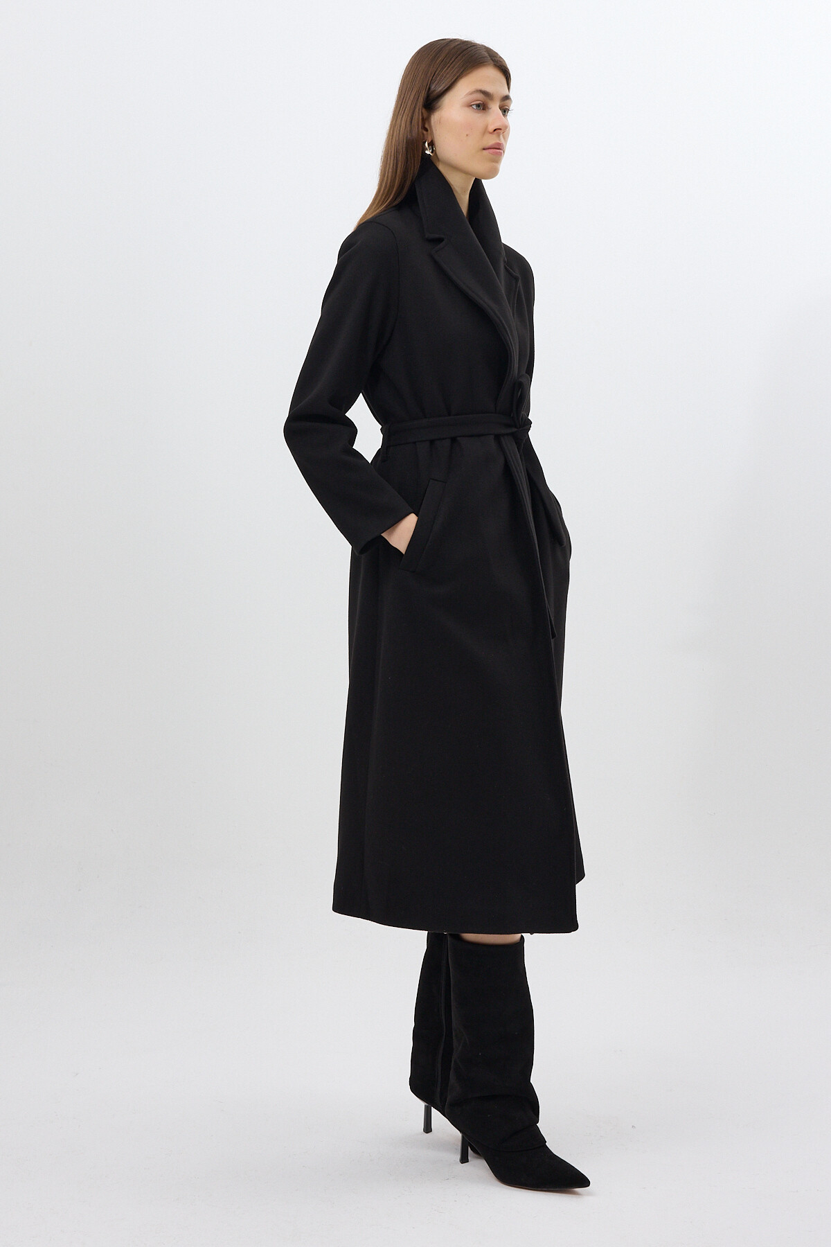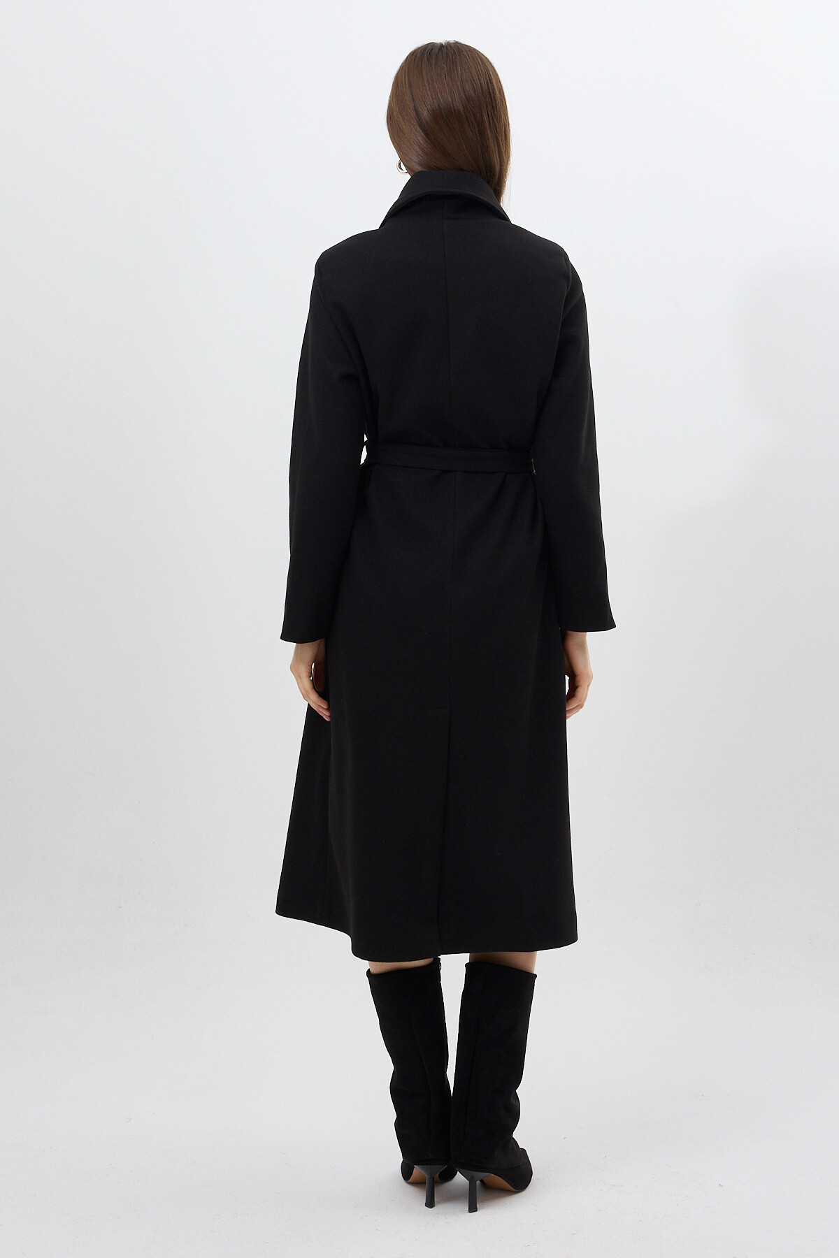 Siyah Kuşaklı Uzun Astarlı Kadın Kaban 7242A