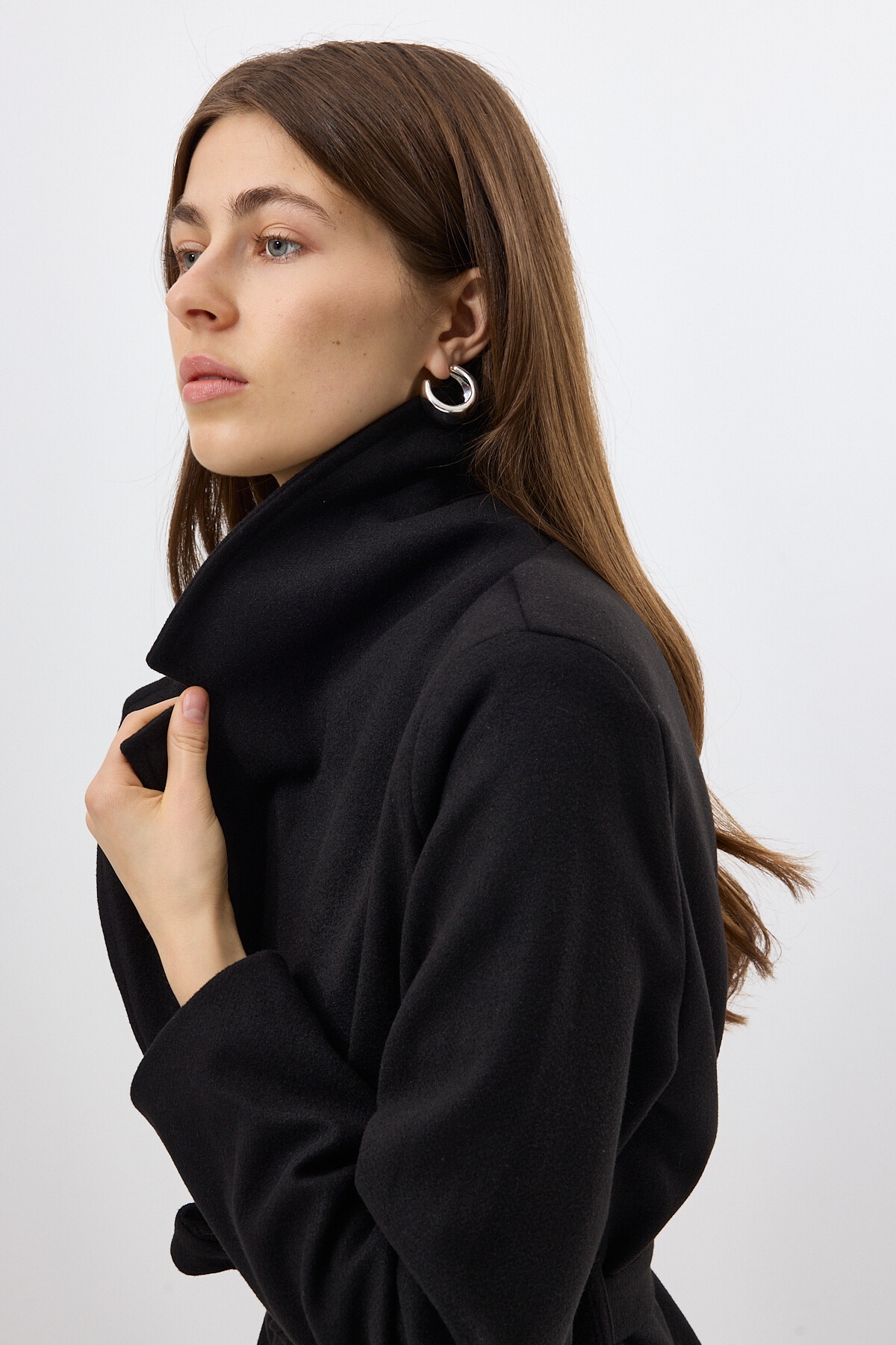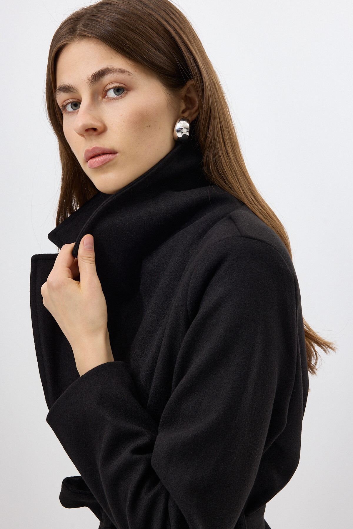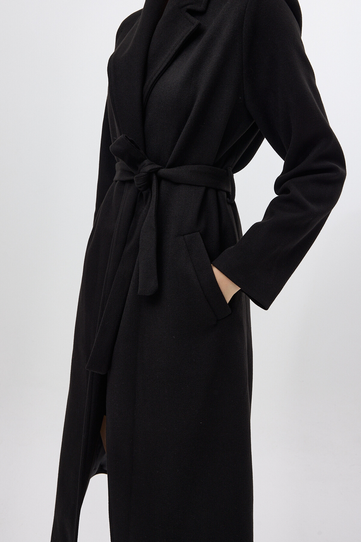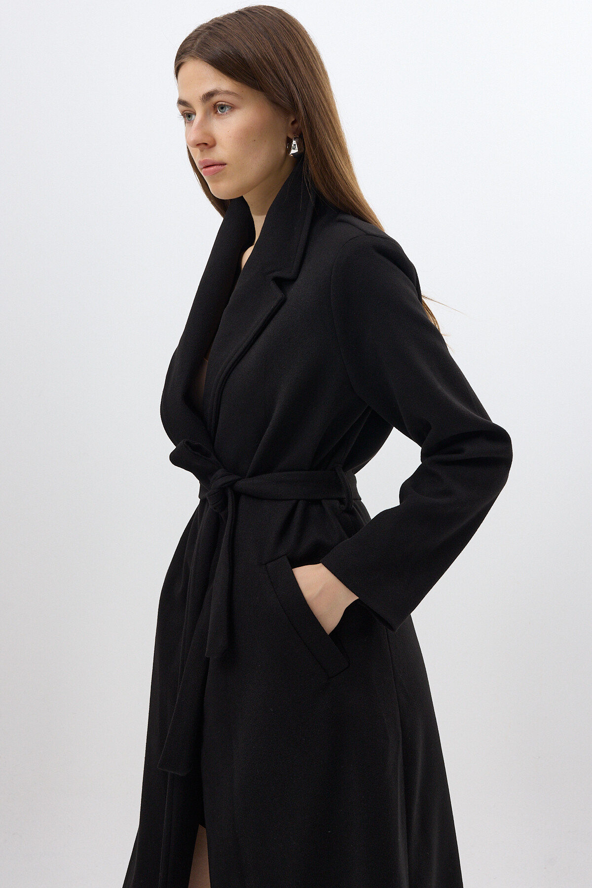 Siyah Kuşaklı Uzun Astarlı Kadın Kaban 7242A