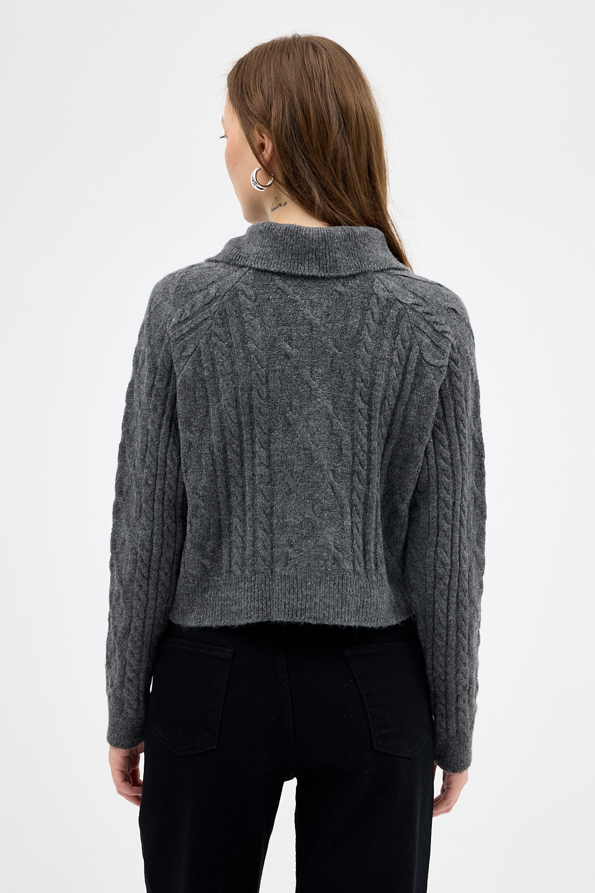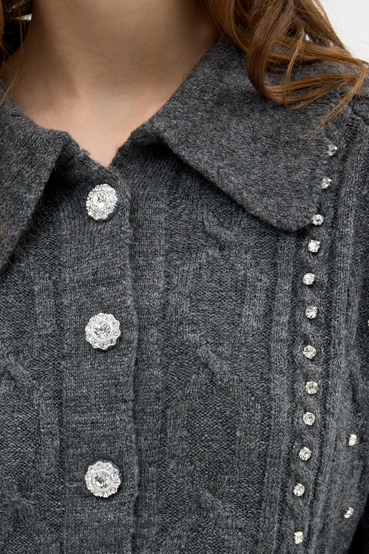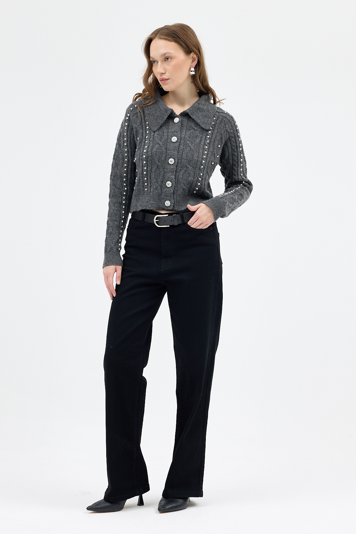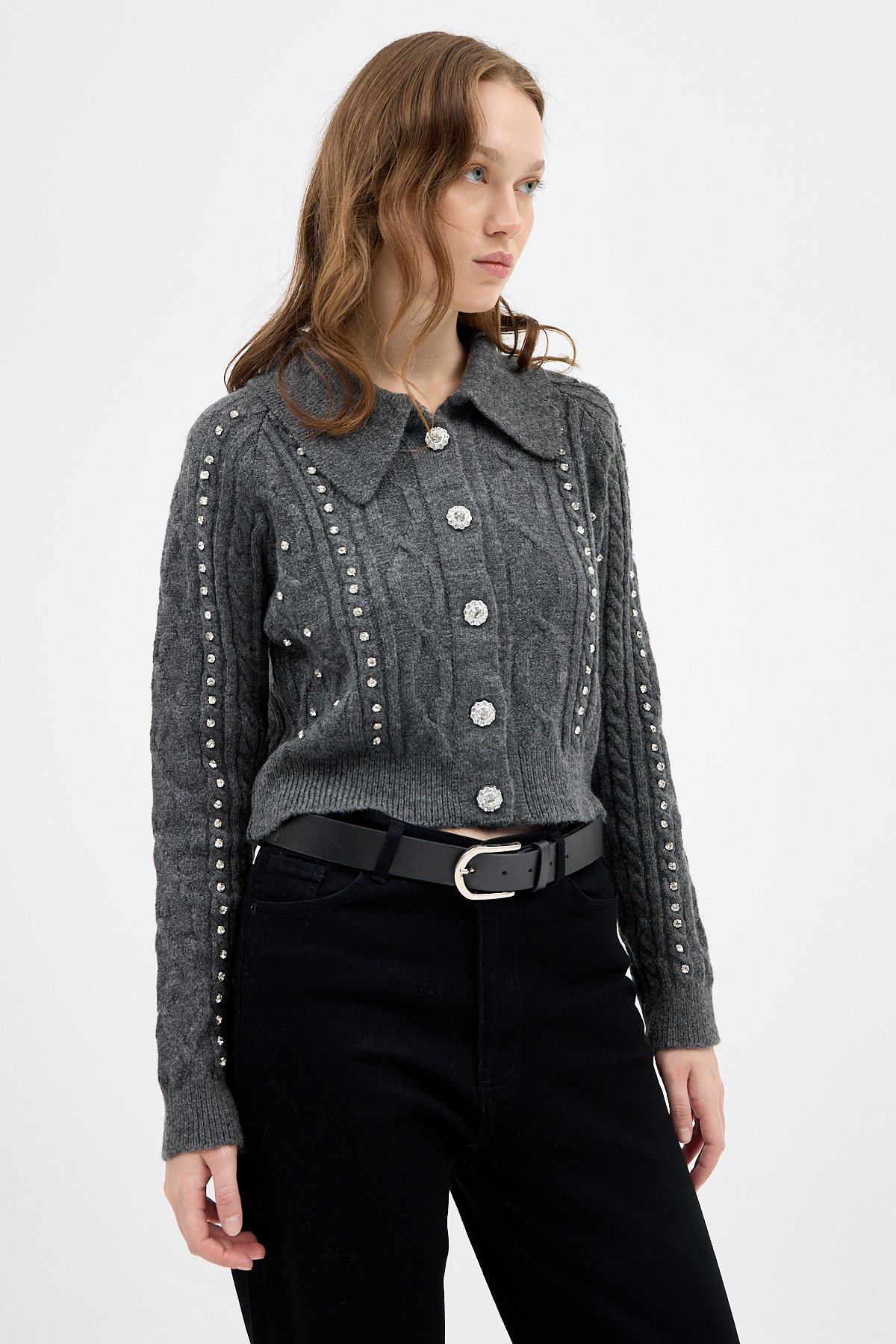 Antrasit Kadın Taş İşlemeli Örgü Hırka 7265