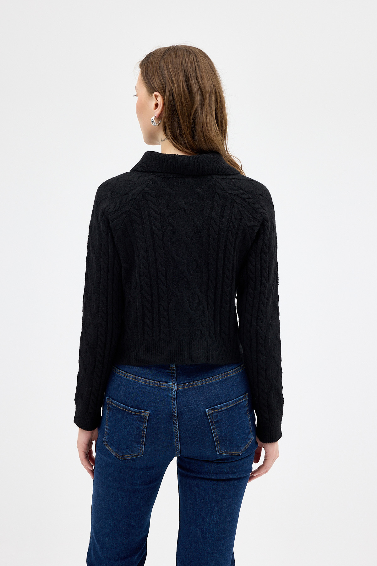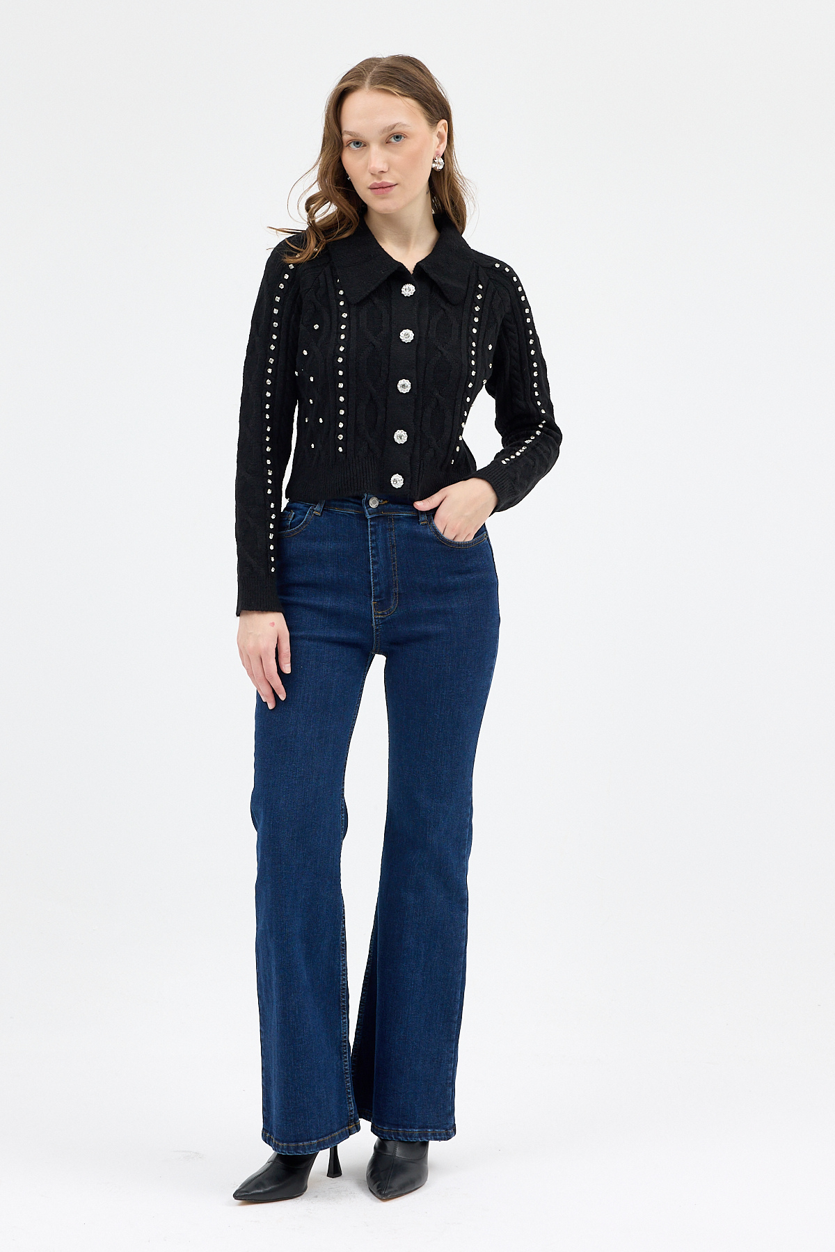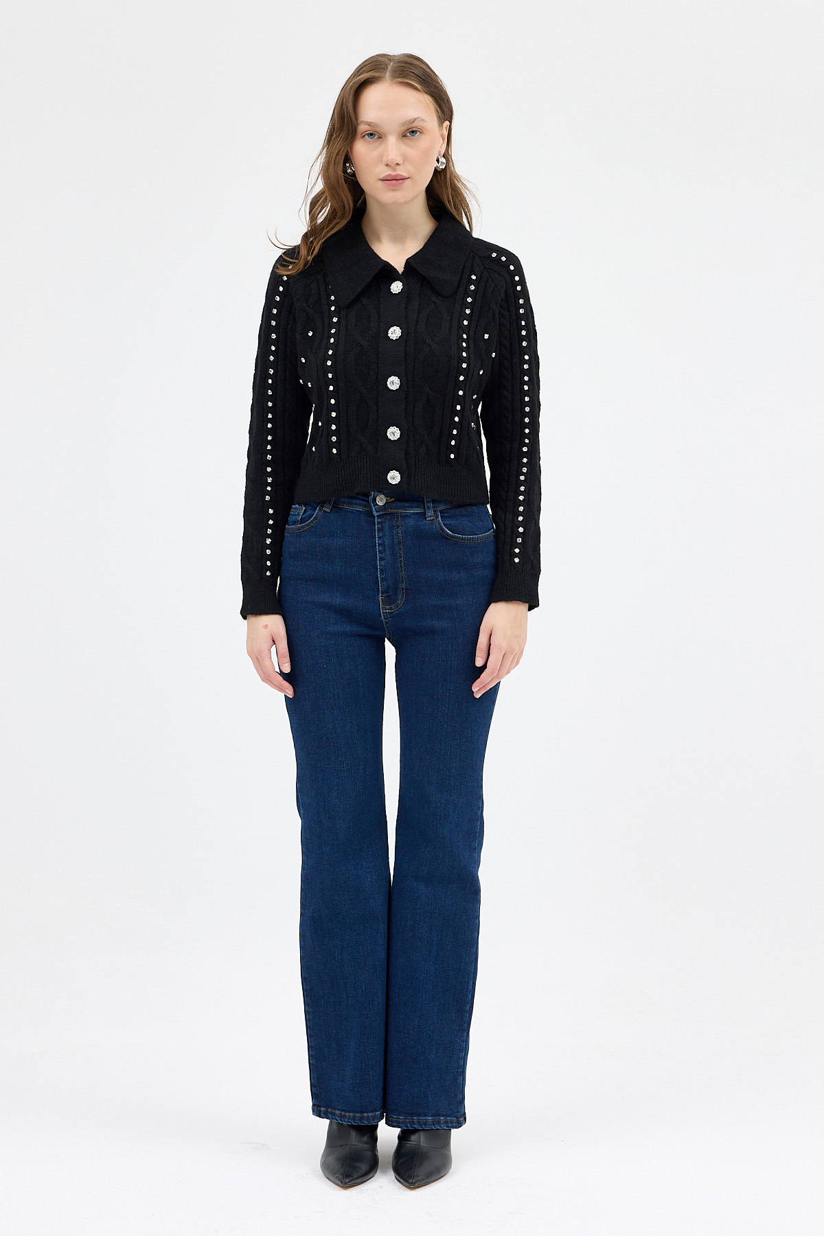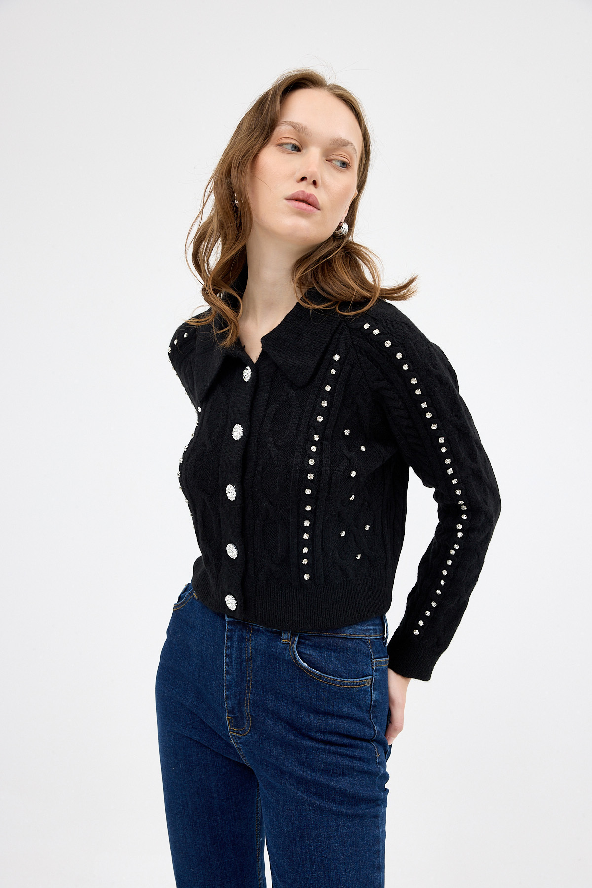 Siyah Kadın Taş İşlemeli Örgü Hırka 7265