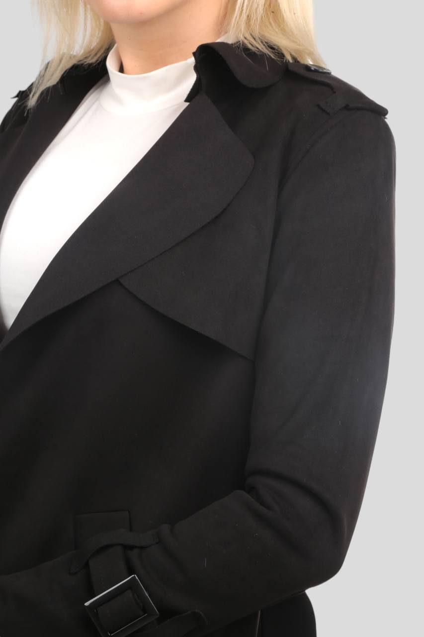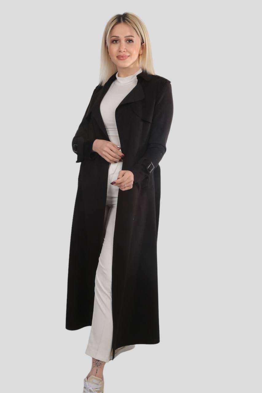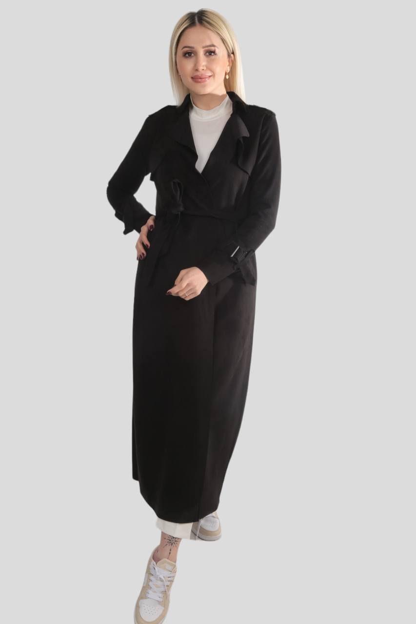 Siyah Uzun Süet Trençkot 7265A