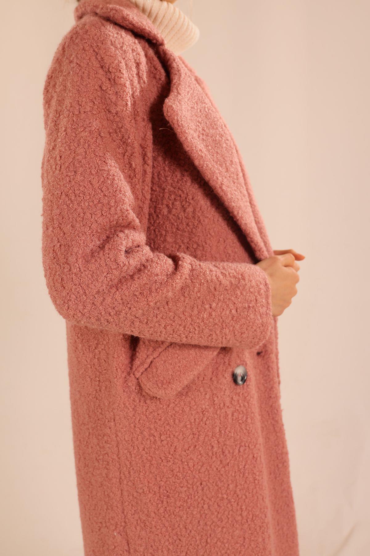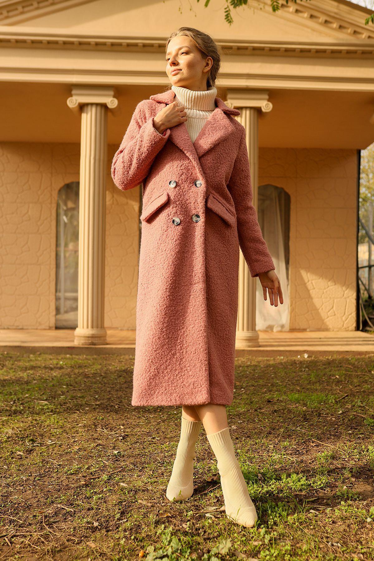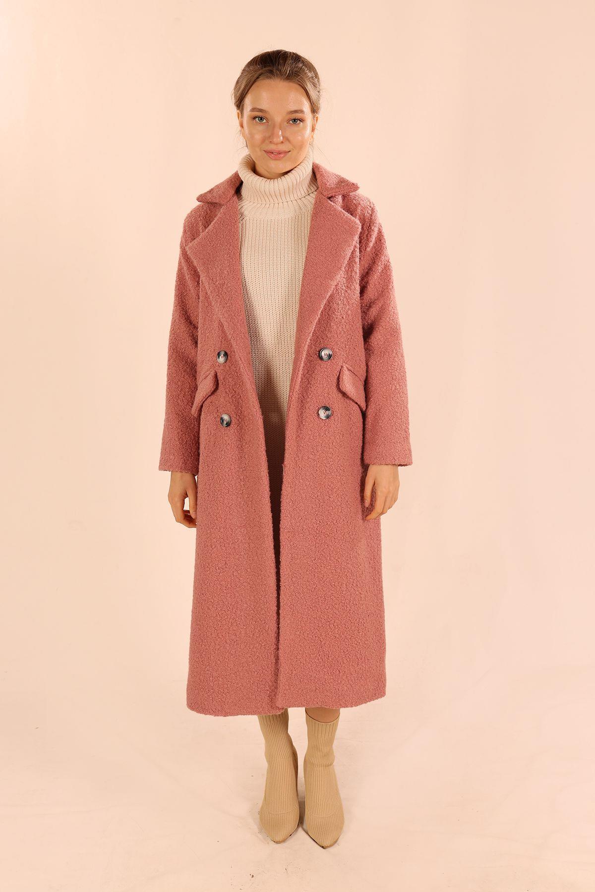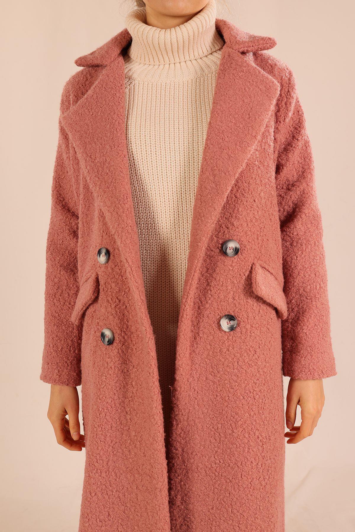 Gül Kurusu Çift Düğme Cep Kapaklı Buklet Kaban 7266A