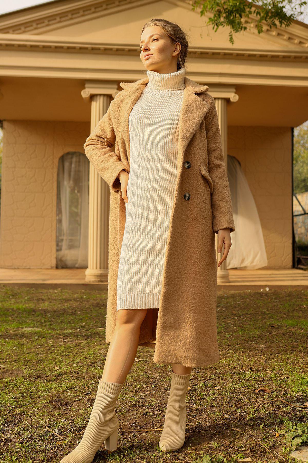Vizon Çift Düğme Cep Kapaklı Buklet Kaban 7266A