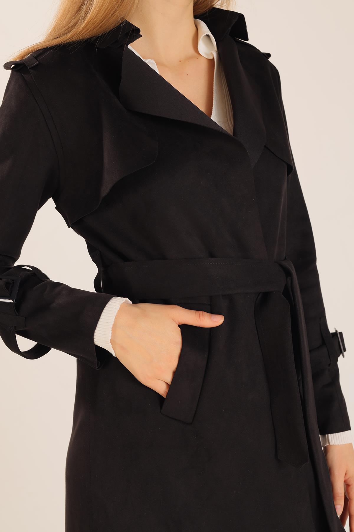 Siyah Ara Boy Trençkot 7275A