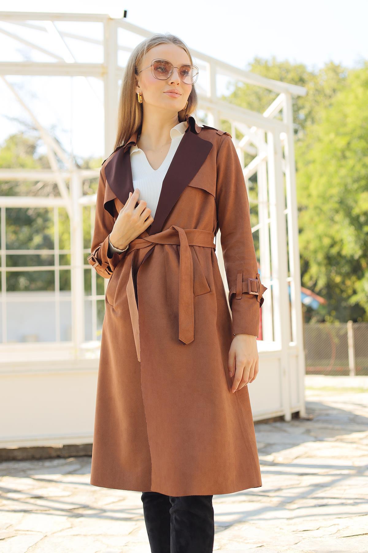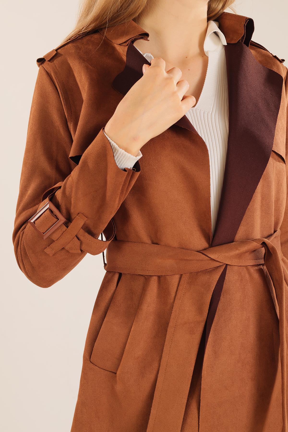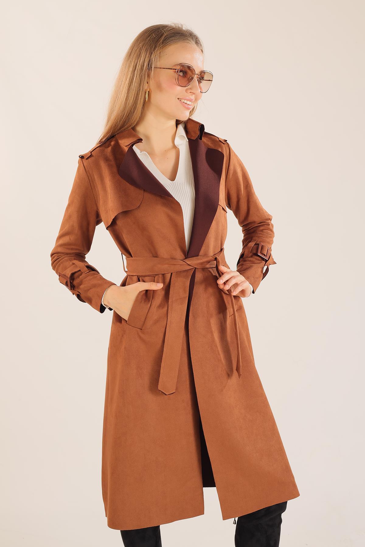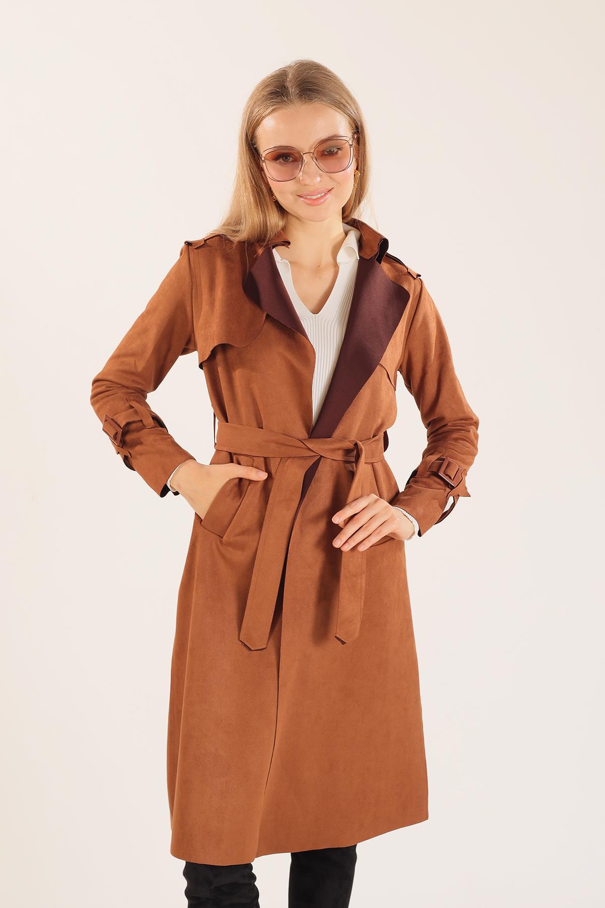 Kahve Kuşaklı Kol Lastikli Trençkot 4579A