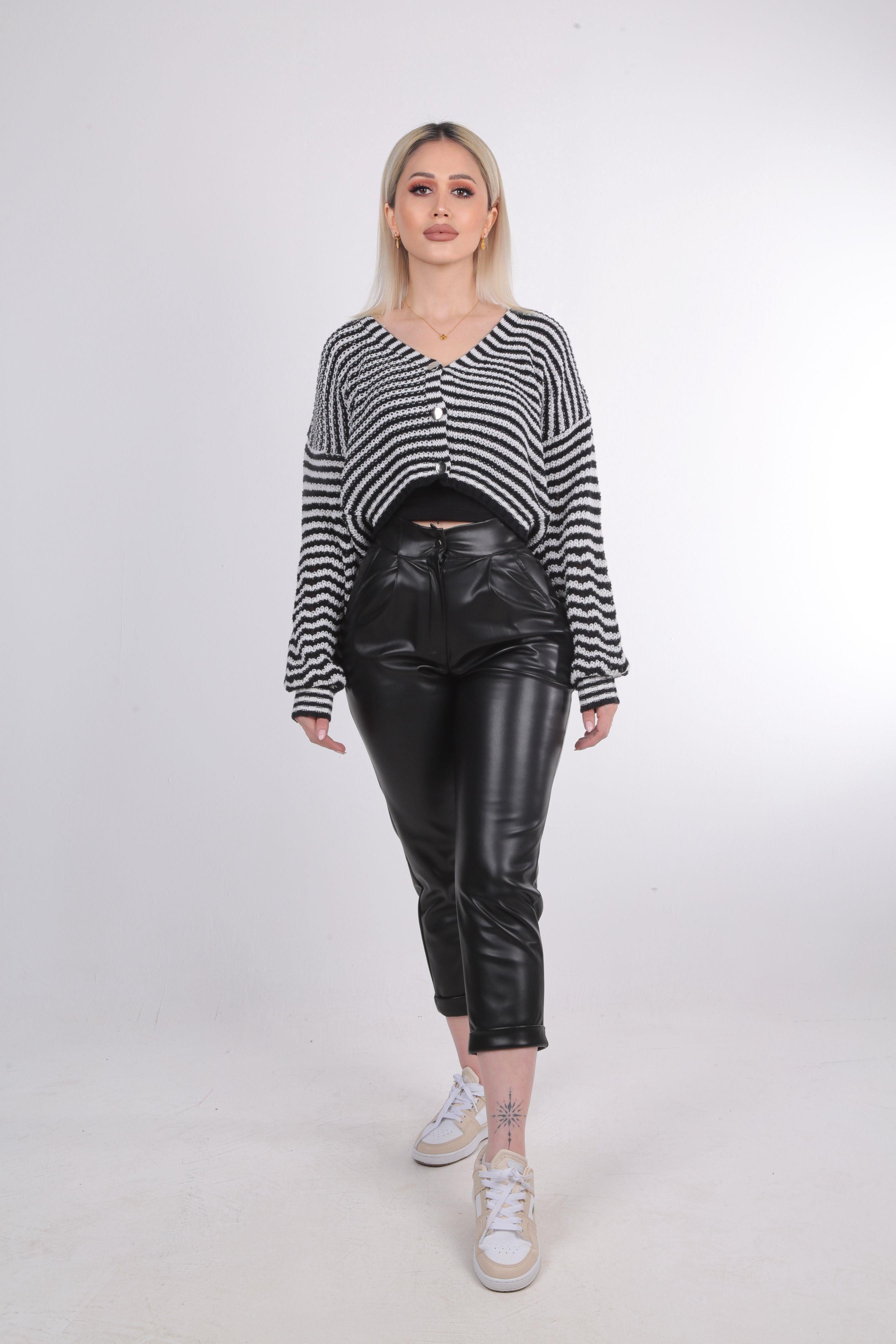 Siyah Pile Detay Deri Pantolon 7276A