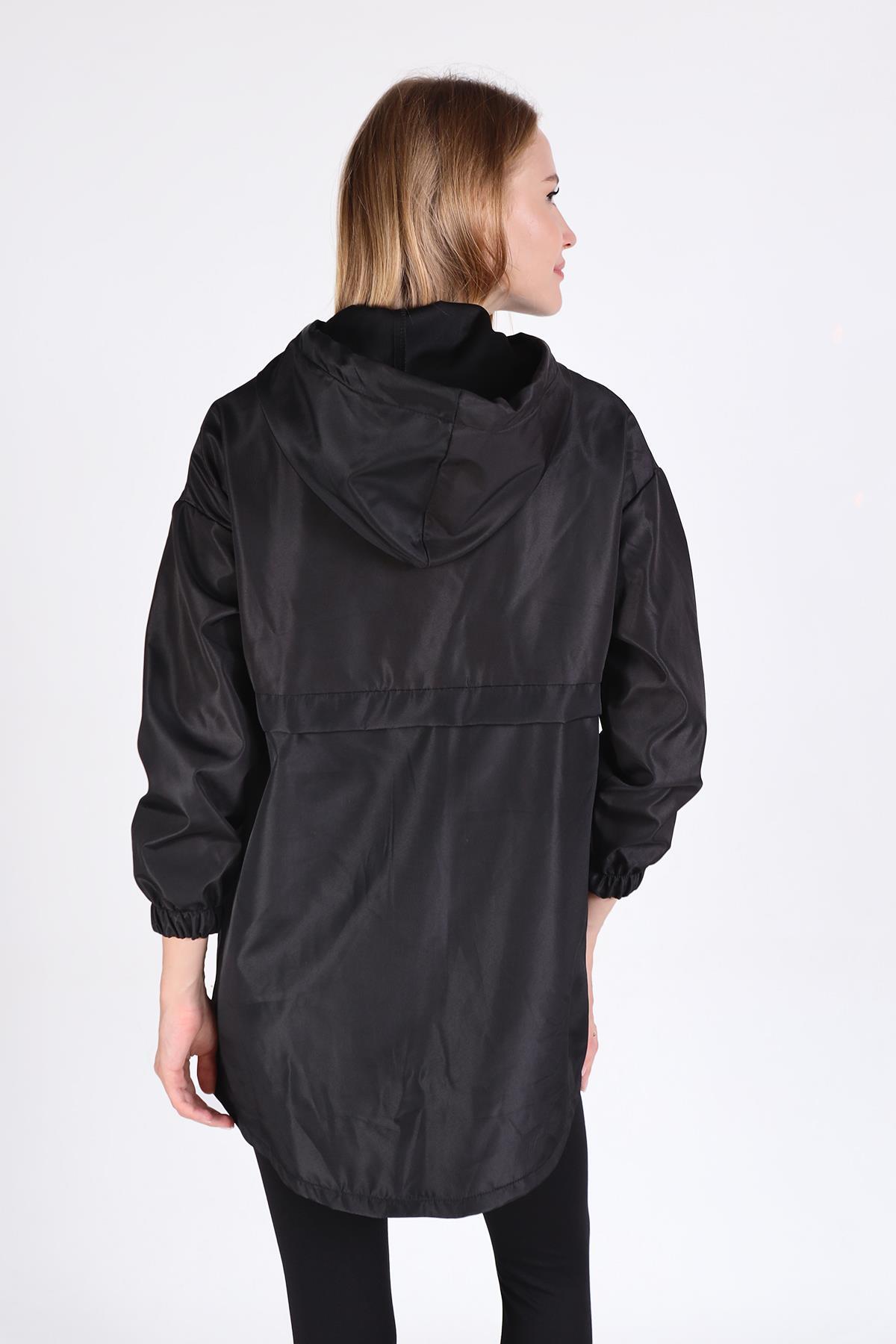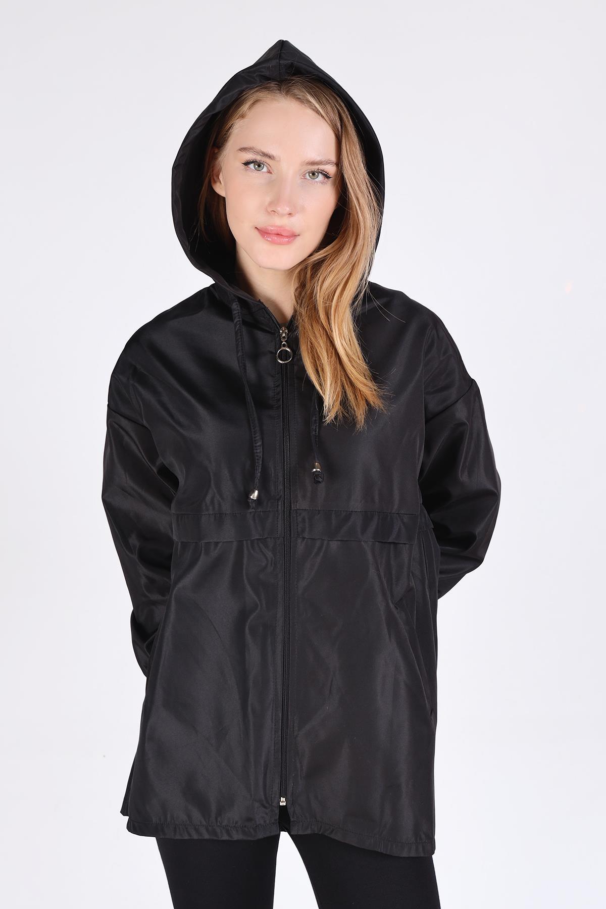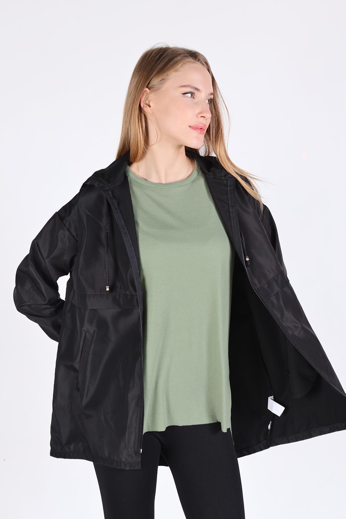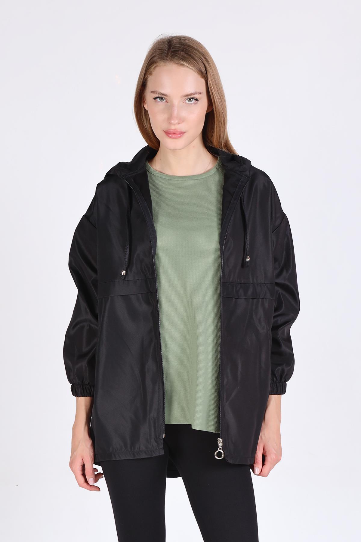 7312A Kapüşonlu Fermuarlı Kısa Kap Siyah