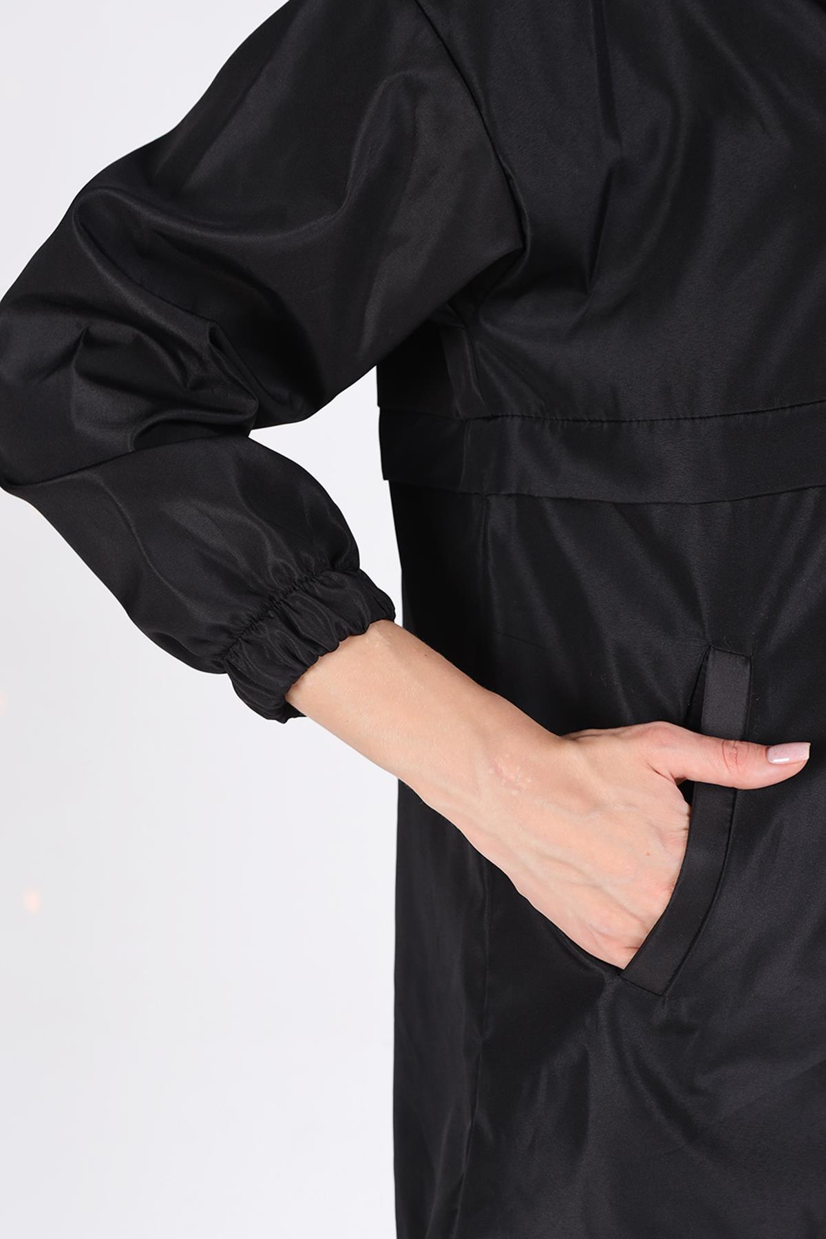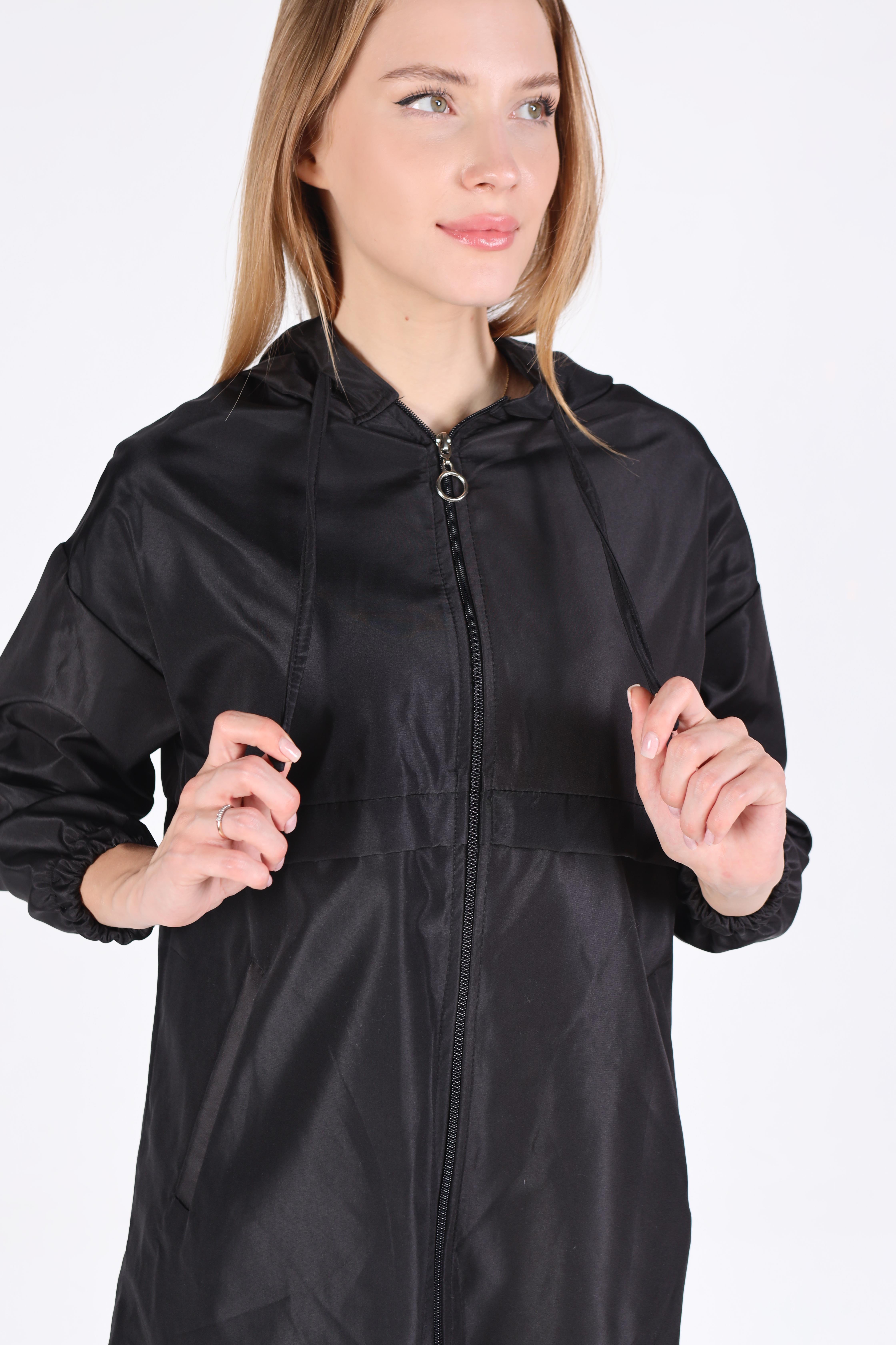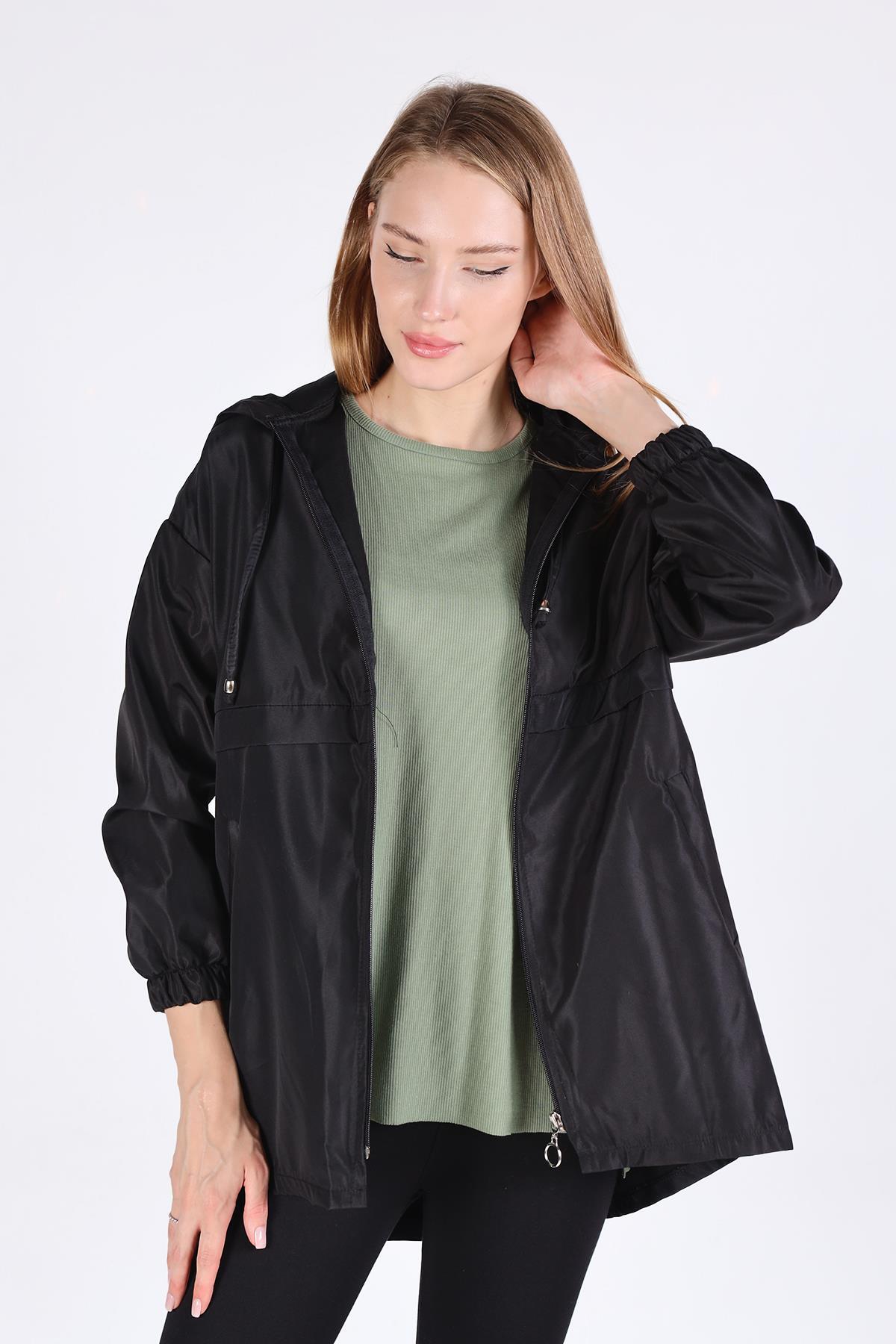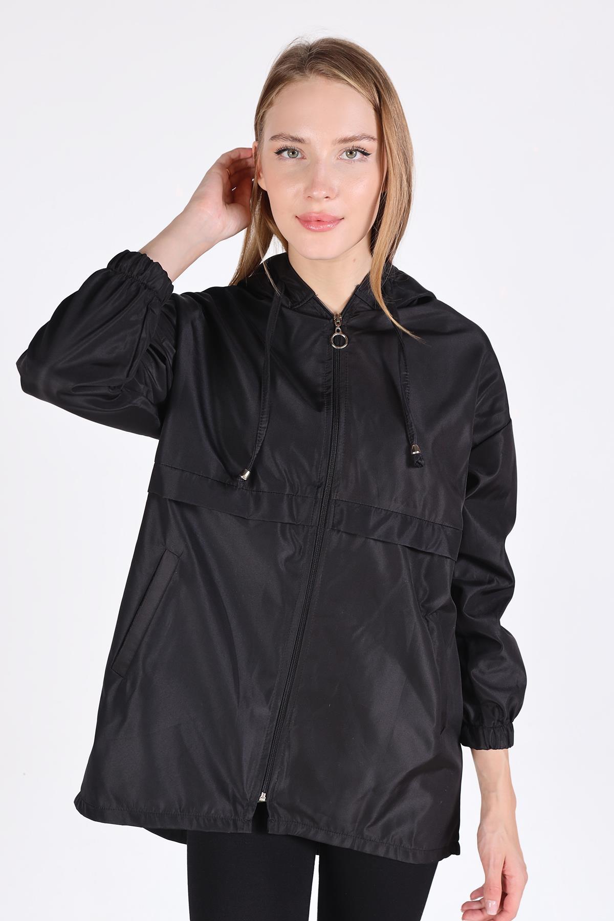 7312A Kapüşonlu Fermuarlı Kısa Kap Siyah