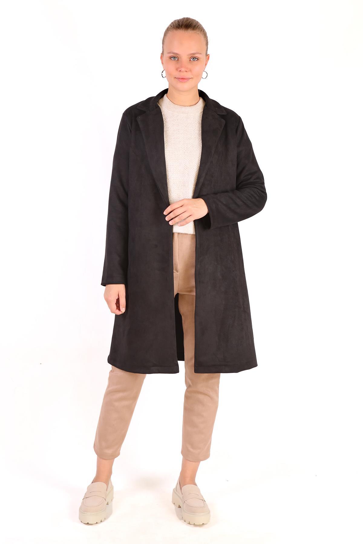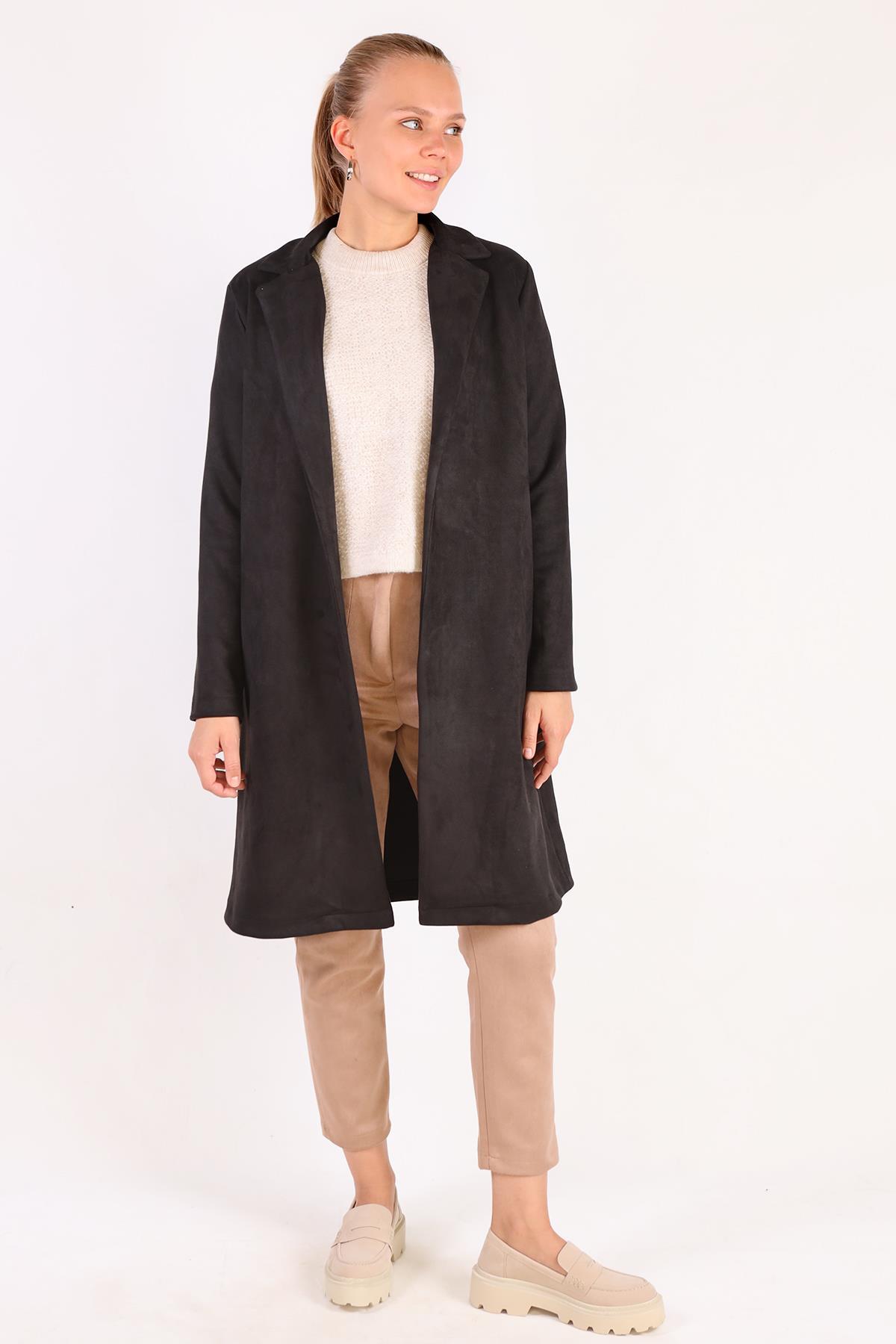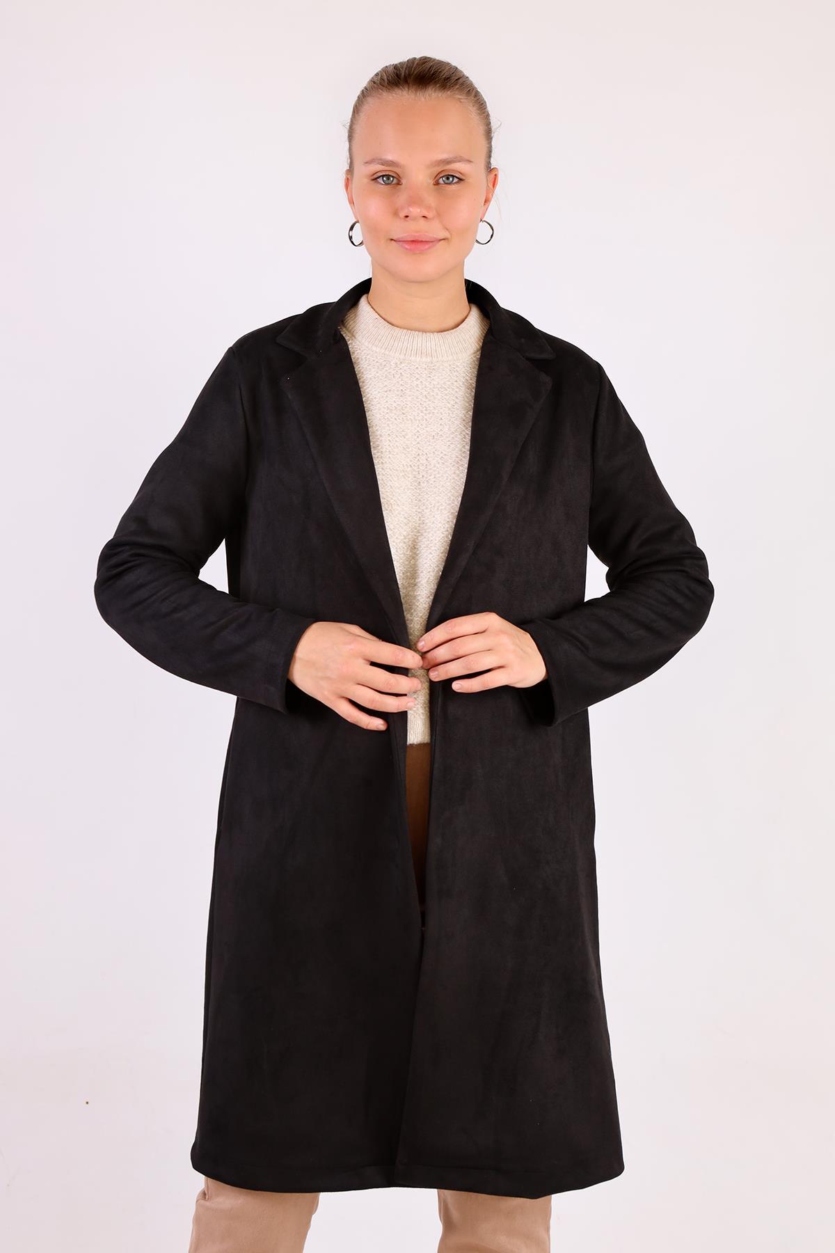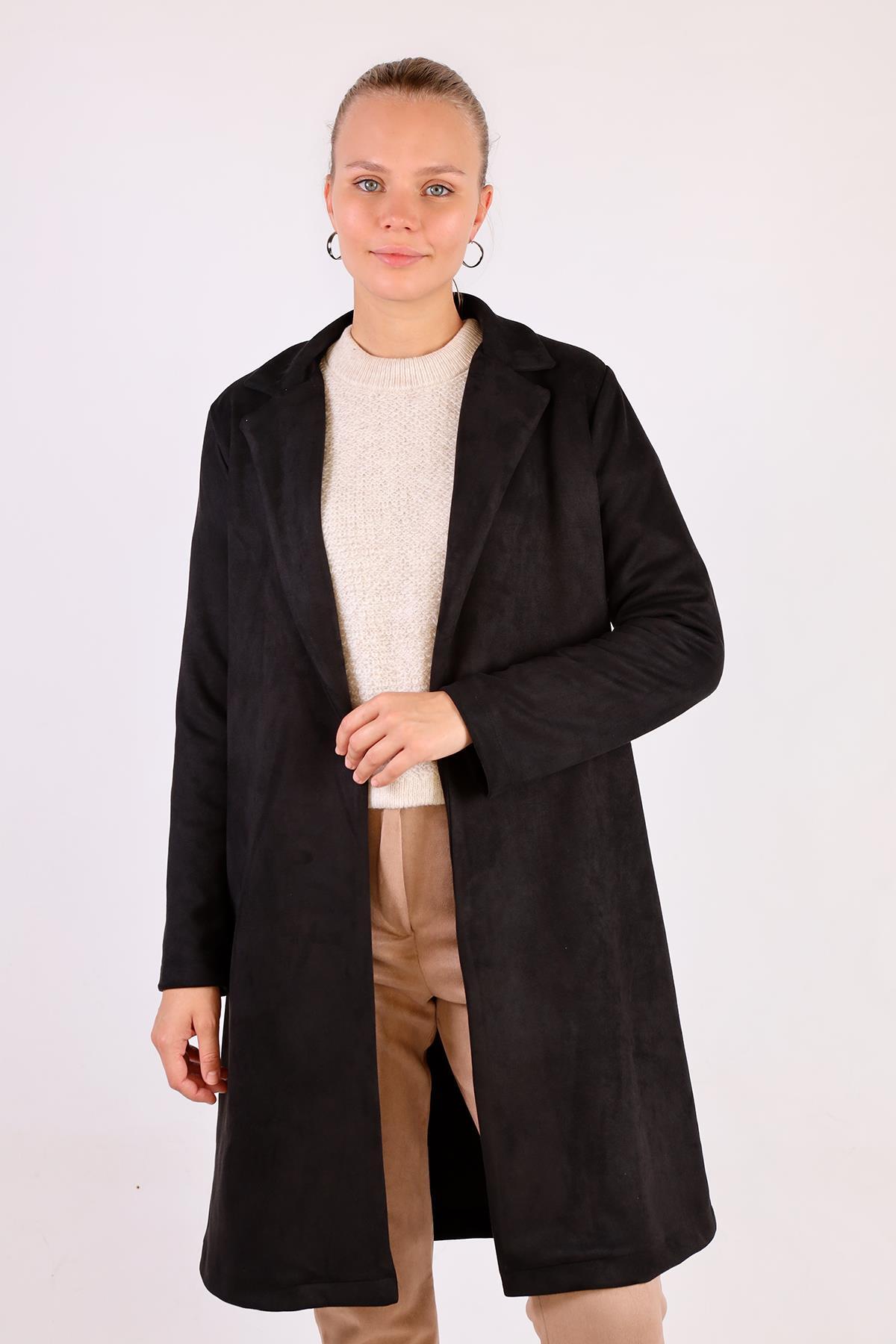 Siyah Klasik Süet Trençkot 7317A