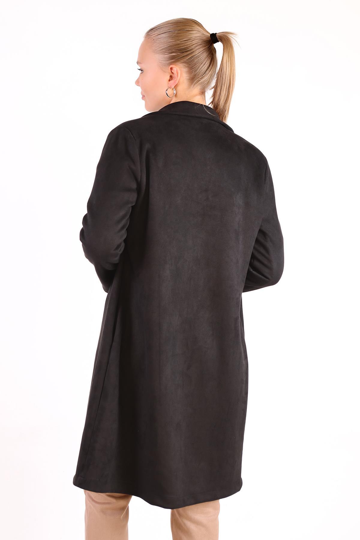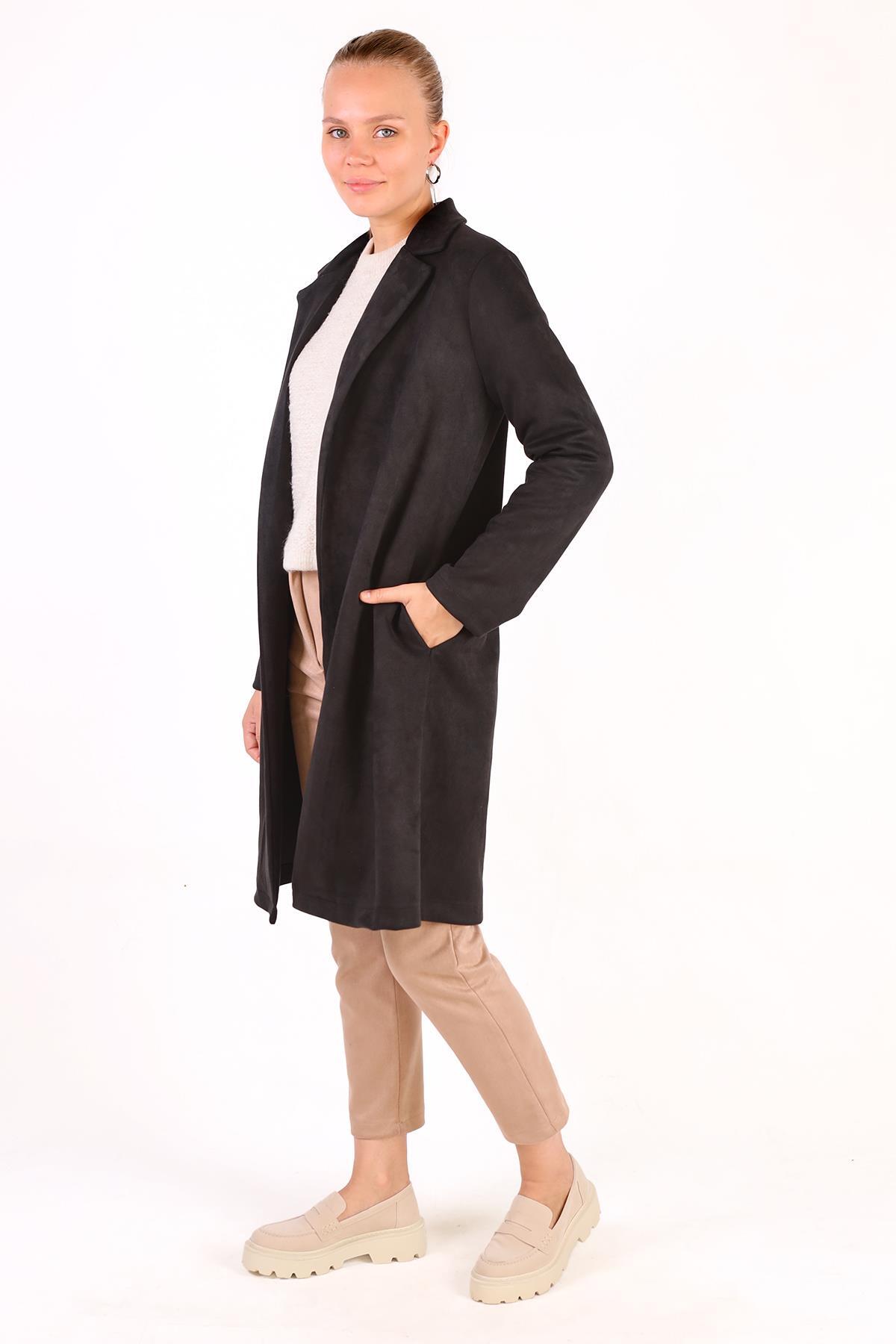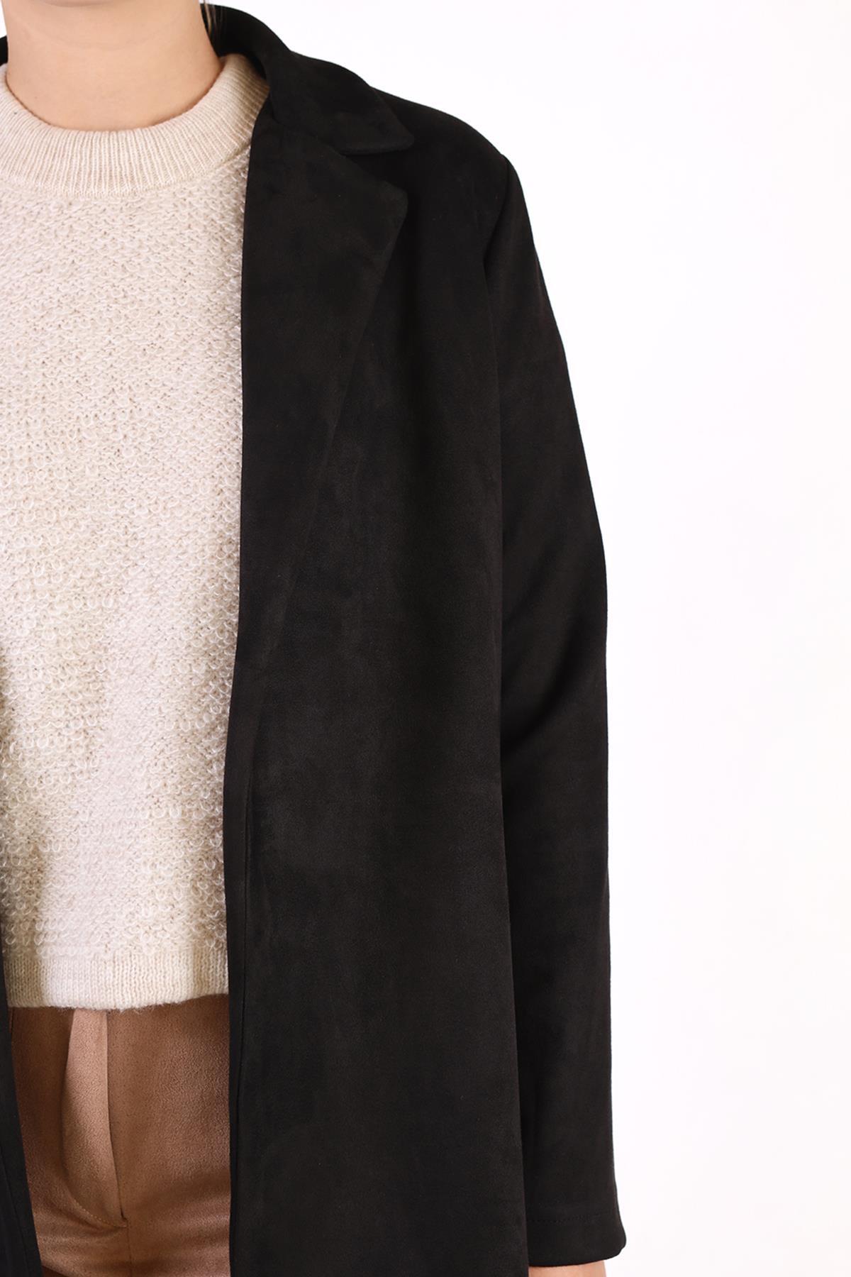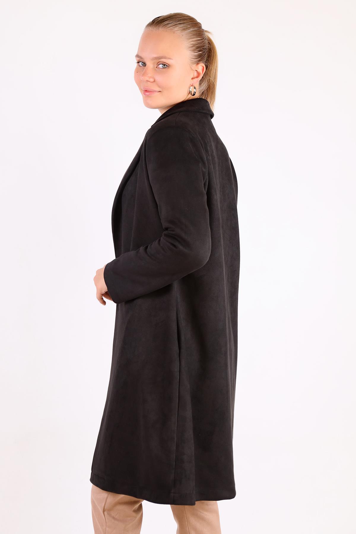 Siyah Klasik Süet Trençkot 7317A
