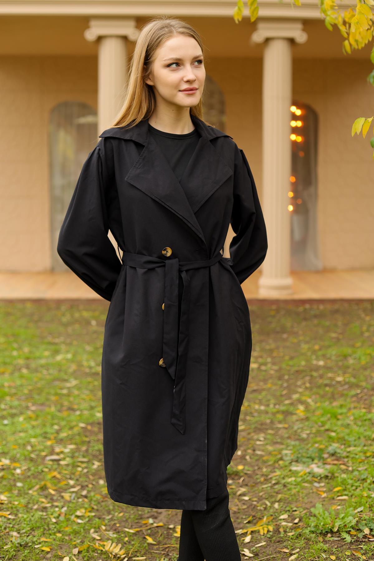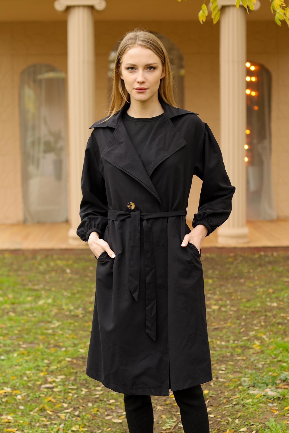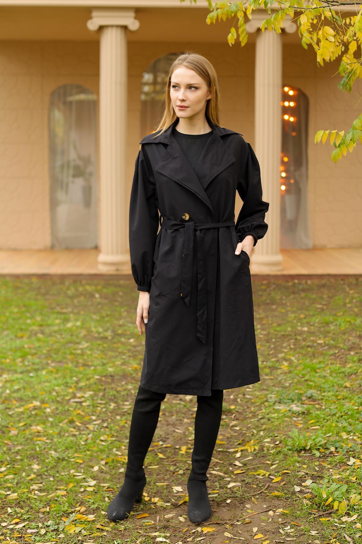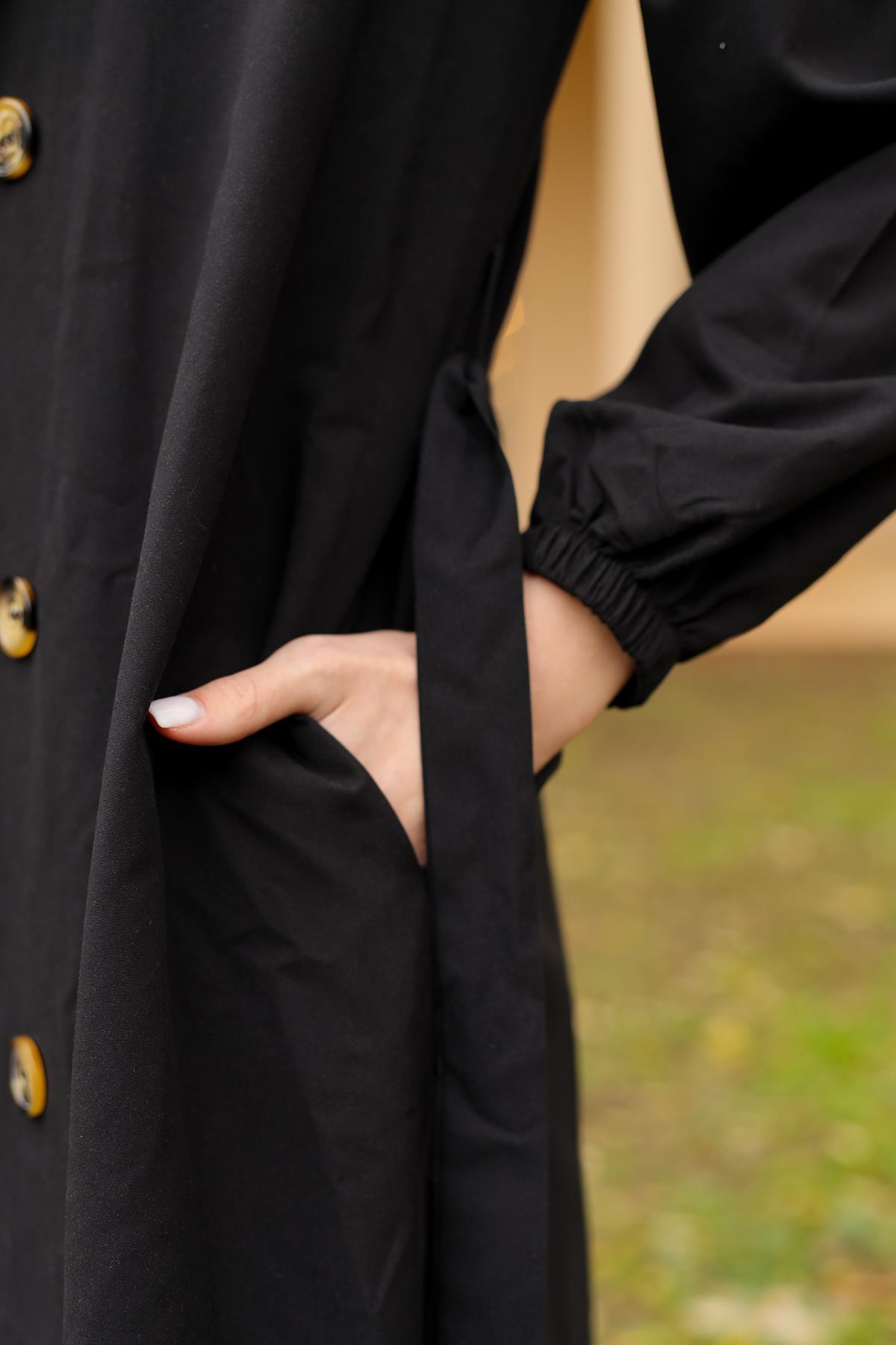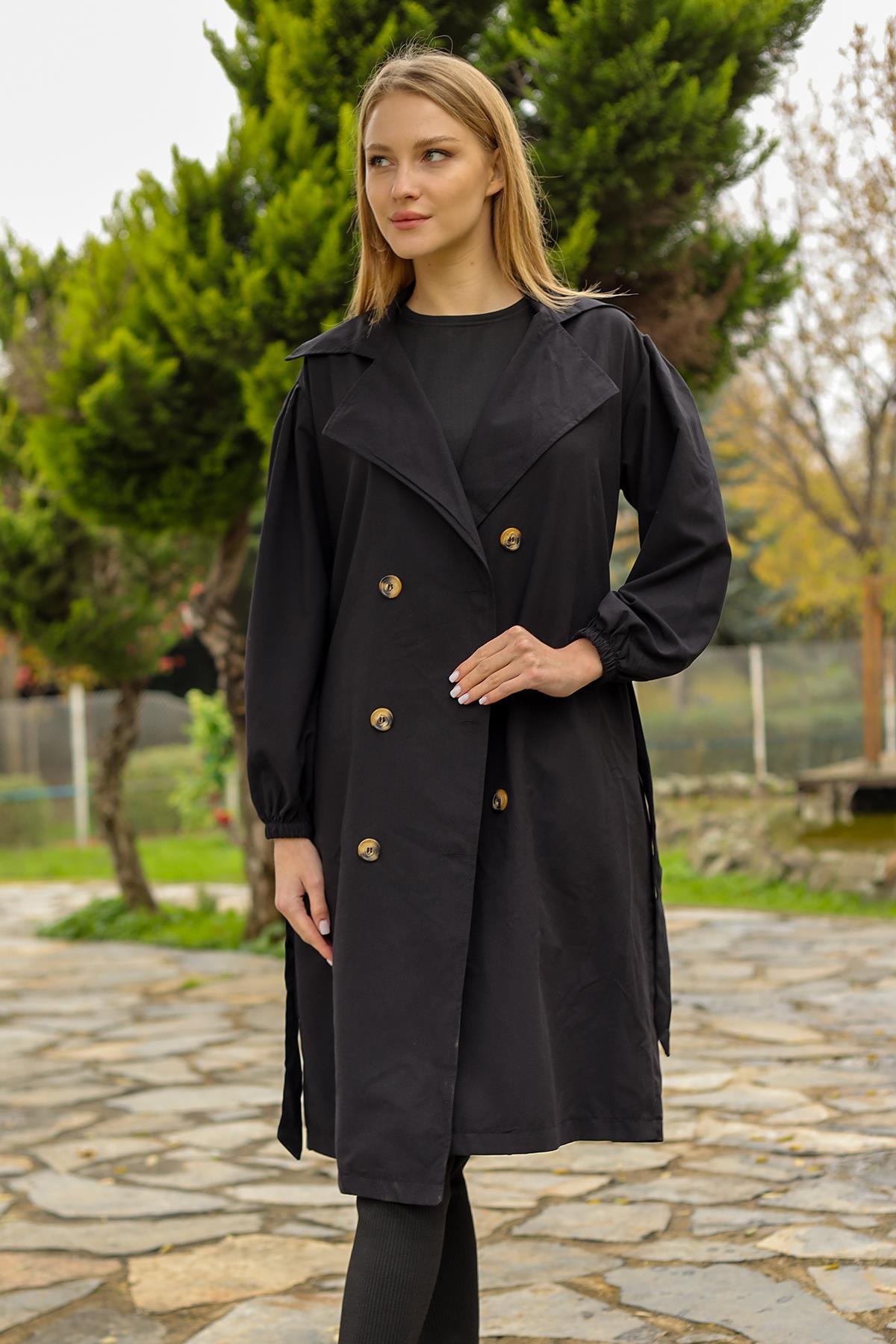 Siyah Balon Kol Düğmeli Trençkot 7319A