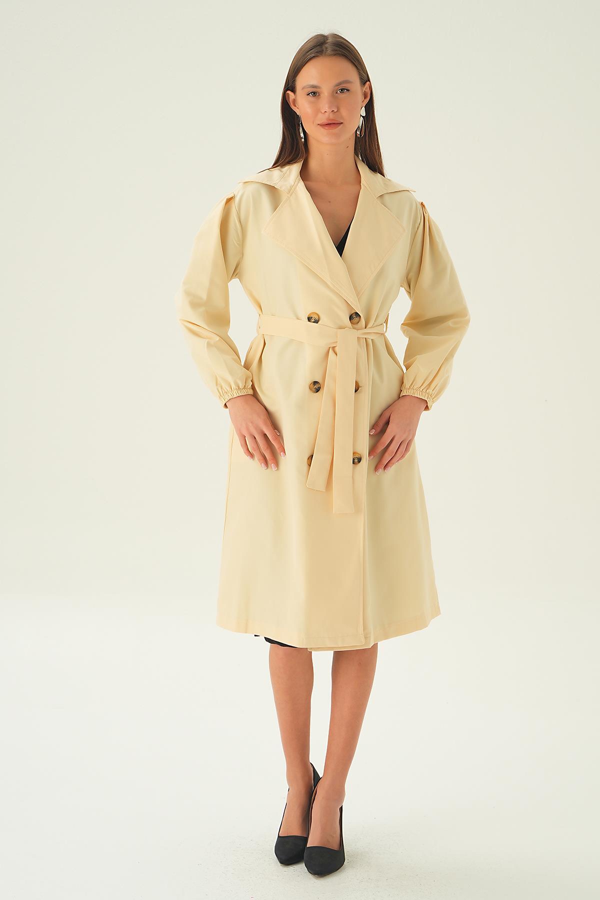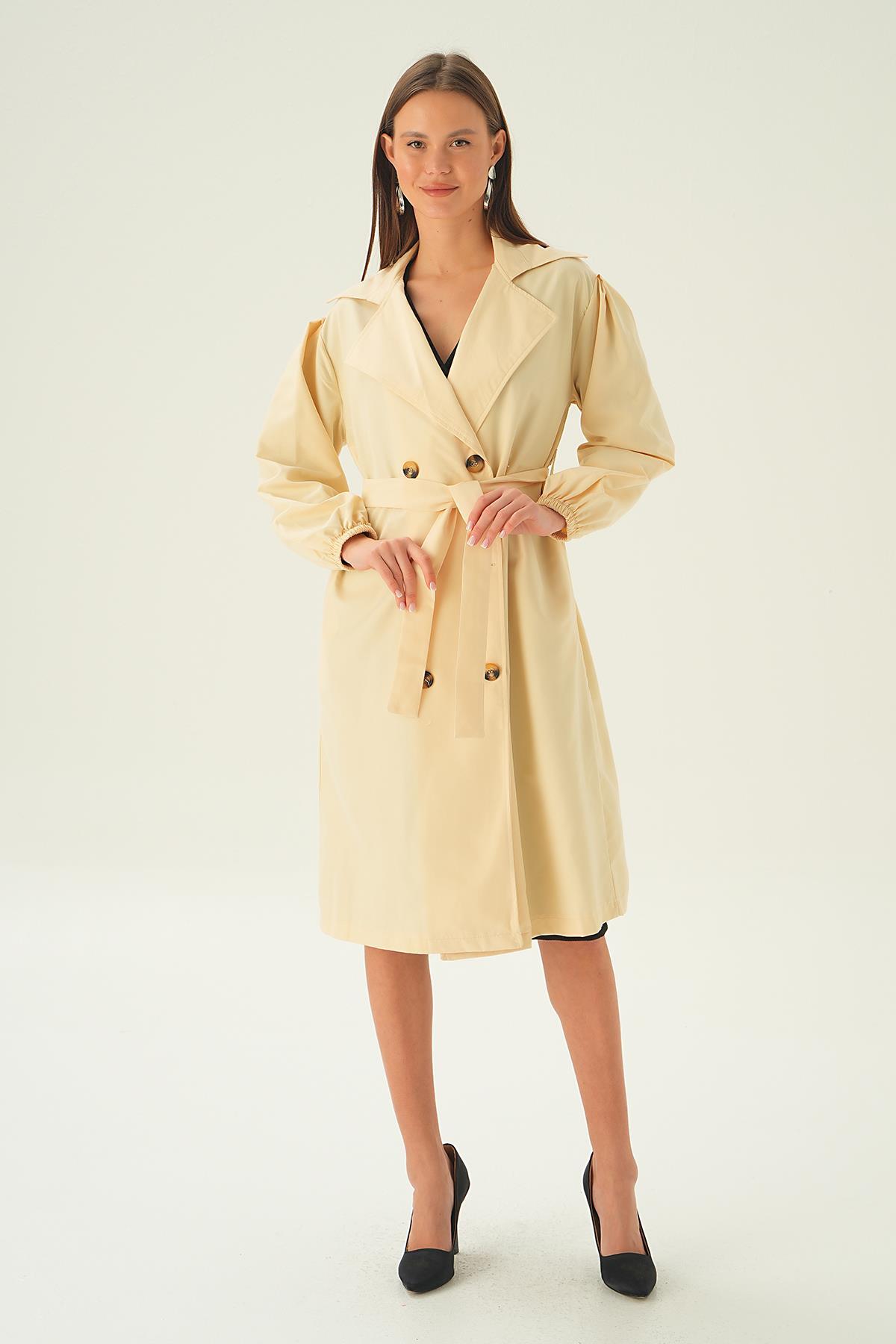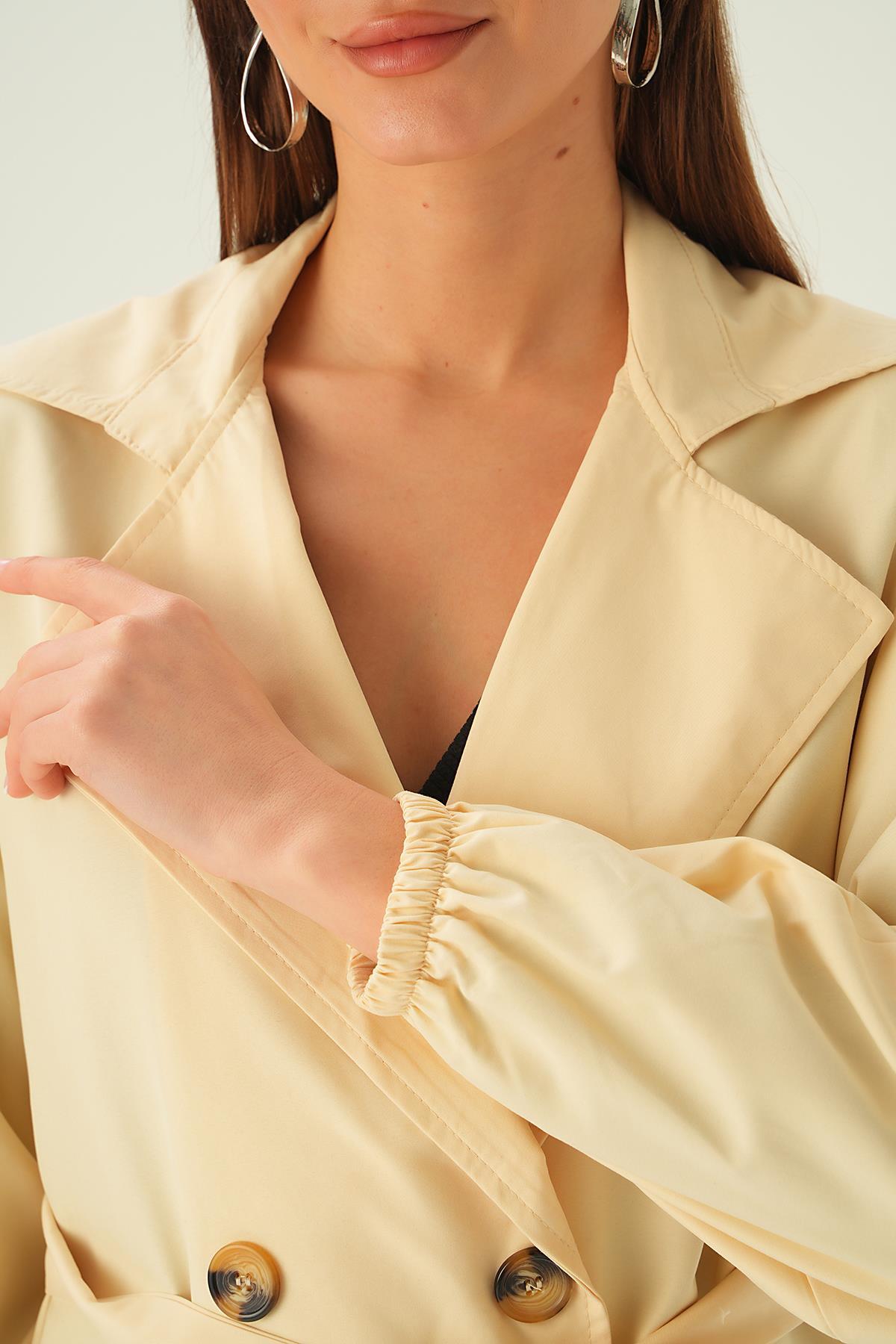 Taş Balon Kol Düğmeli Trençkot 7319A
