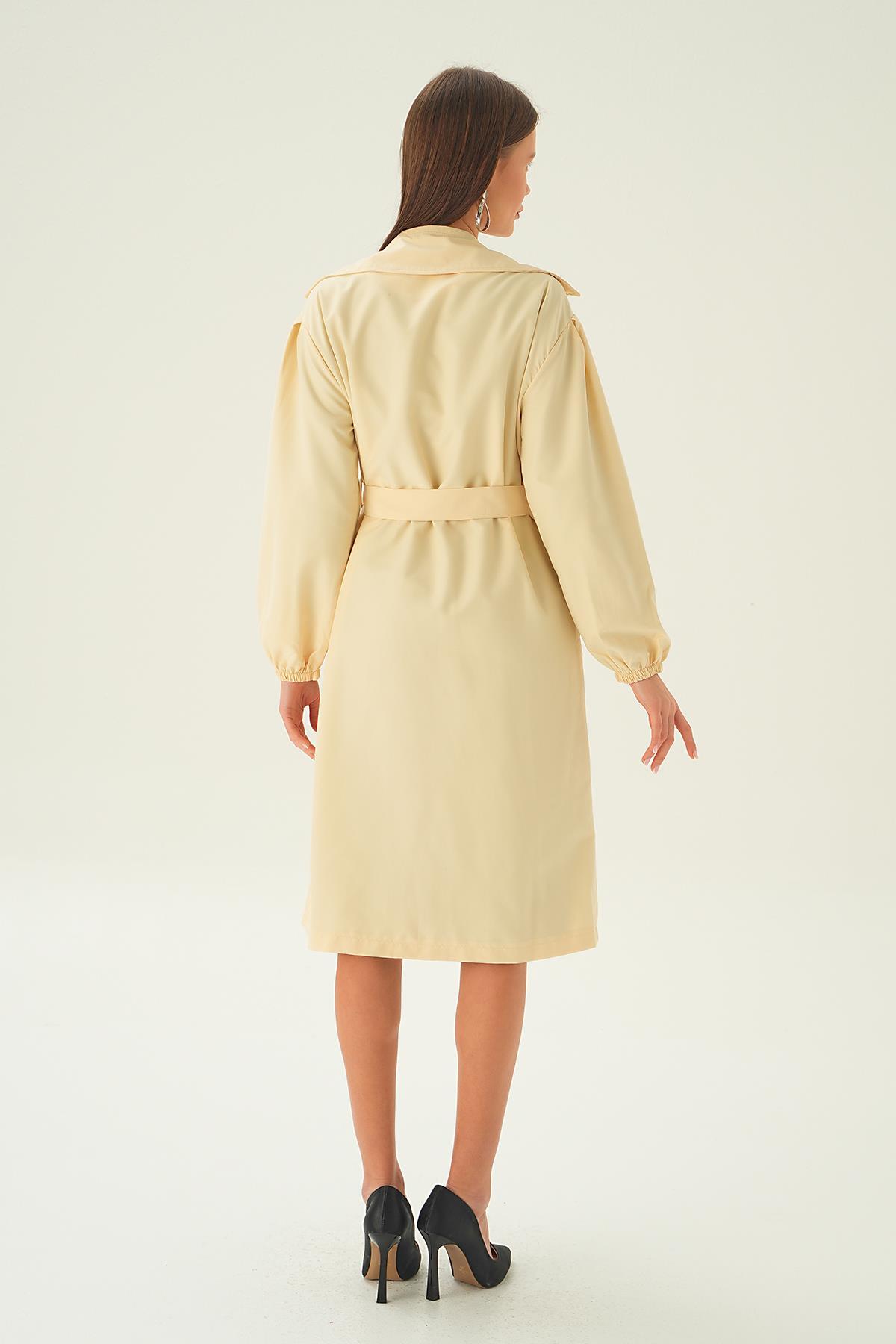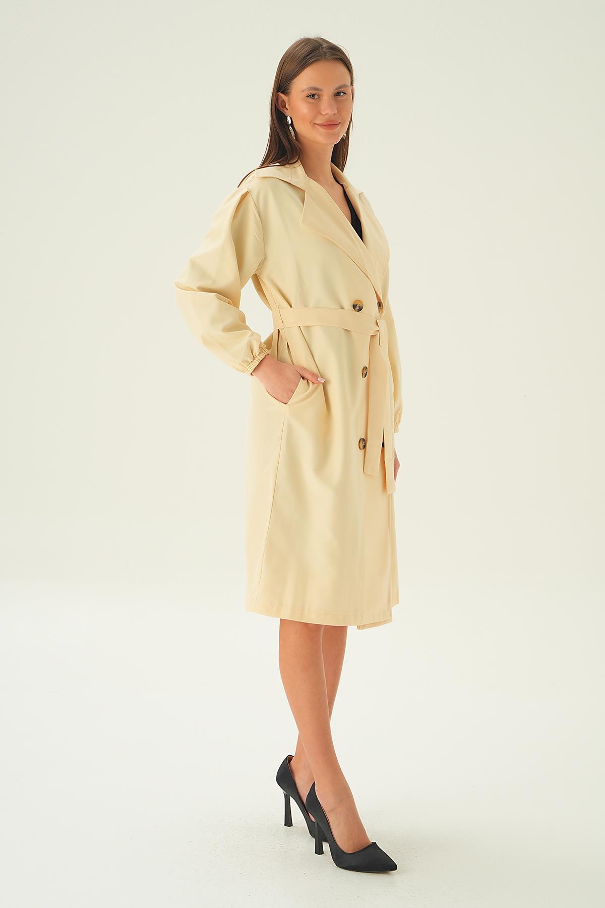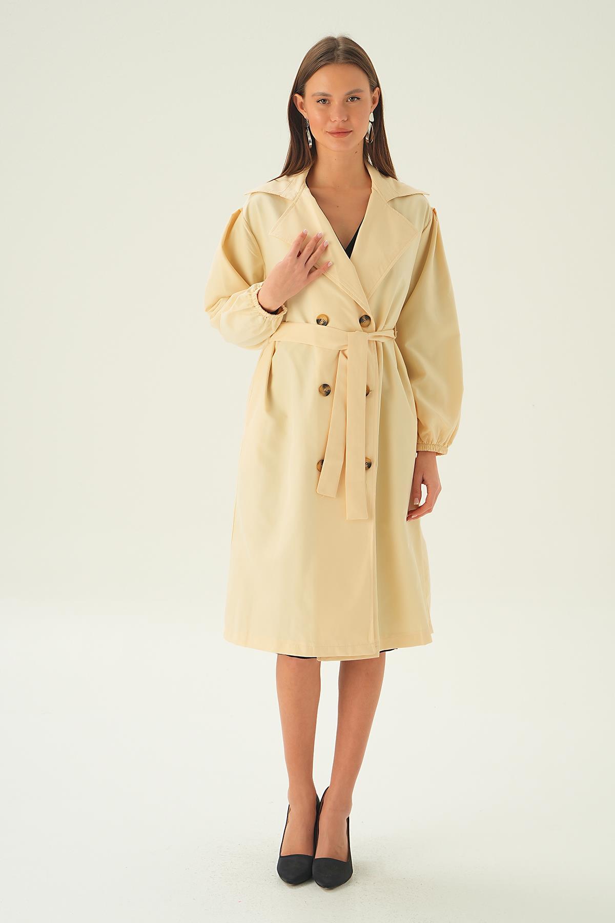 Taş Balon Kol Düğmeli Trençkot 7319A