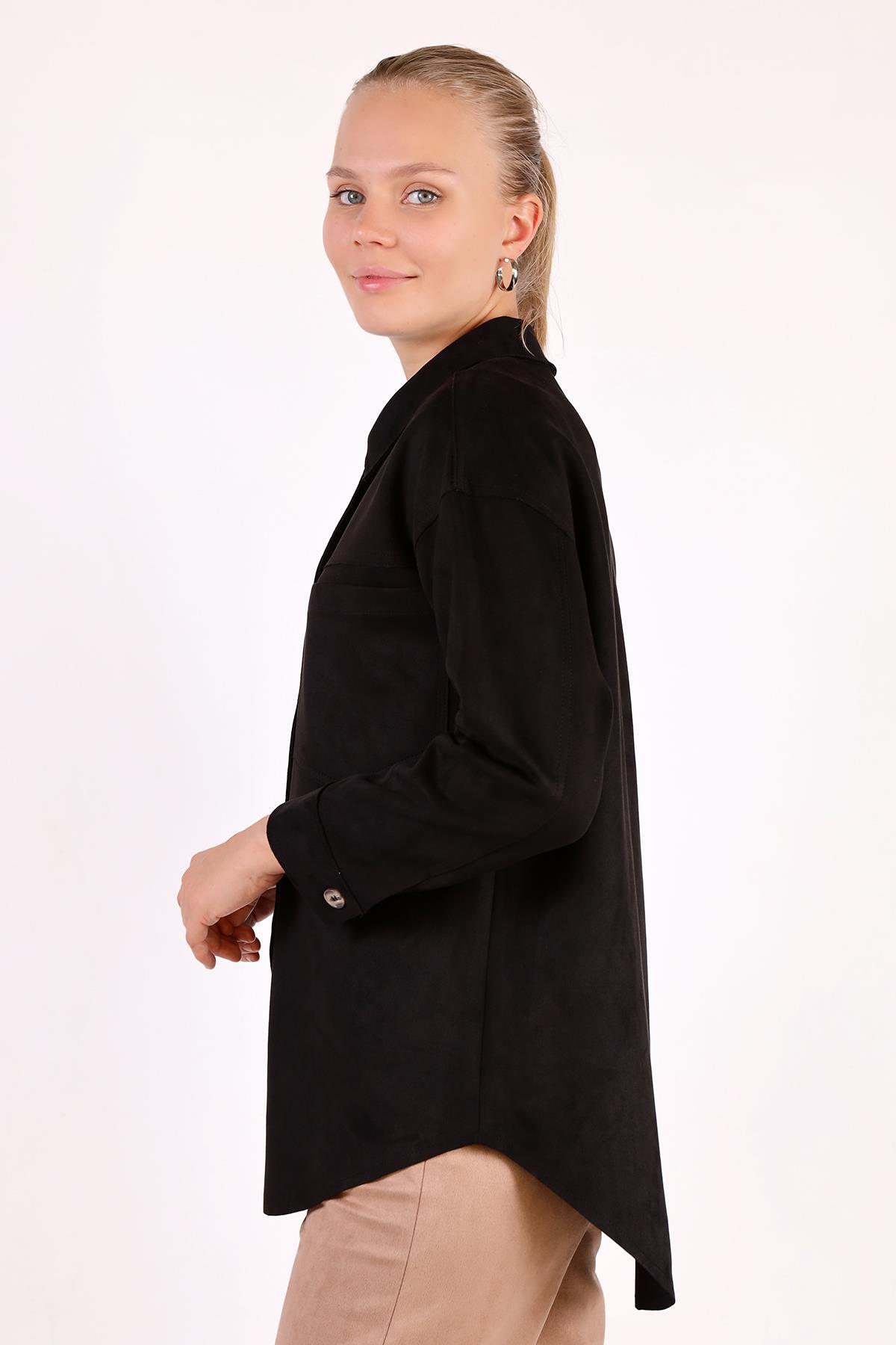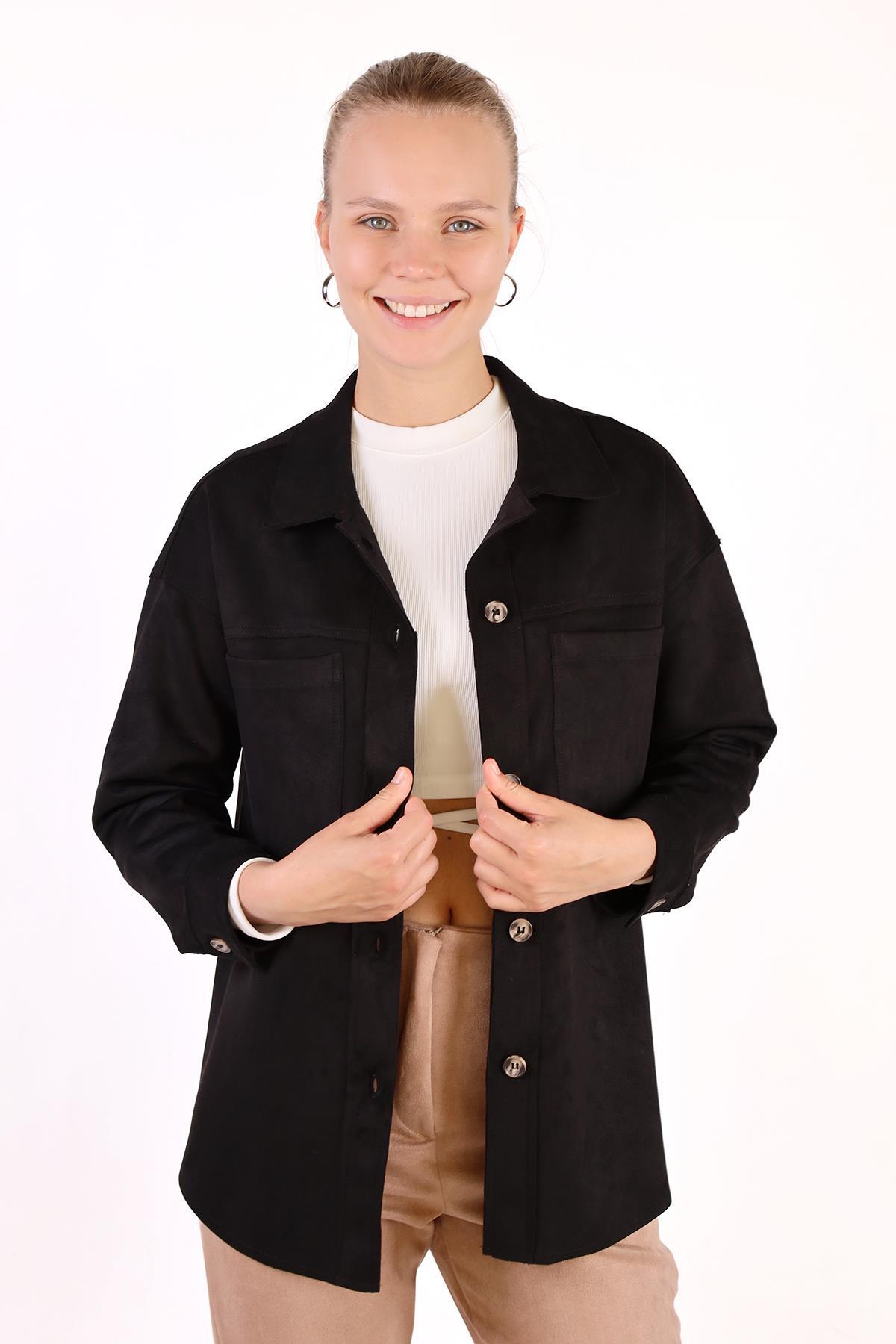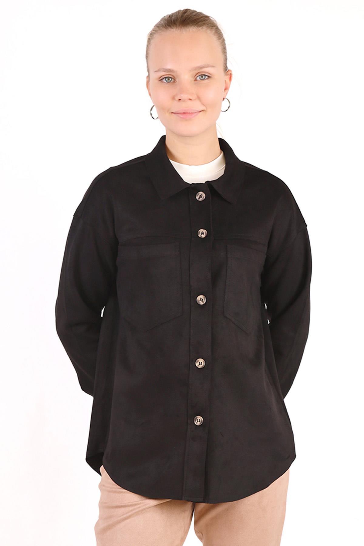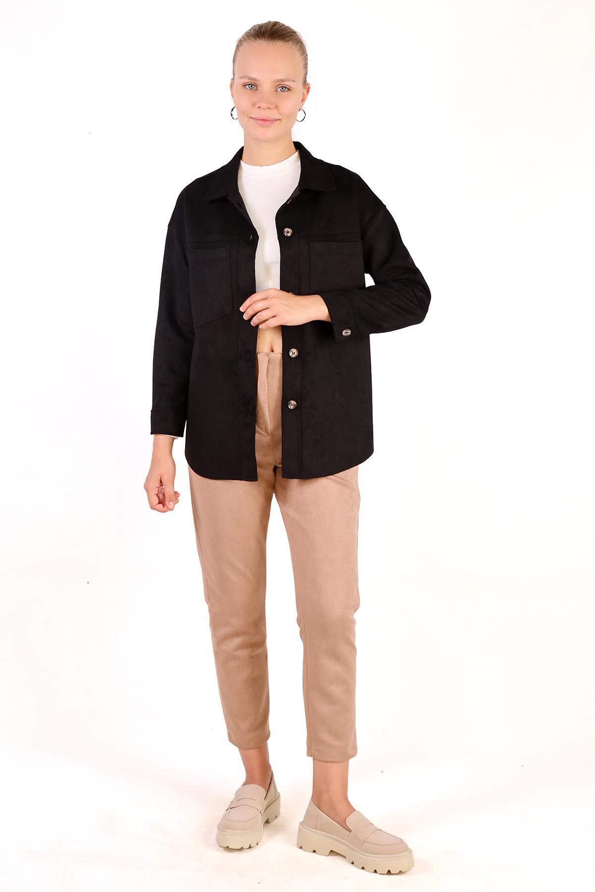 Siyah Spor Dikiş Cep Detay Süet Gömlek 7325A